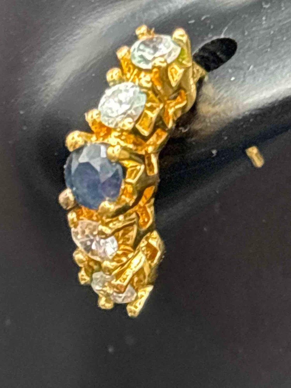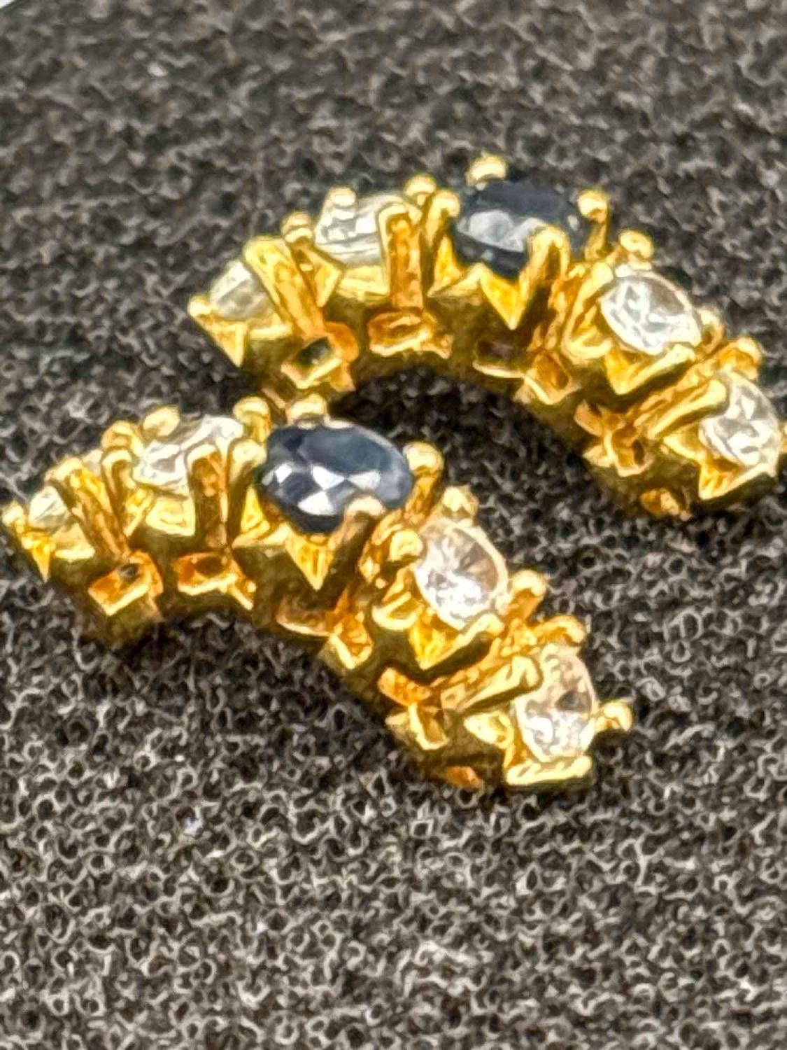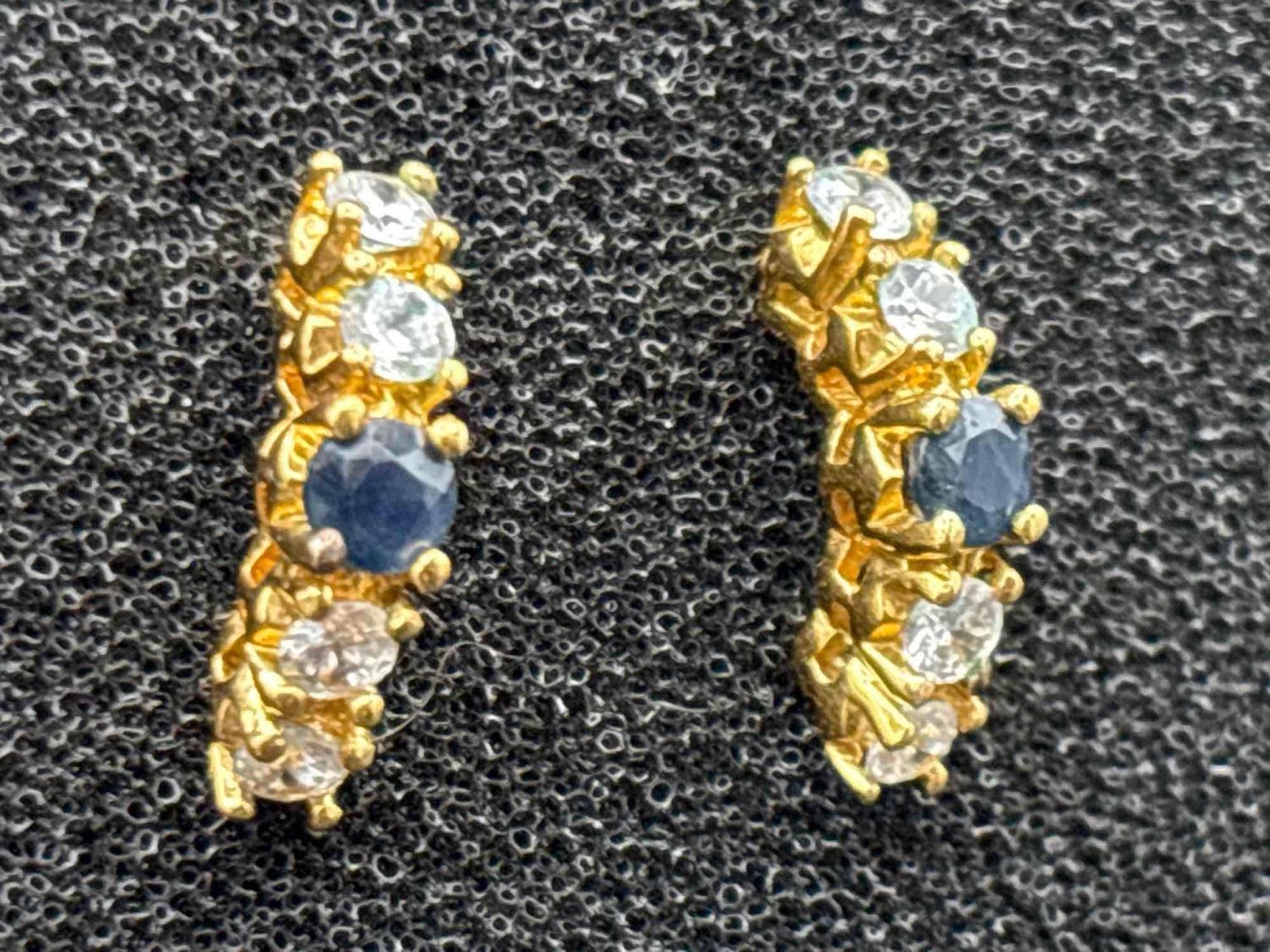 A pair of attractive silver gilt sapphire and diamond earrings 3.4 gms