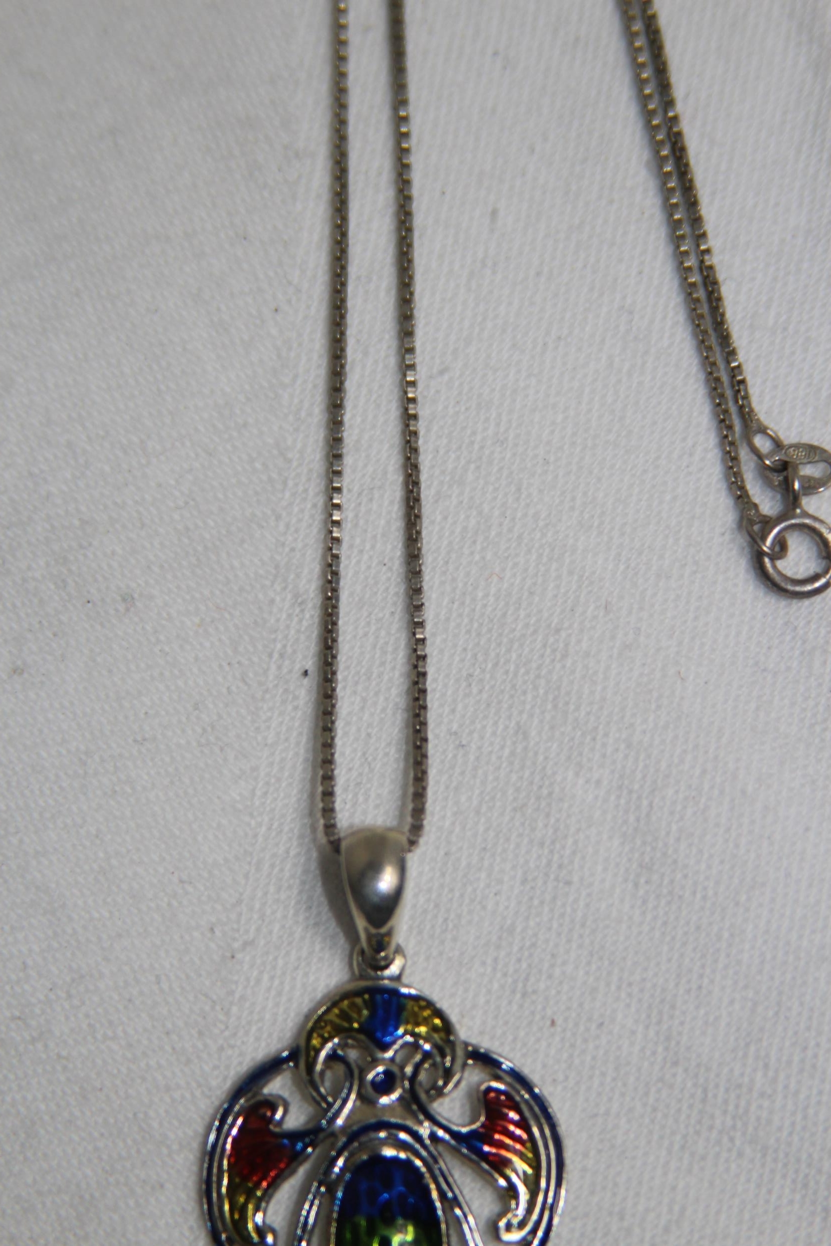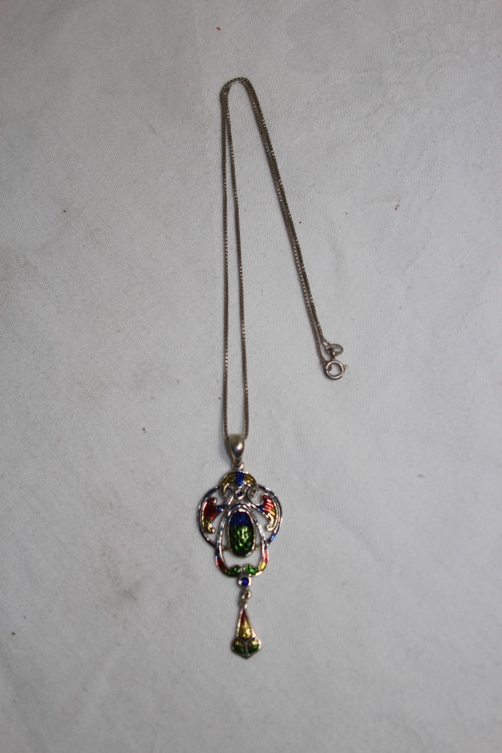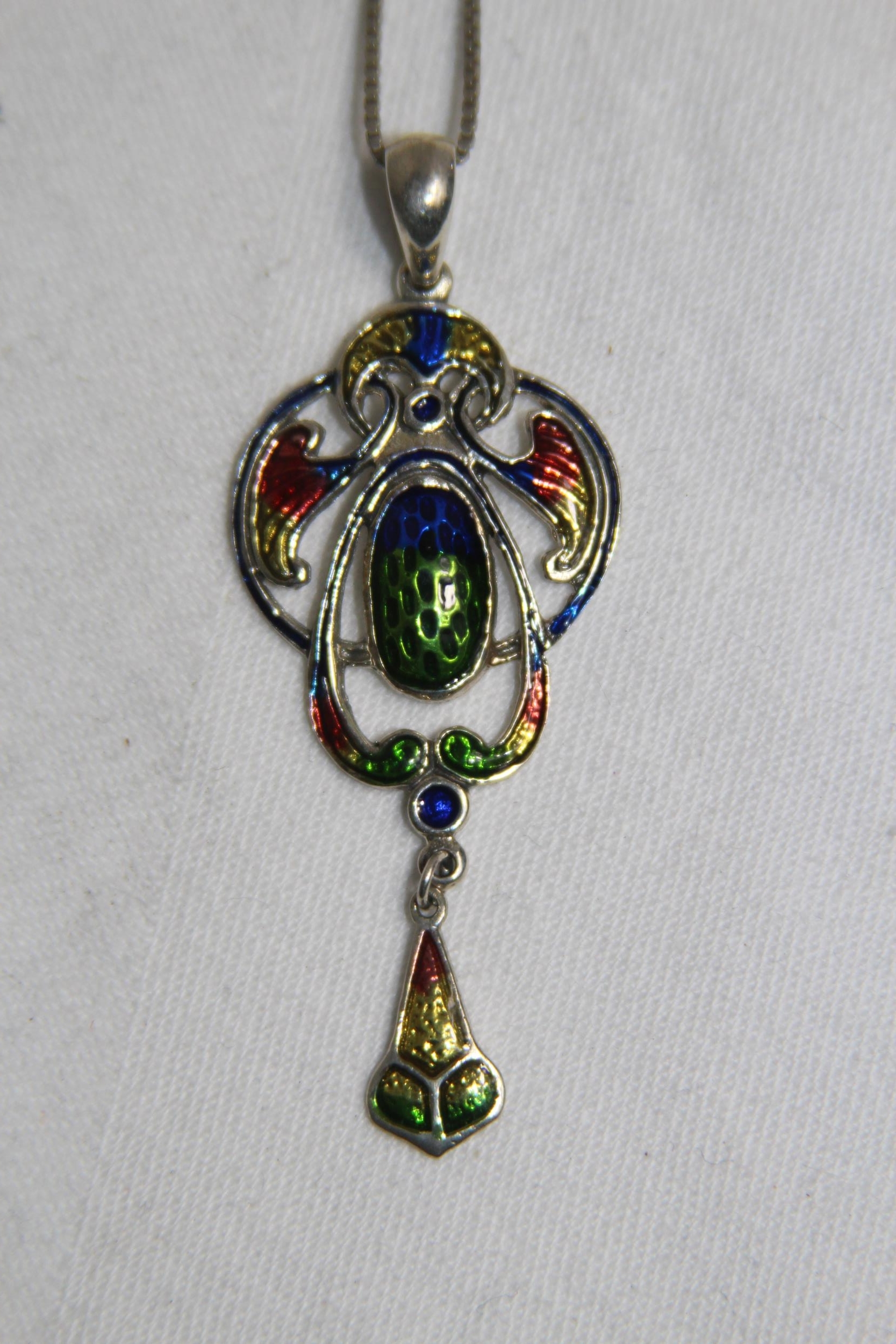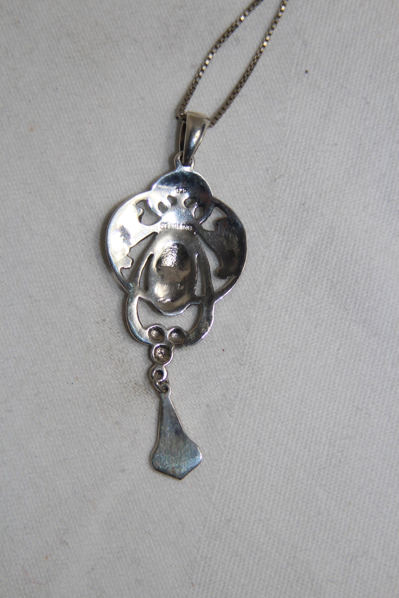LOVELY ART NOUVEAU DESIGN STERLING SILVER PENDANT NECKLACE