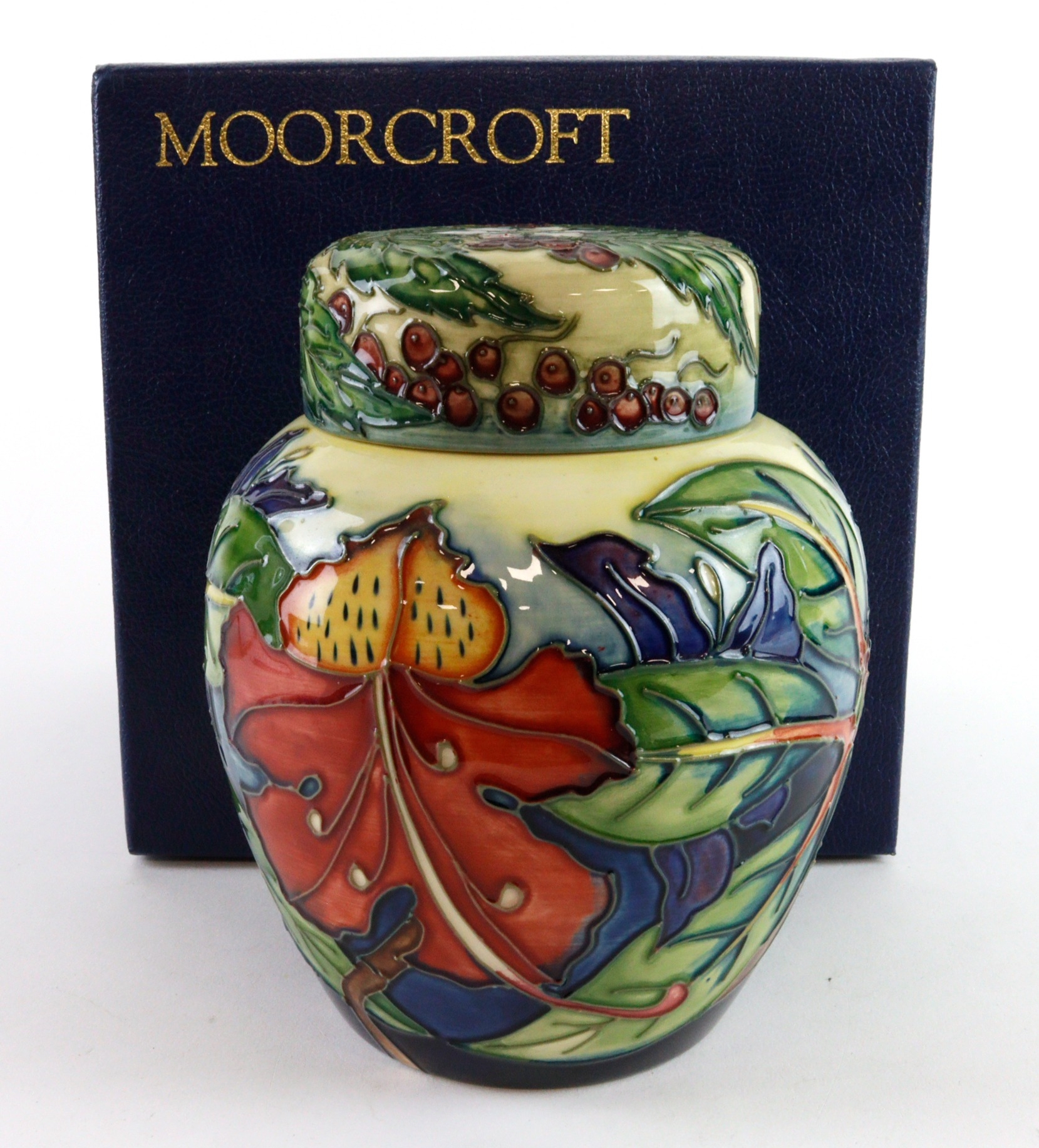 Moorcroft 'Simeon' pattern vase, designed by Phil Gibson, dated 2004, makers marks to base, height 13.5cm approx., contained in a Moorcroft box