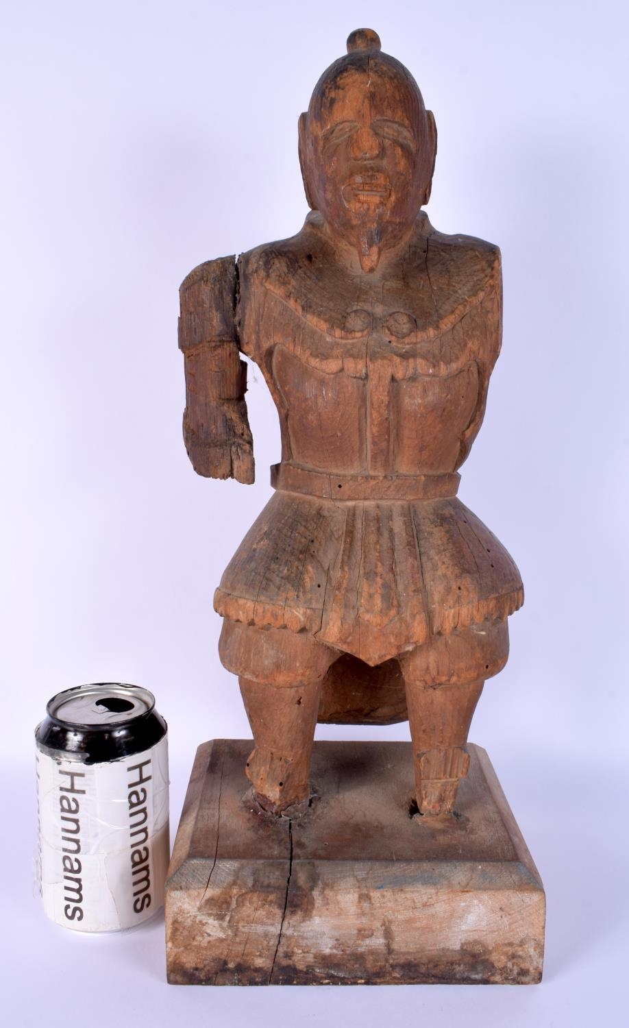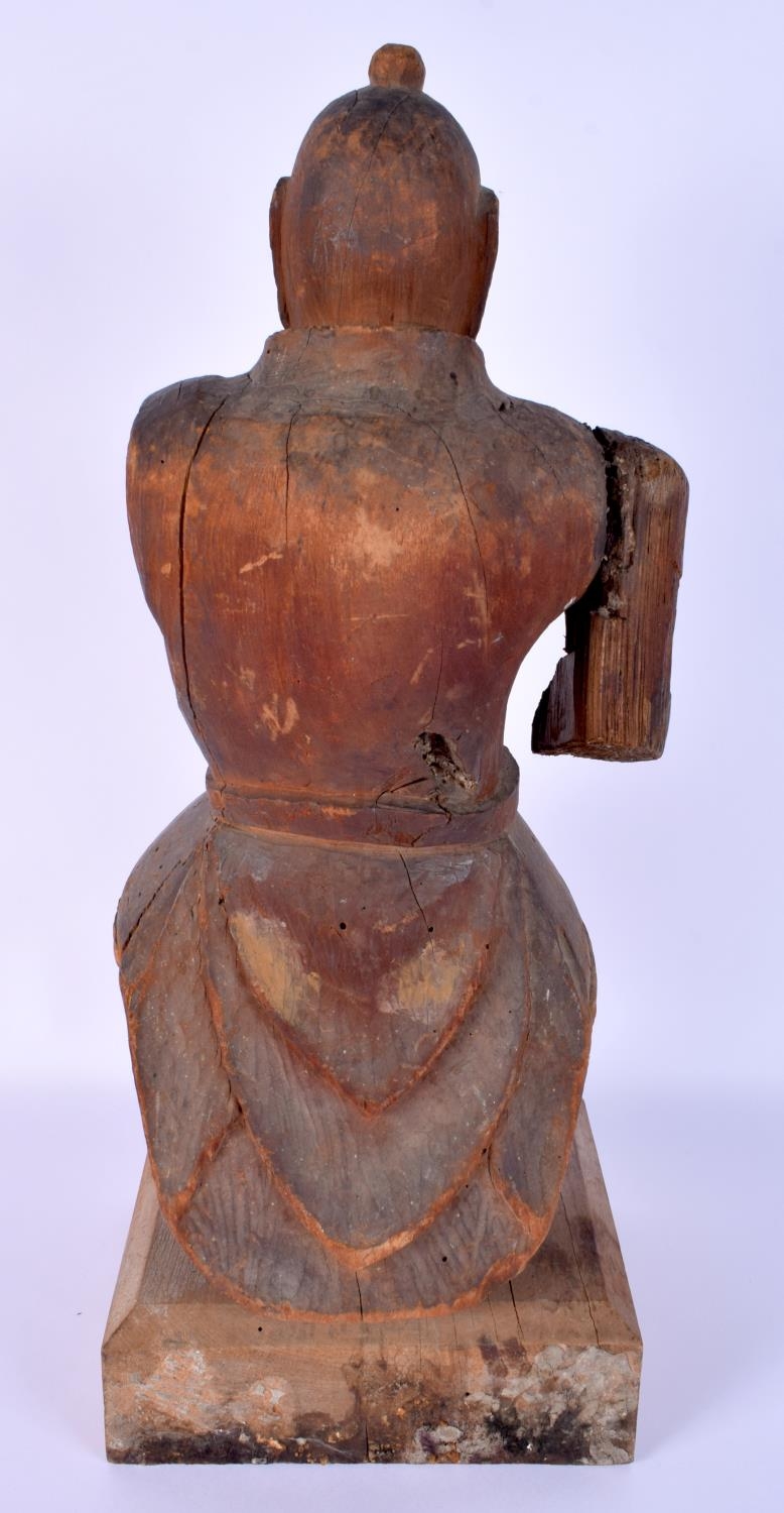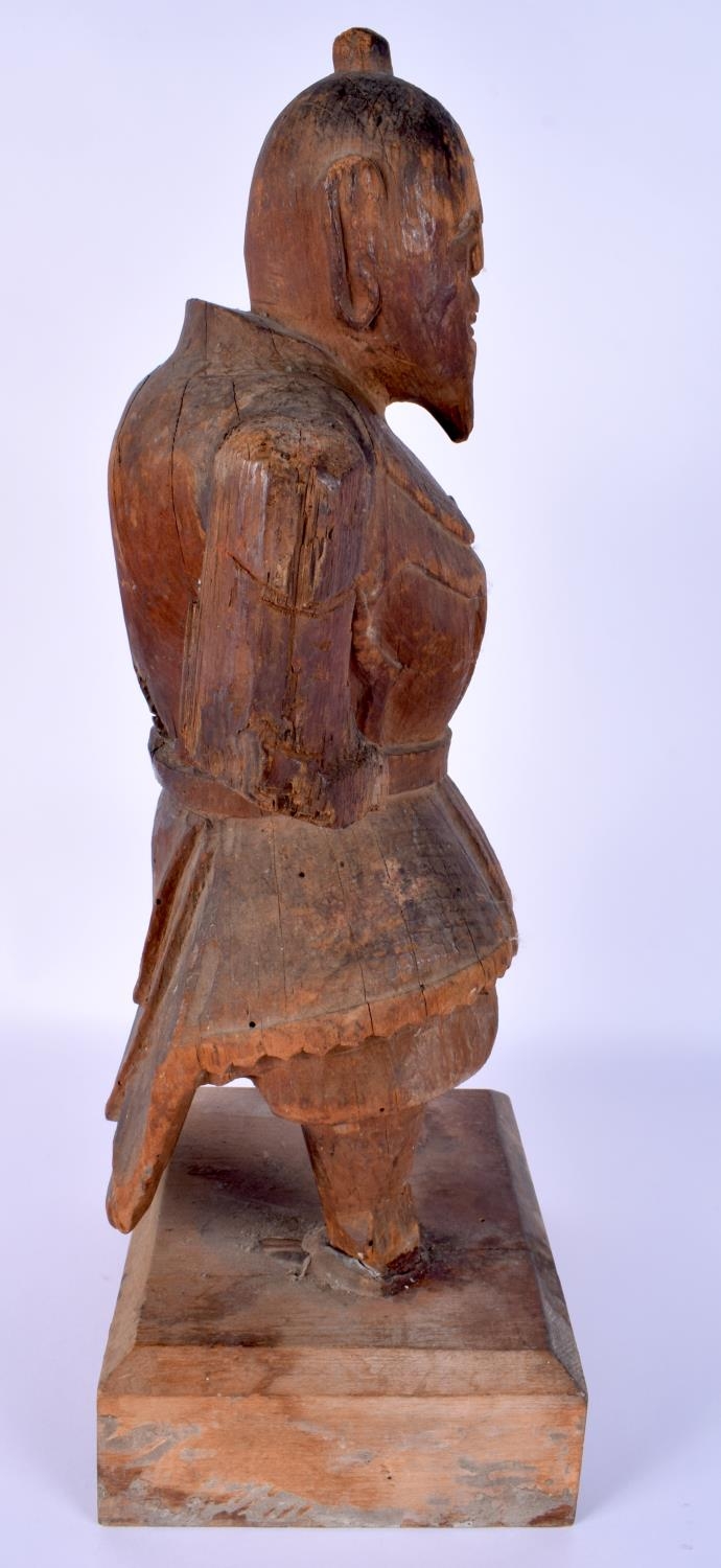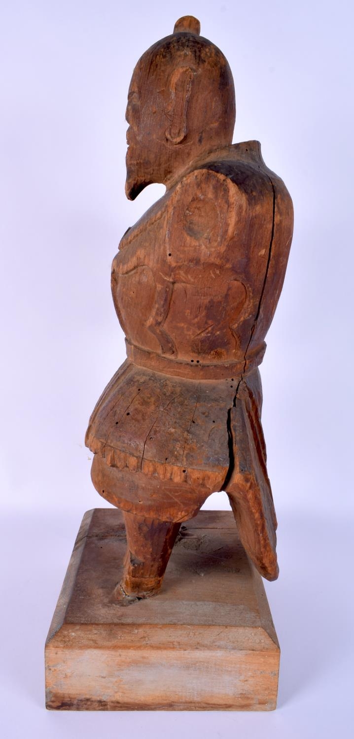 A RARE LARGE 16TH CENTURY JAPANESE MUROMACHI PERIOD CARVED WOOD WARRIOR (1333-1573) modelled in armour. 44 cm x 15 cm.