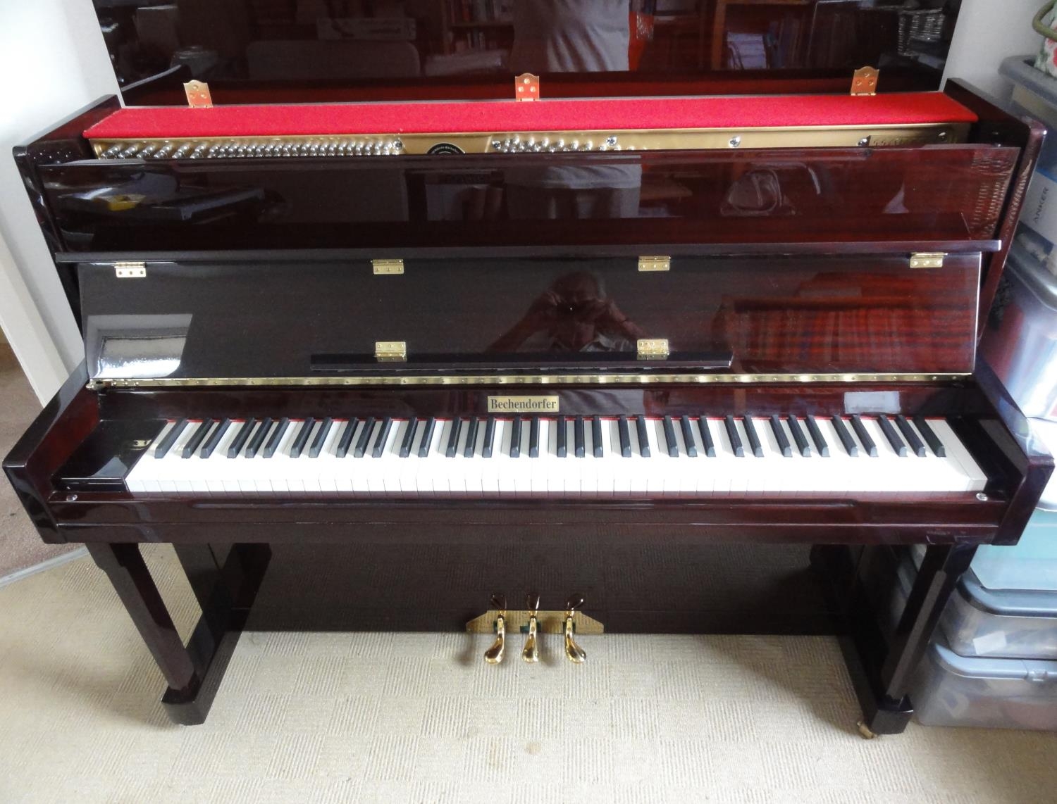 Bechendorfer A recent Model UP122 upright piano in a bright mahogany case. This piano is the property of the Estate of the Late Paula Bott, the well known Soprano. AMENDMENT Is a Model 110 MC.