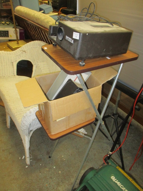 PHOTO SLIDE PROJECTOR, DIAPOREX and 2 TIER TABLE AND SCREEN BY MODERN PLASTIC