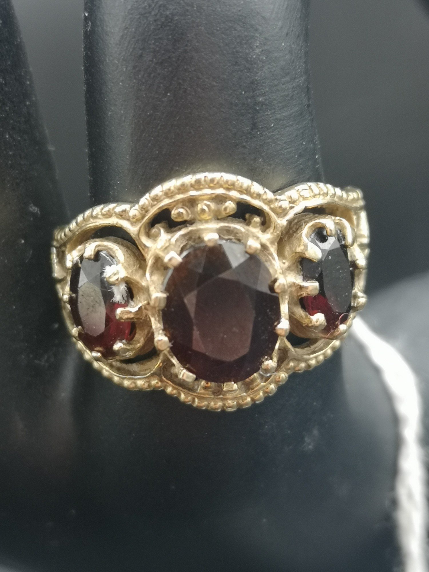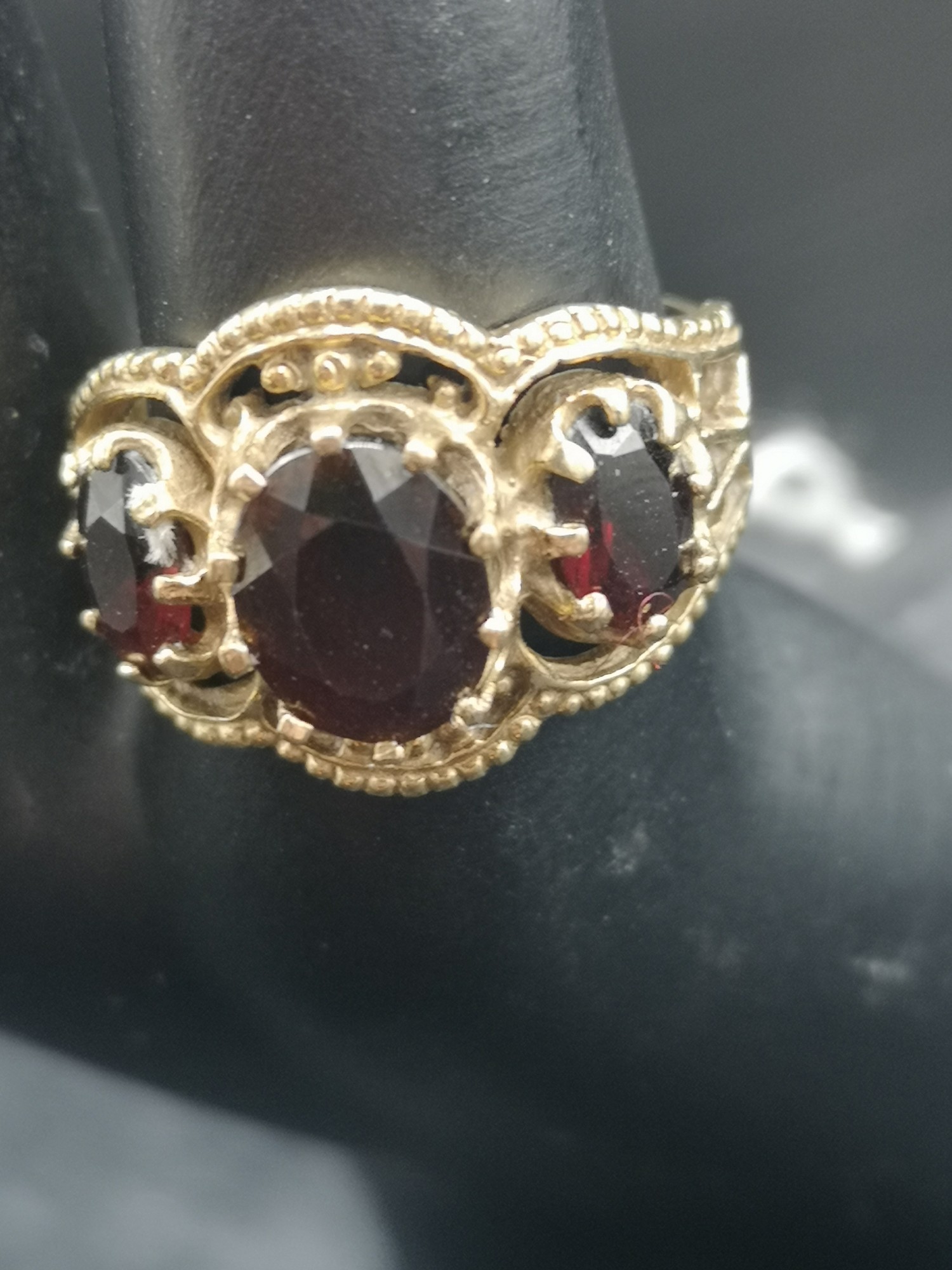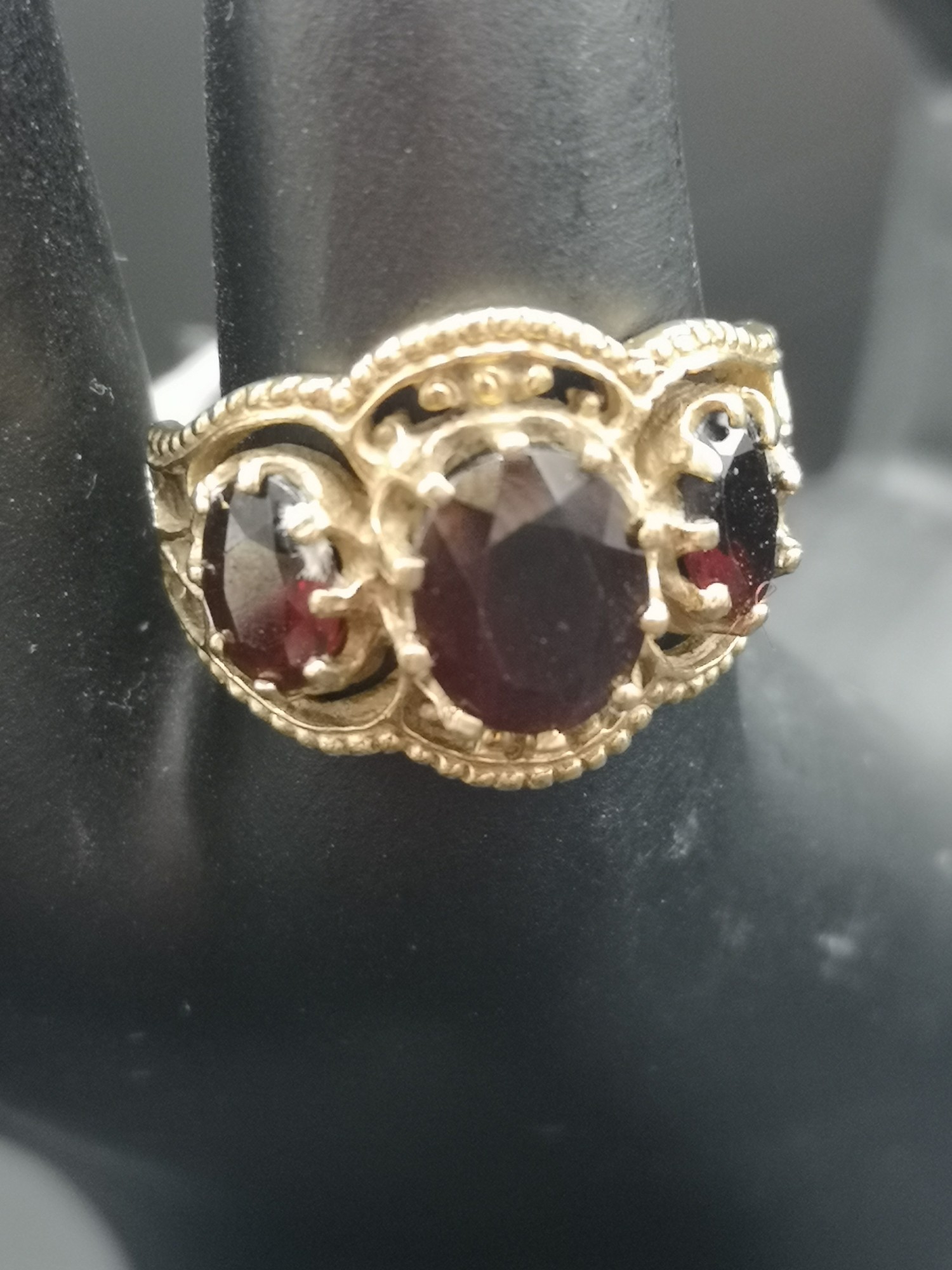 Beautiful 9ct Gold Ring With Early Setting 3 Garnets 4.8 G