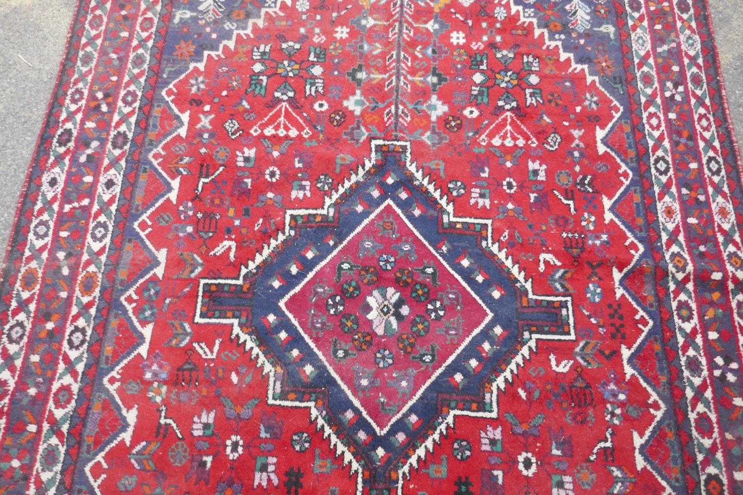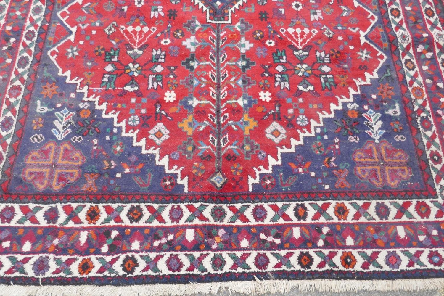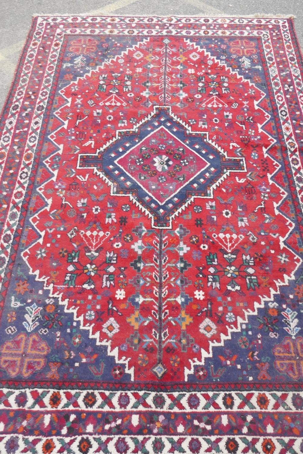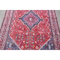 A Persian hand woven wool thick pile carpet, with central medallion on a red field, 198 x 310cm