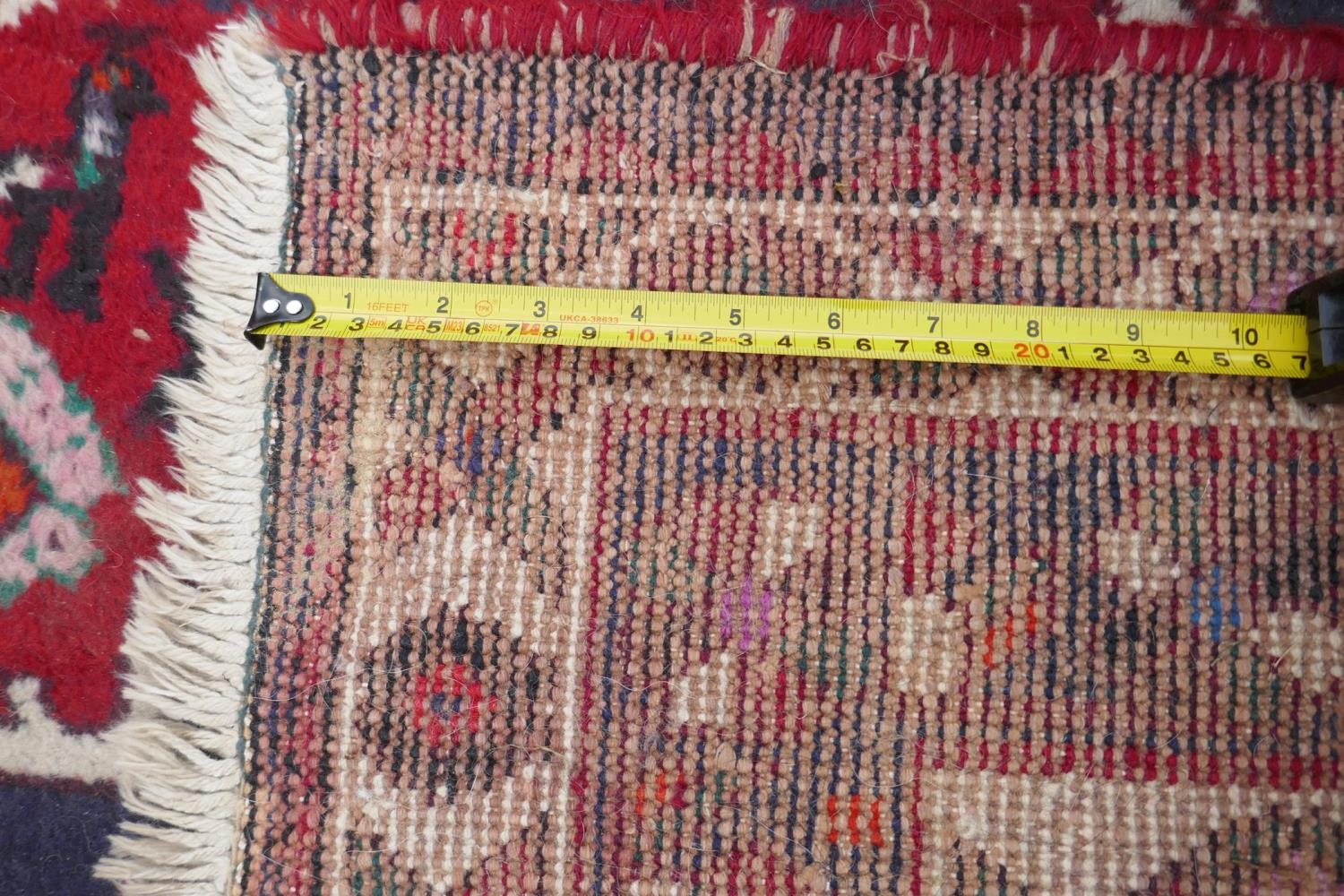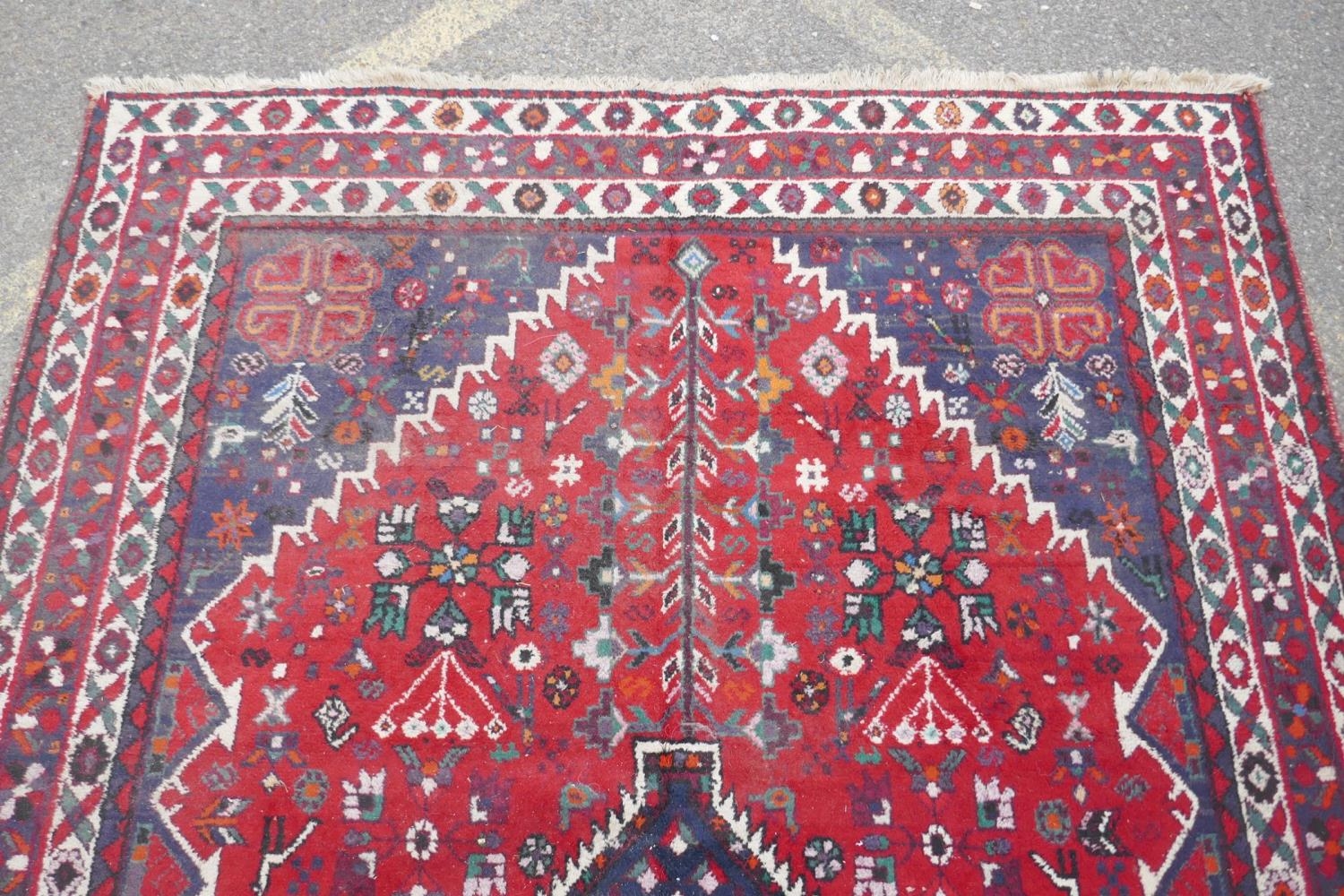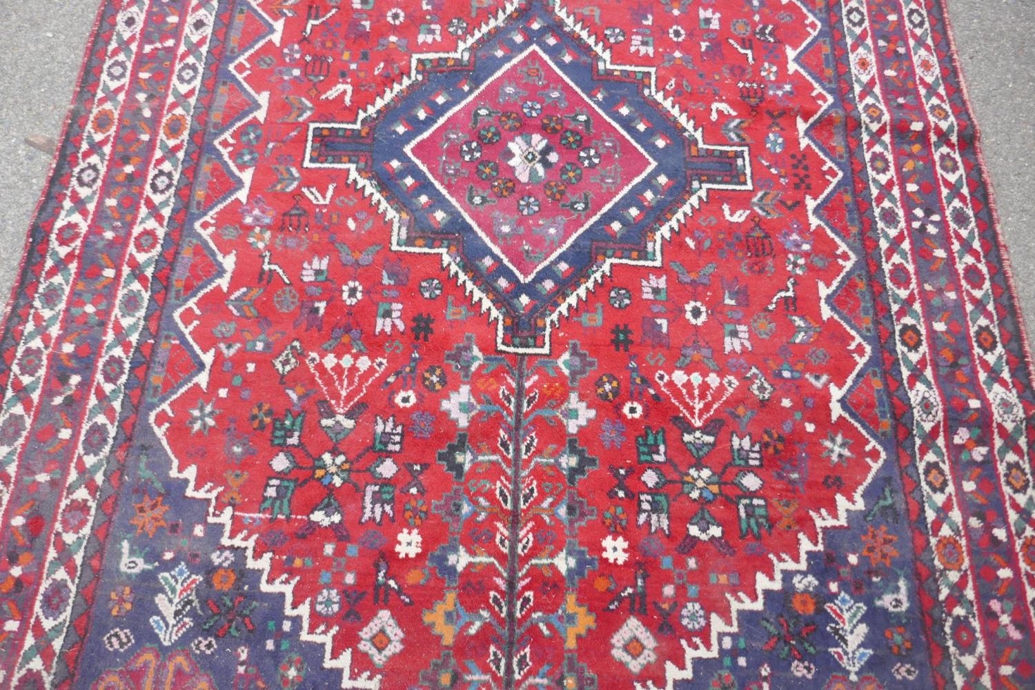 A Persian hand woven wool thick pile carpet, with central medallion on a red field, 198 x 310cm