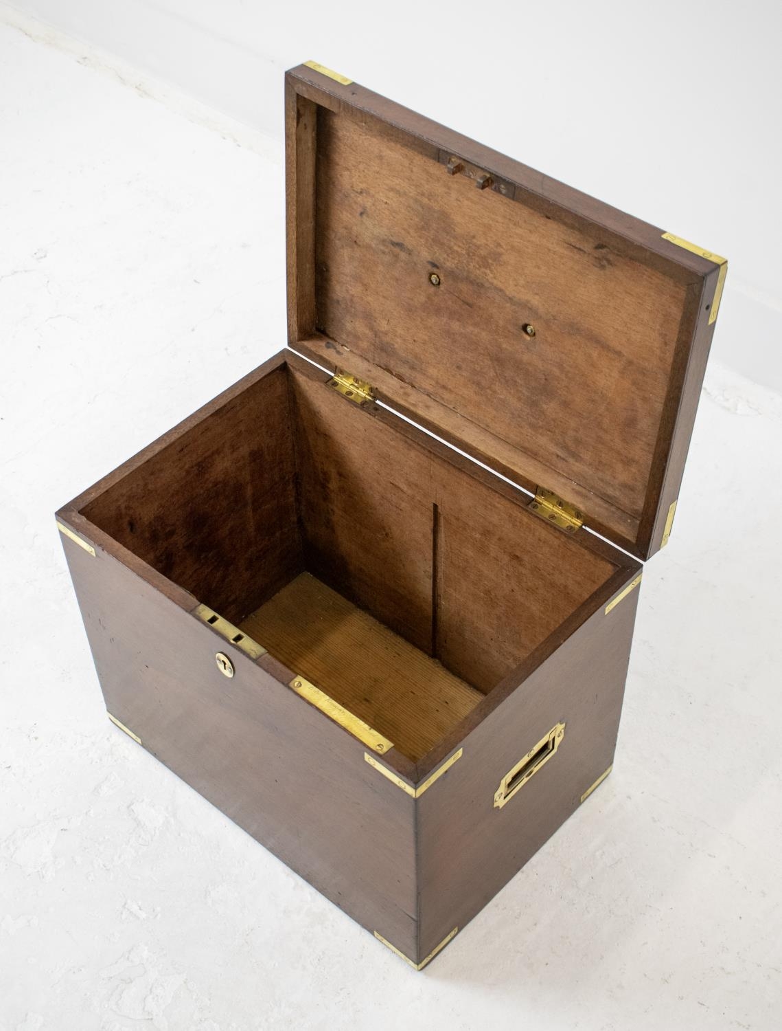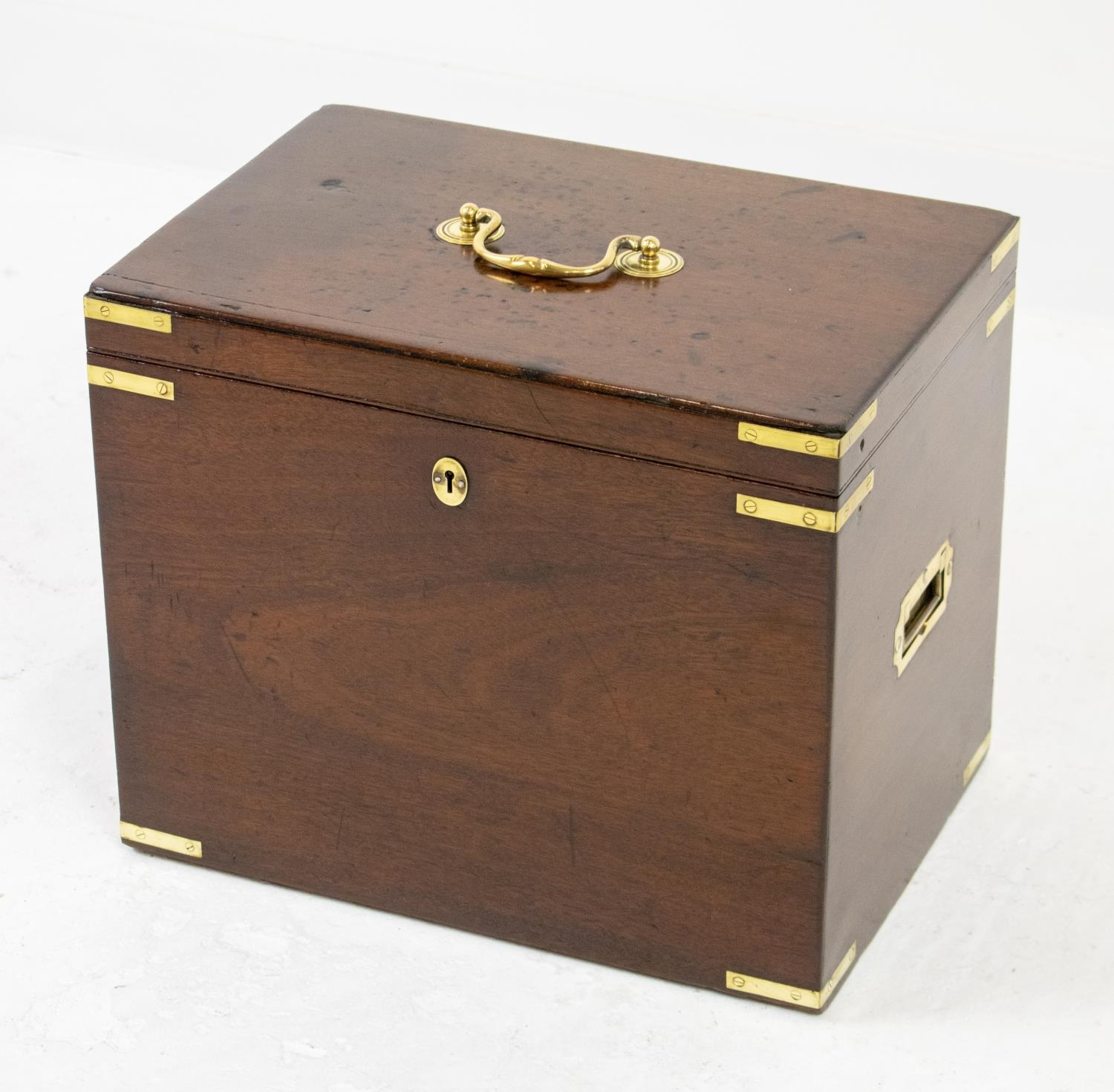 SILVERSMITH'S BOX, Victorian mahogany and brass bound, bears engraved plaque, 35cm H x 41cm x 28cm.