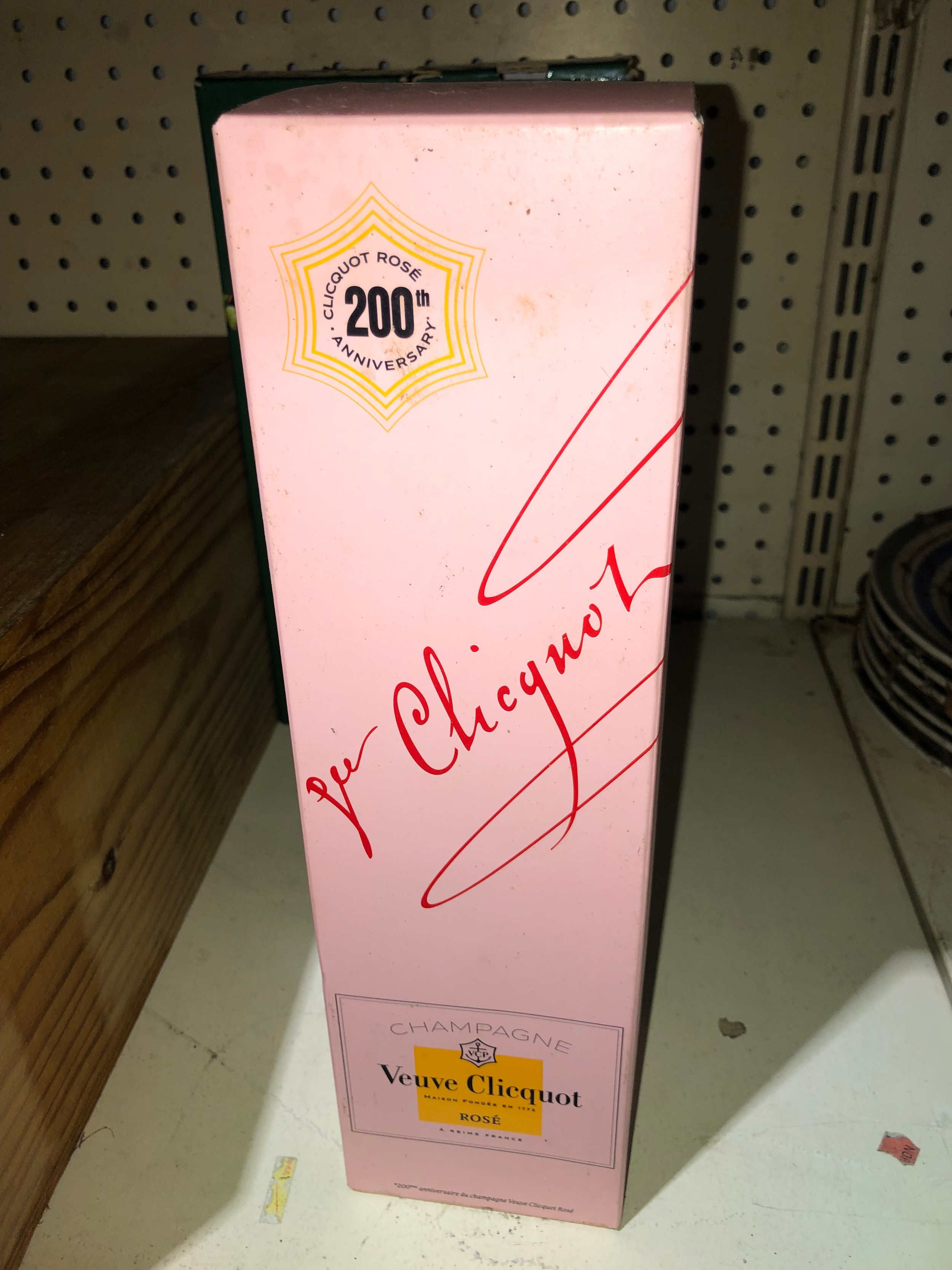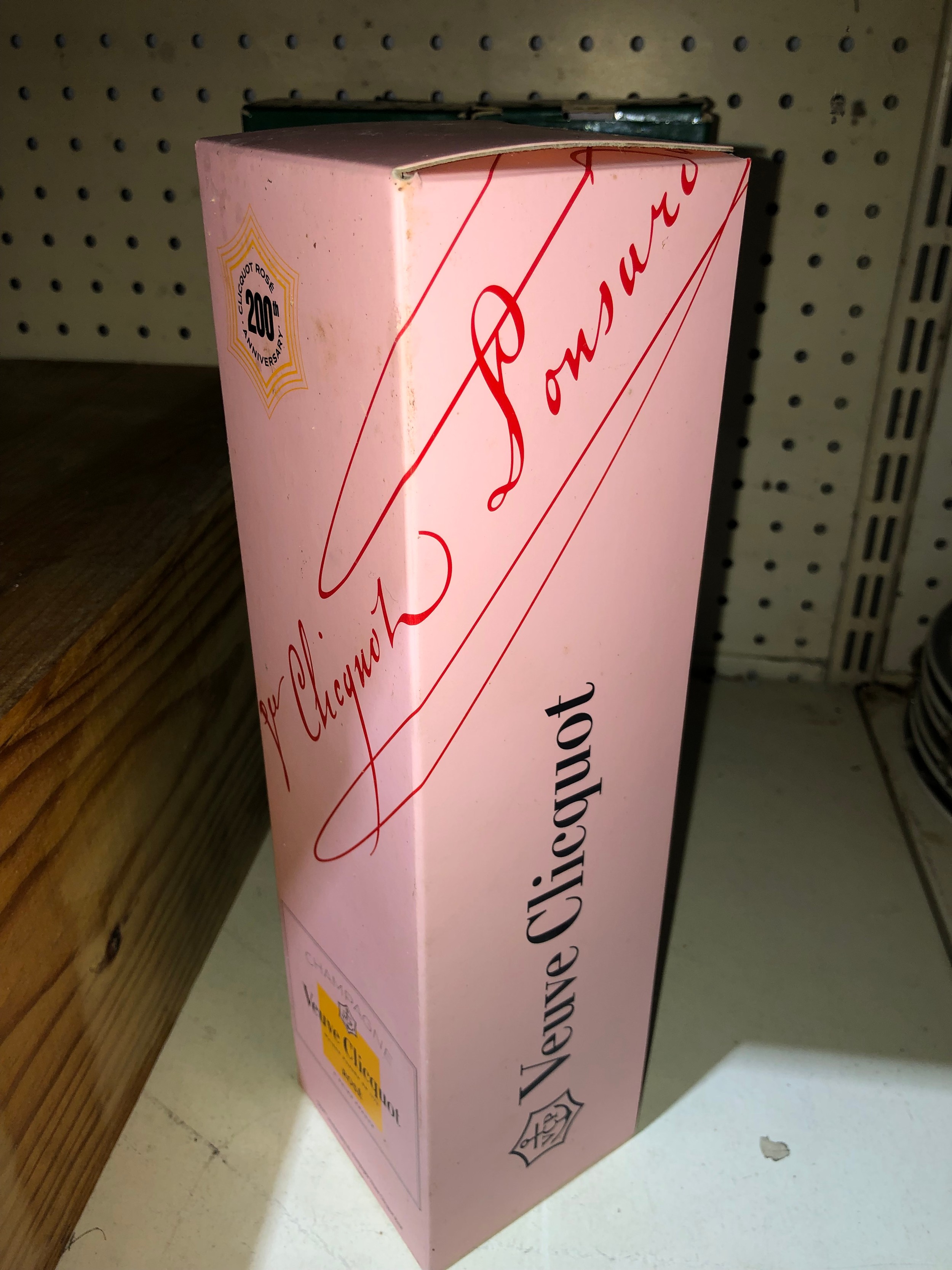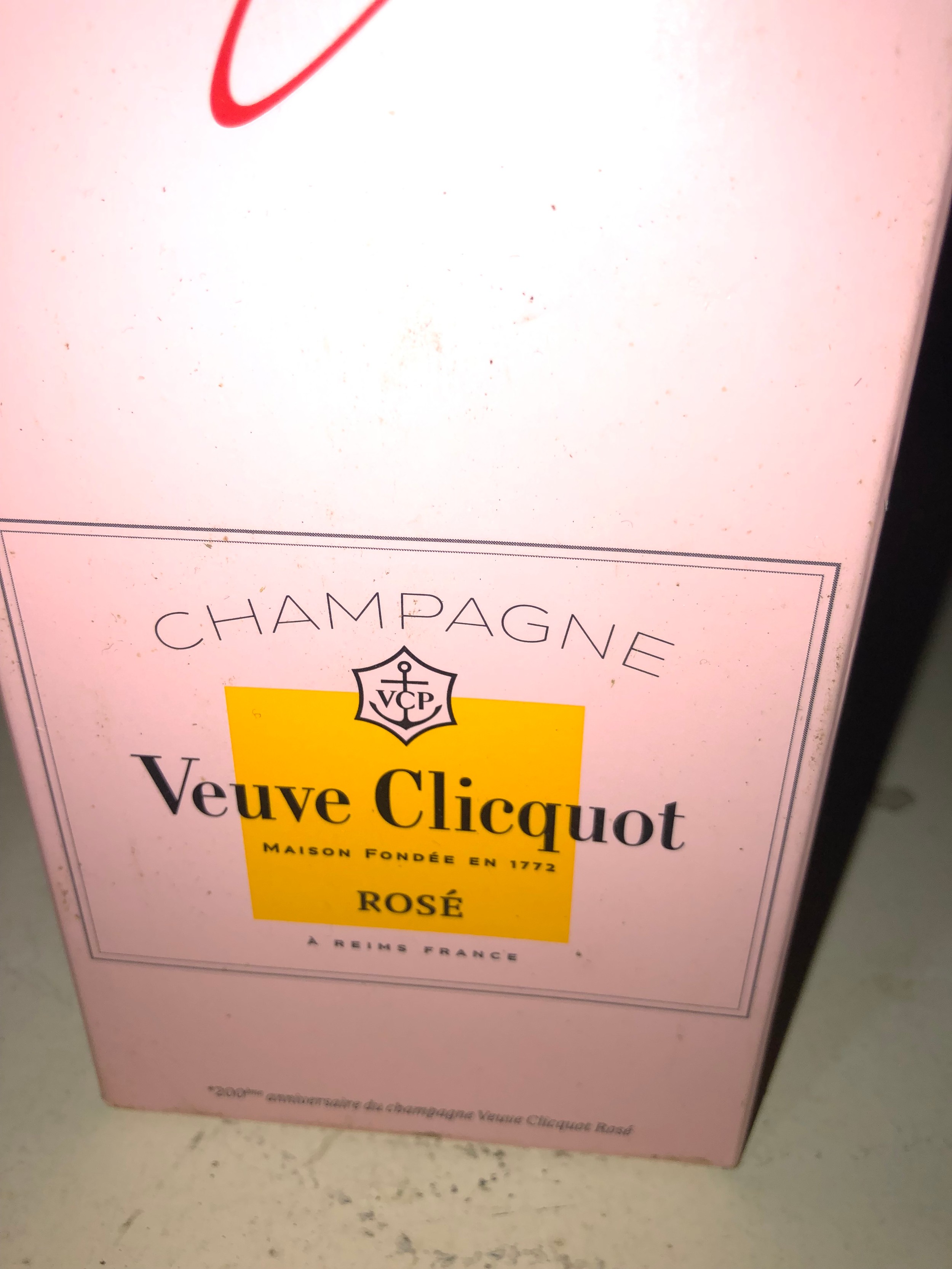 1 boxed bottle of Veuve Clicquot Rose champagne. Stored in a temperature and humidity controlled environment whilst aging. See lot 151 for pictures of gauges.
