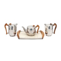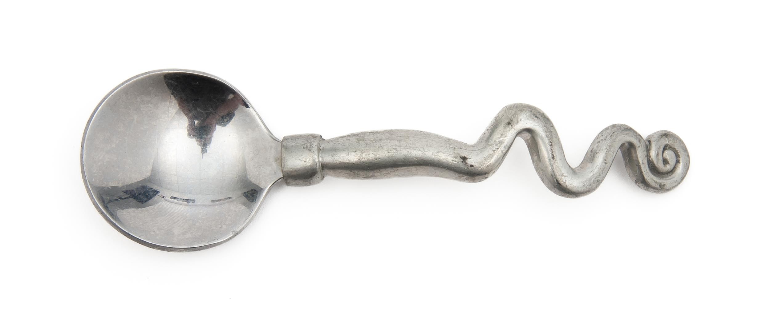A STAINLESS STEEL SUGAR SPOON, CARROL BOYES