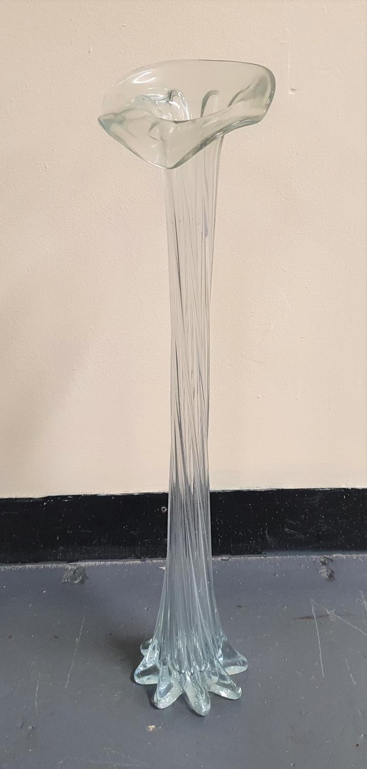 Tall twisted glass "bud" vase, approx 75cm high