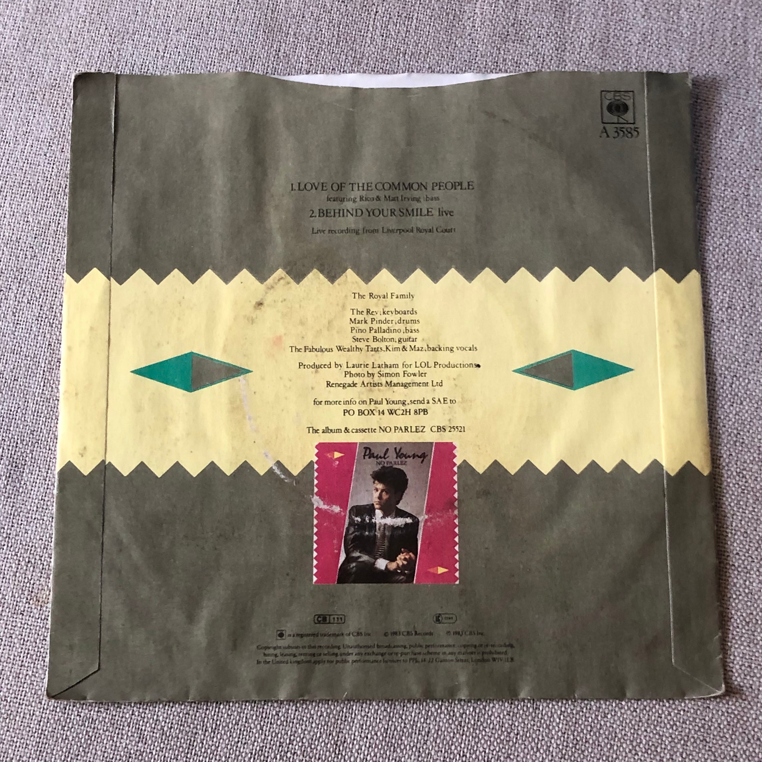 Paul Young. Love of the common people / Behind your smile. Single CBS A3585