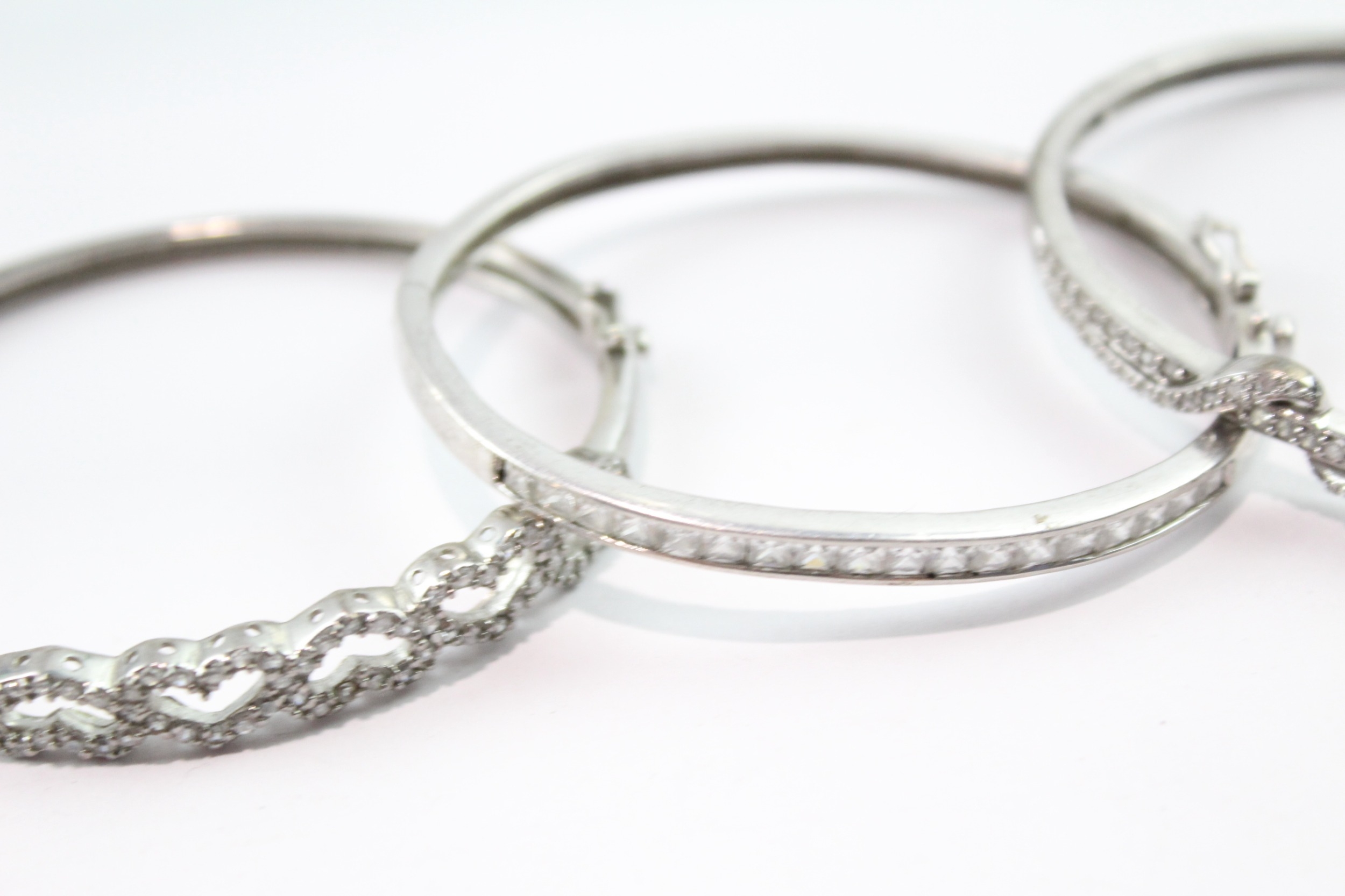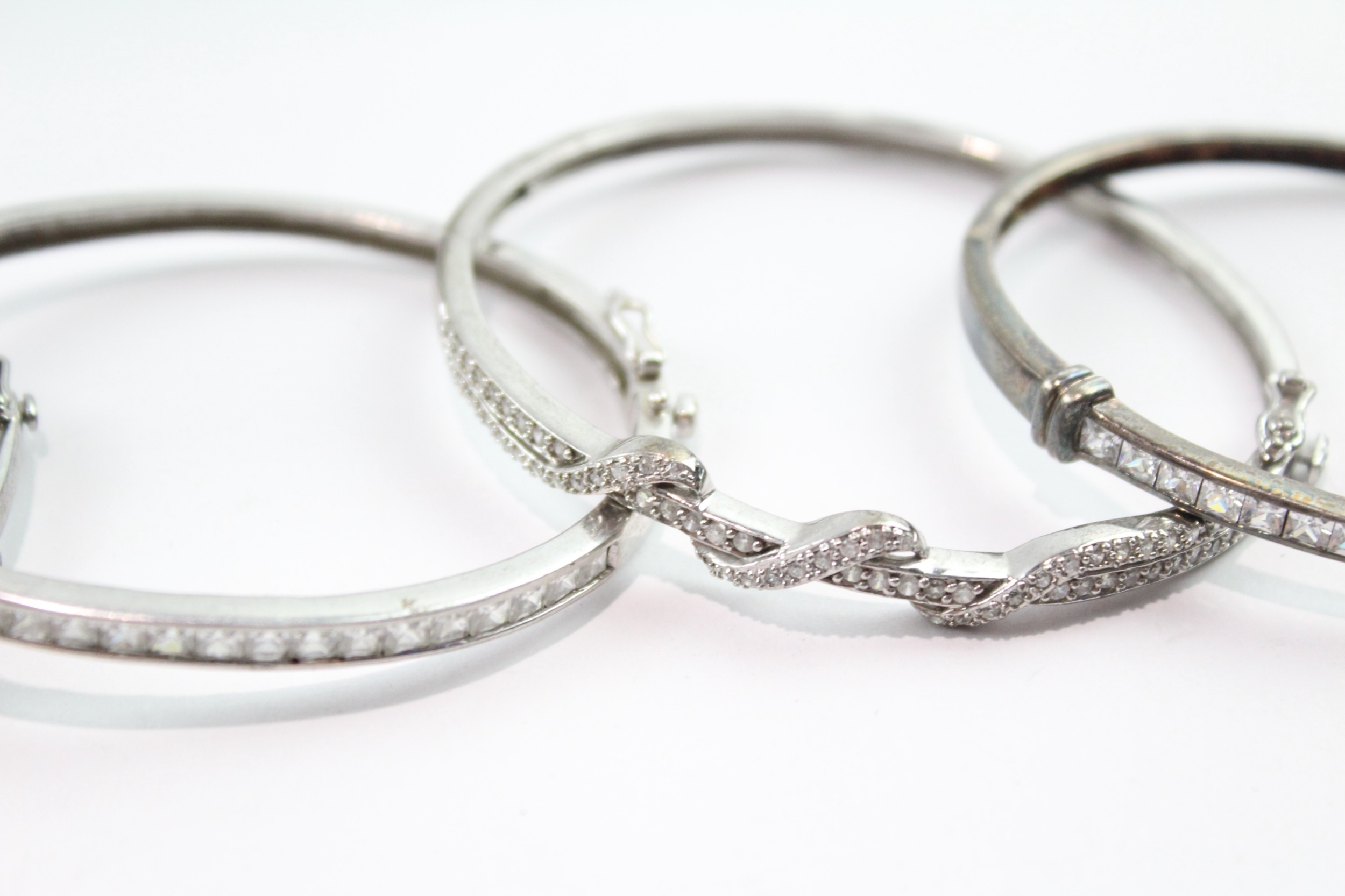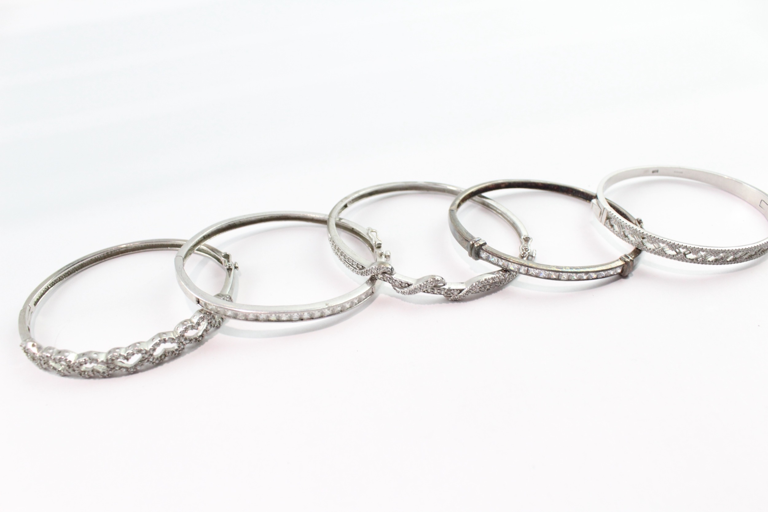 Collection of Sterling Silver Bangles inc. Clear Gemstone x 5 70g