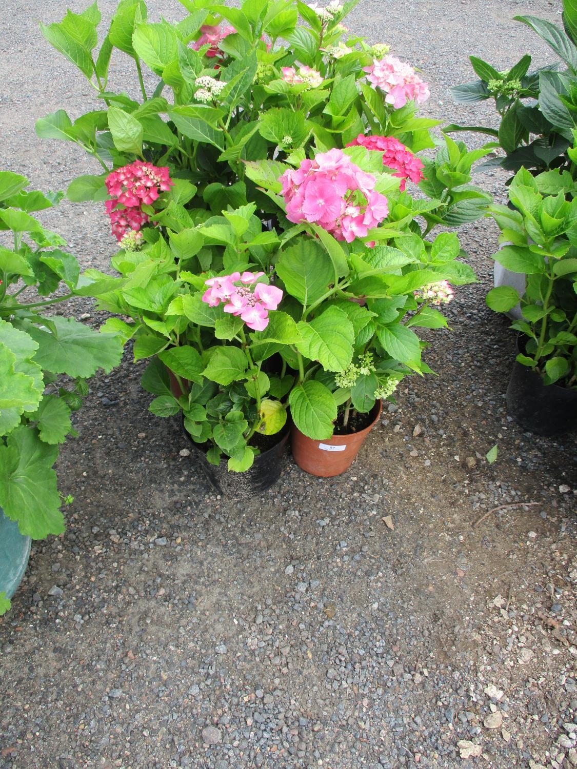Six potted mature Hydrangea