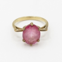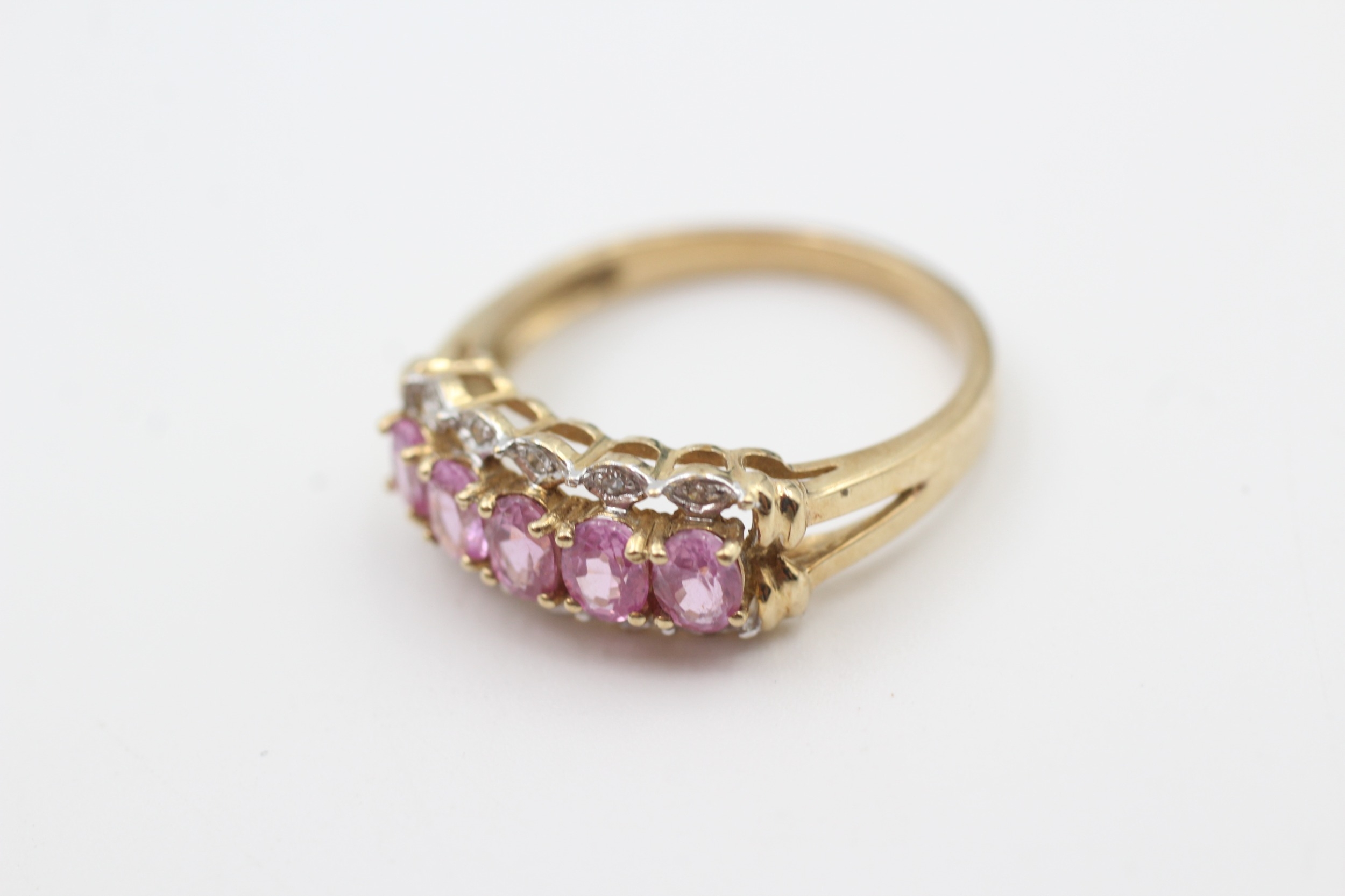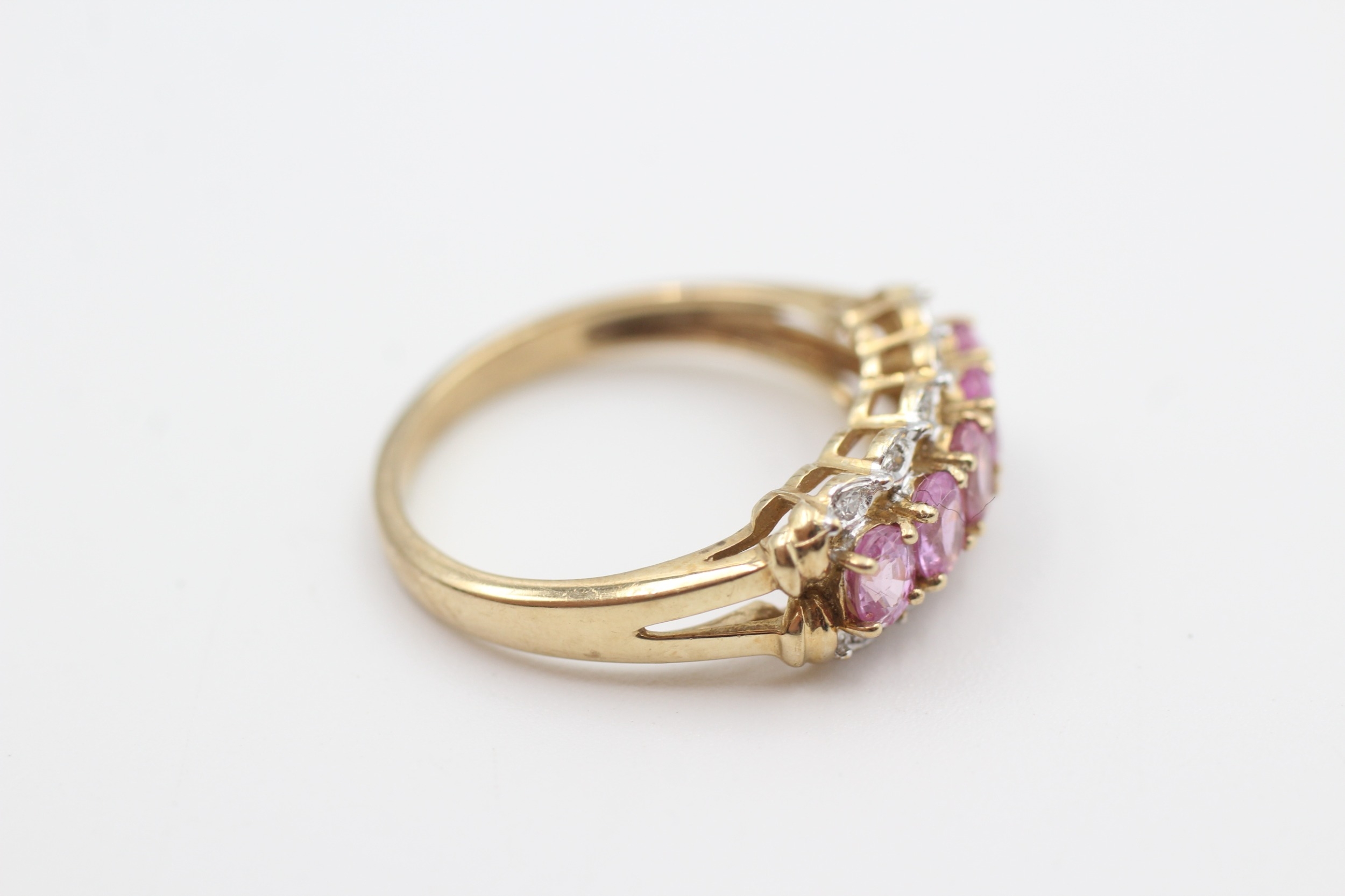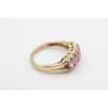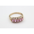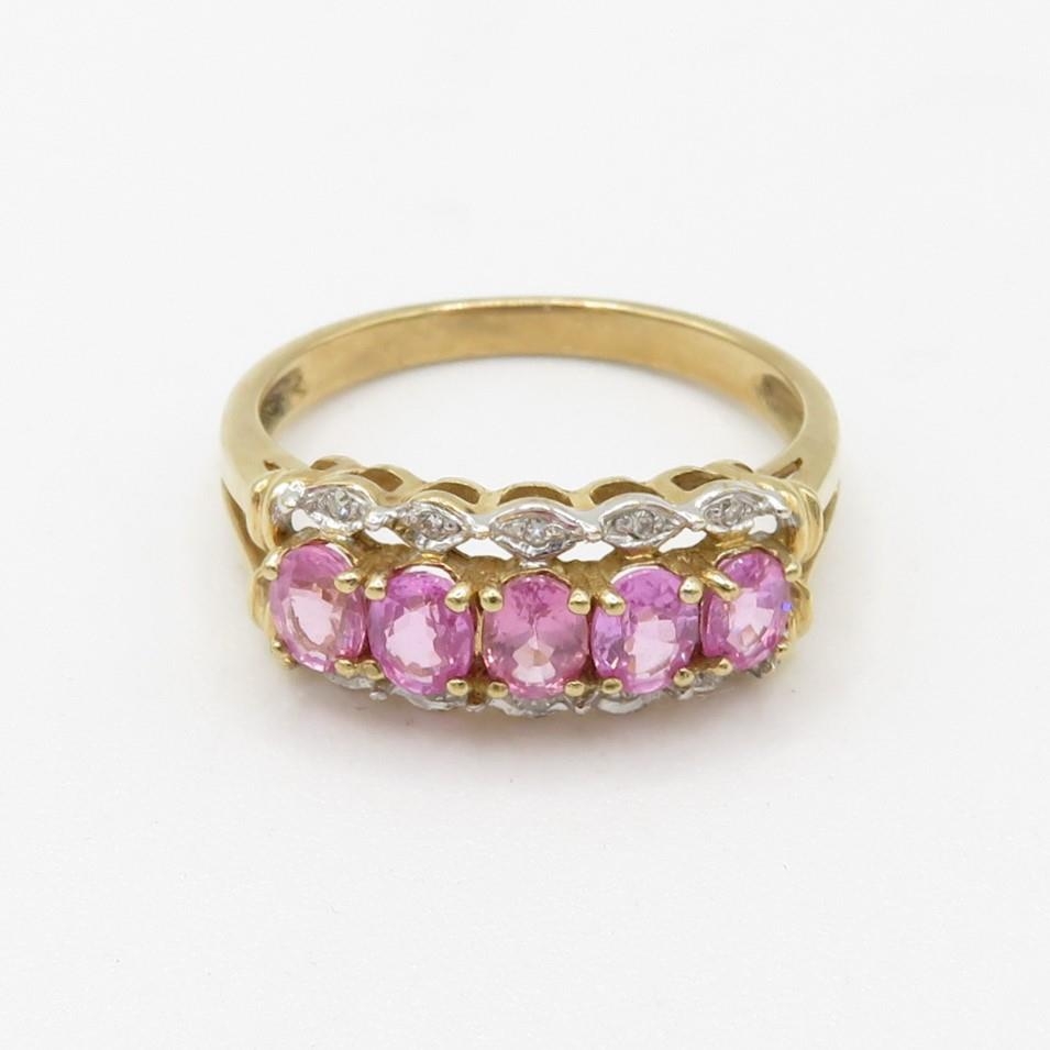 9ct gold pink sapphire five stone ring with diamond surround (2.6g) Size N