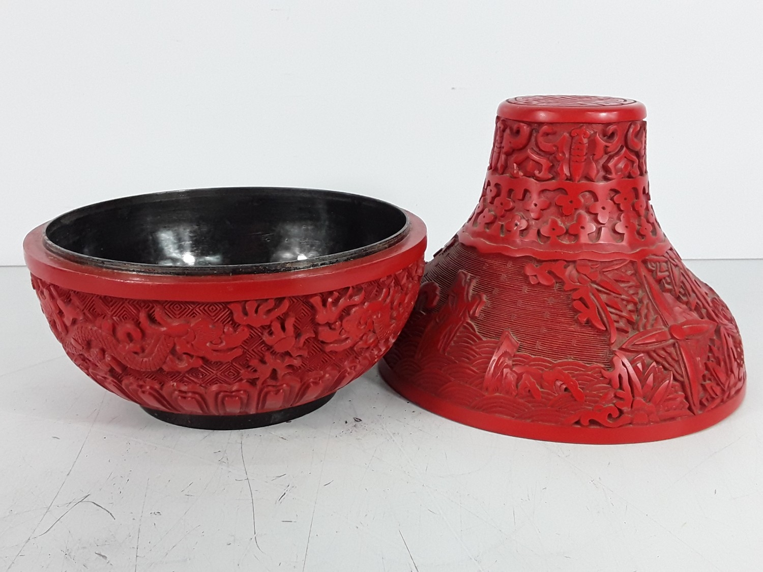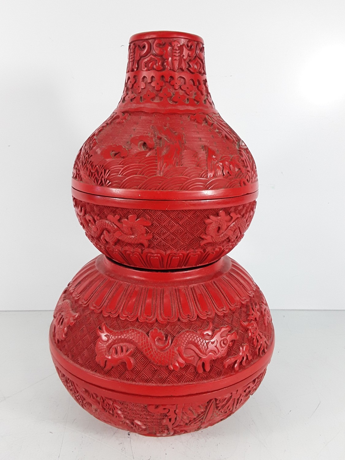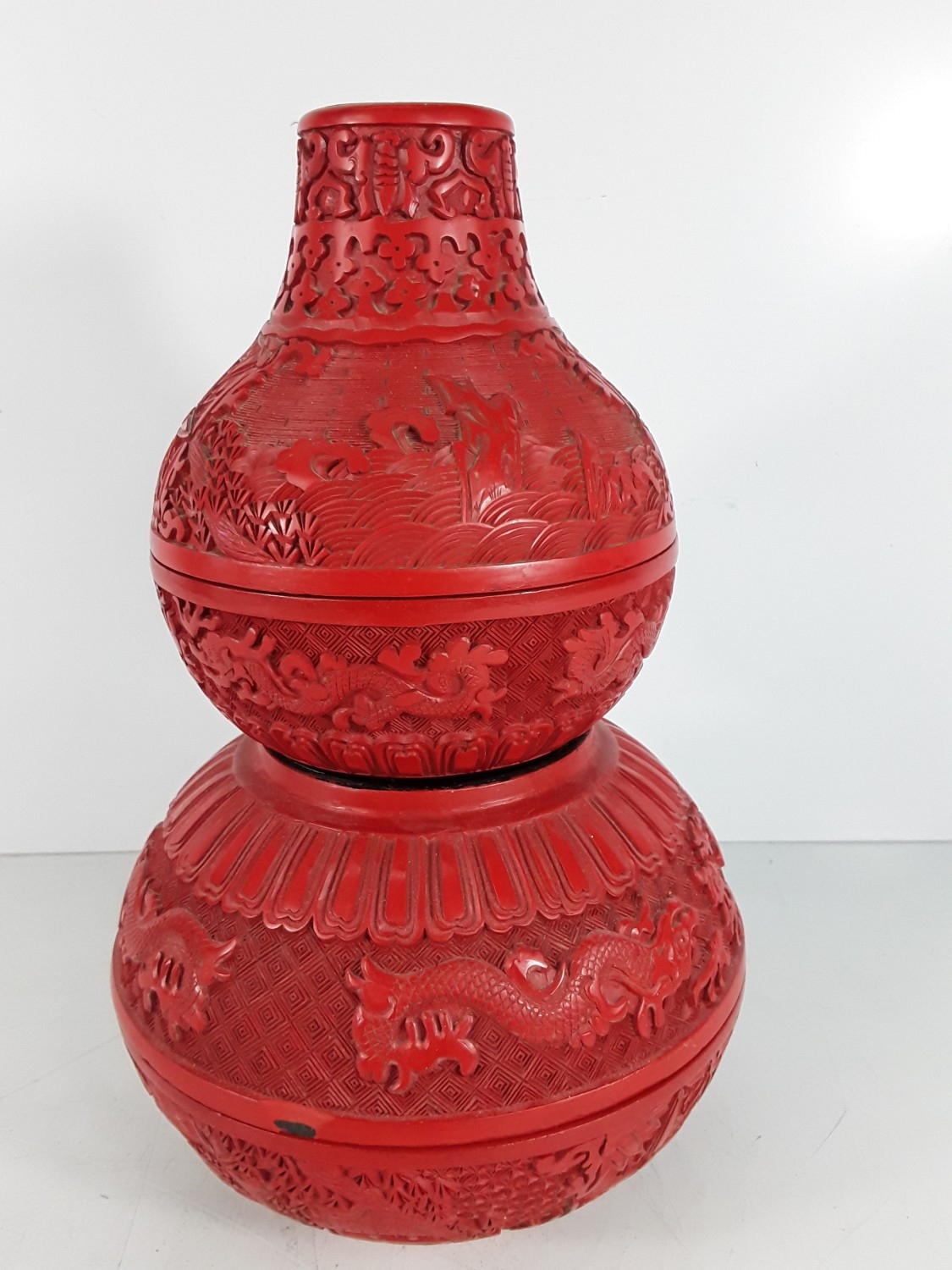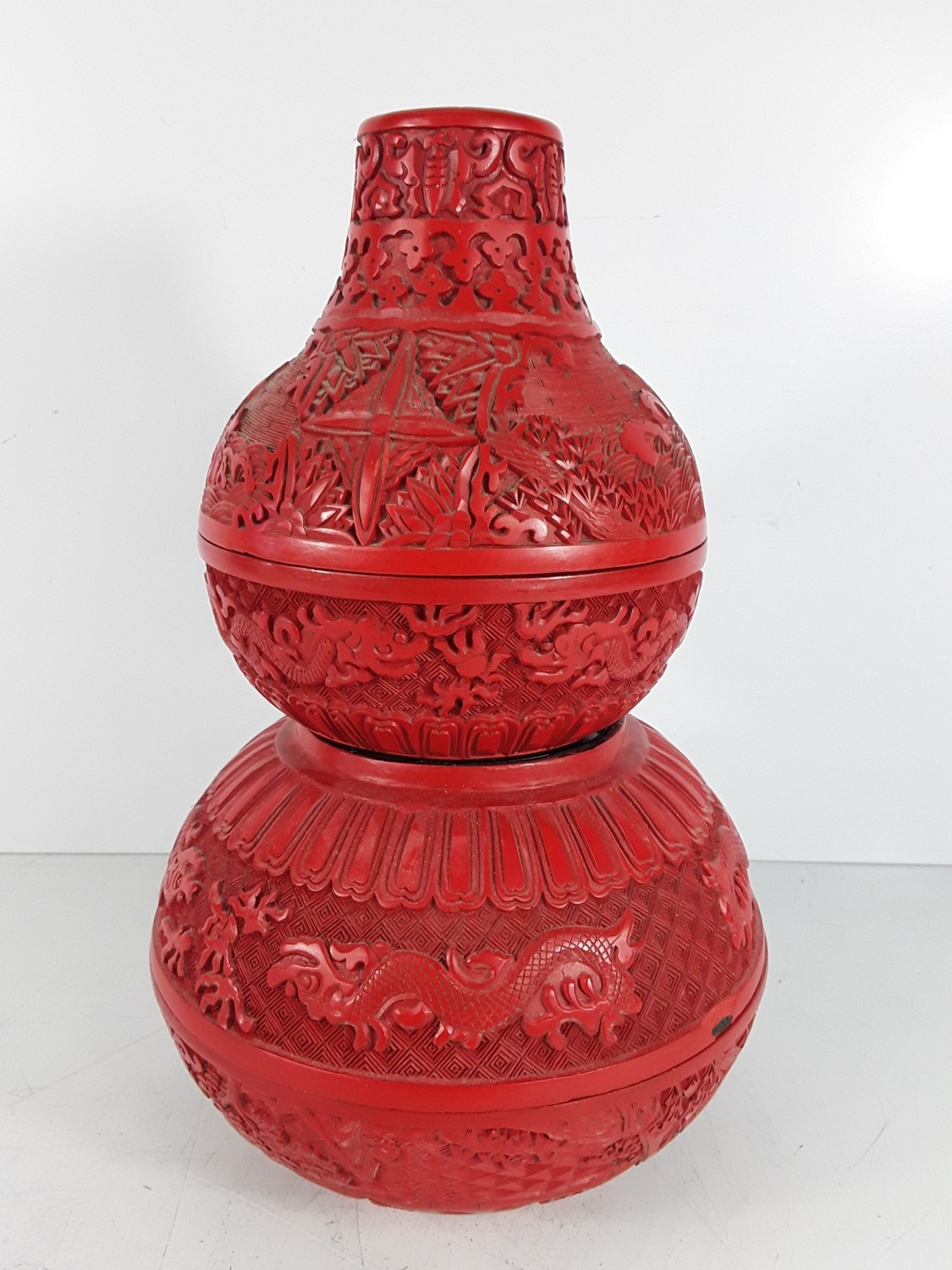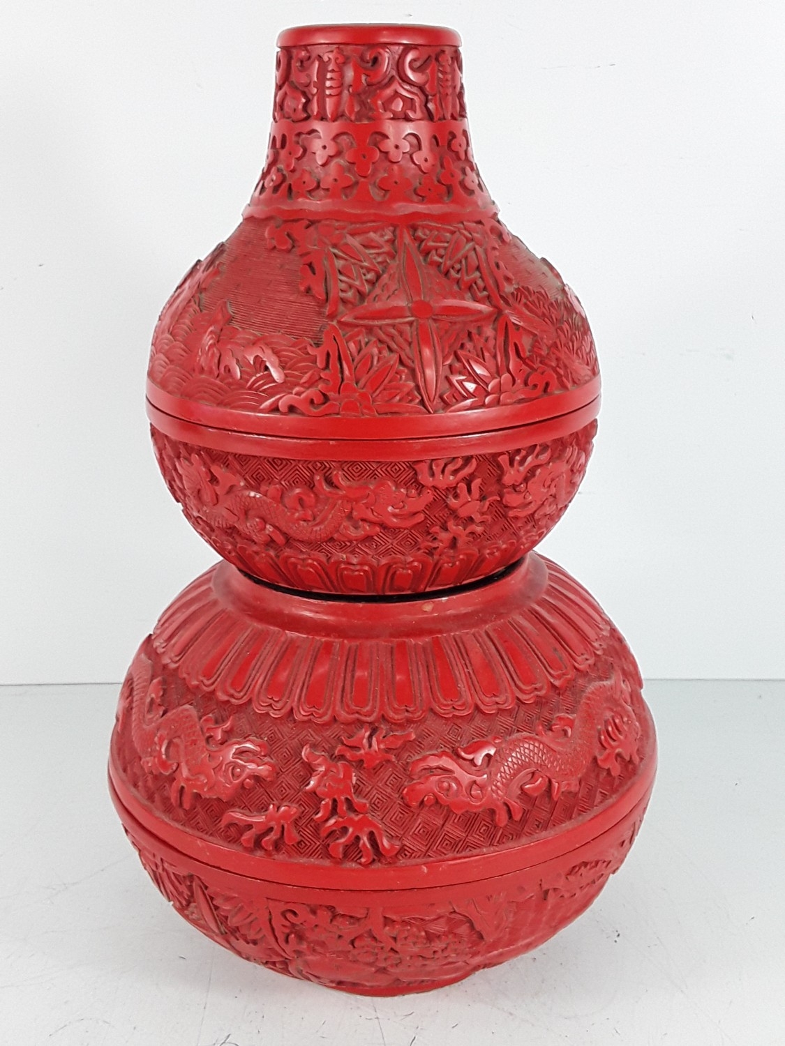 Chinese cinnabar triple gourd vase, 31 x 20cms