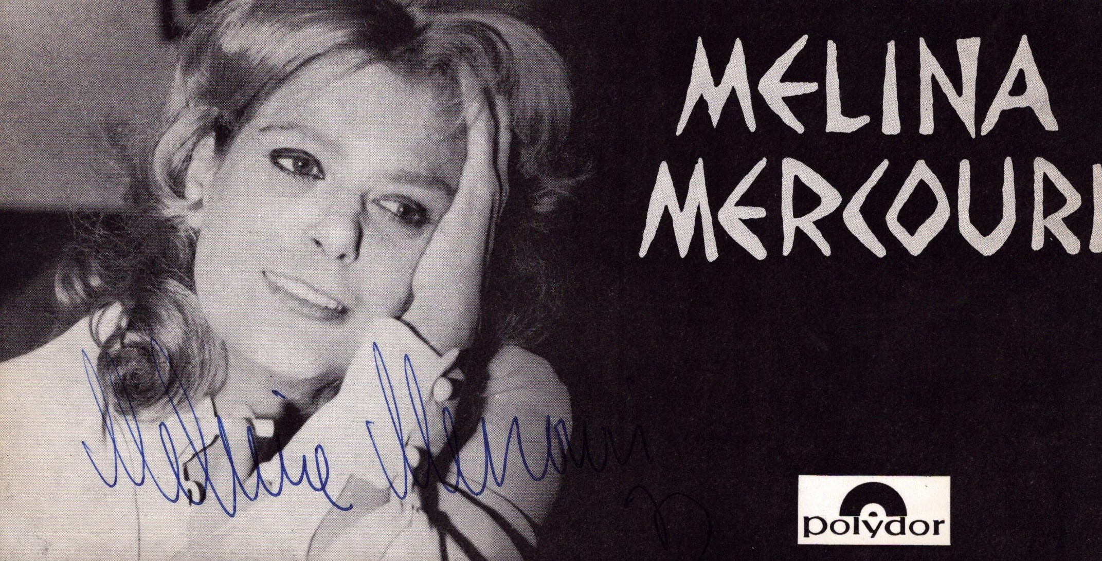 Melina Mercouri signed programme 8x4 inches approx., black and white 1974.