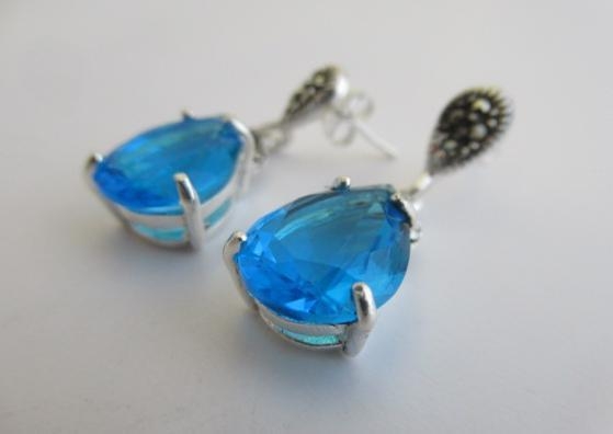 PAIR OF SILVER AND BLUE TOPAZ EARRINGS