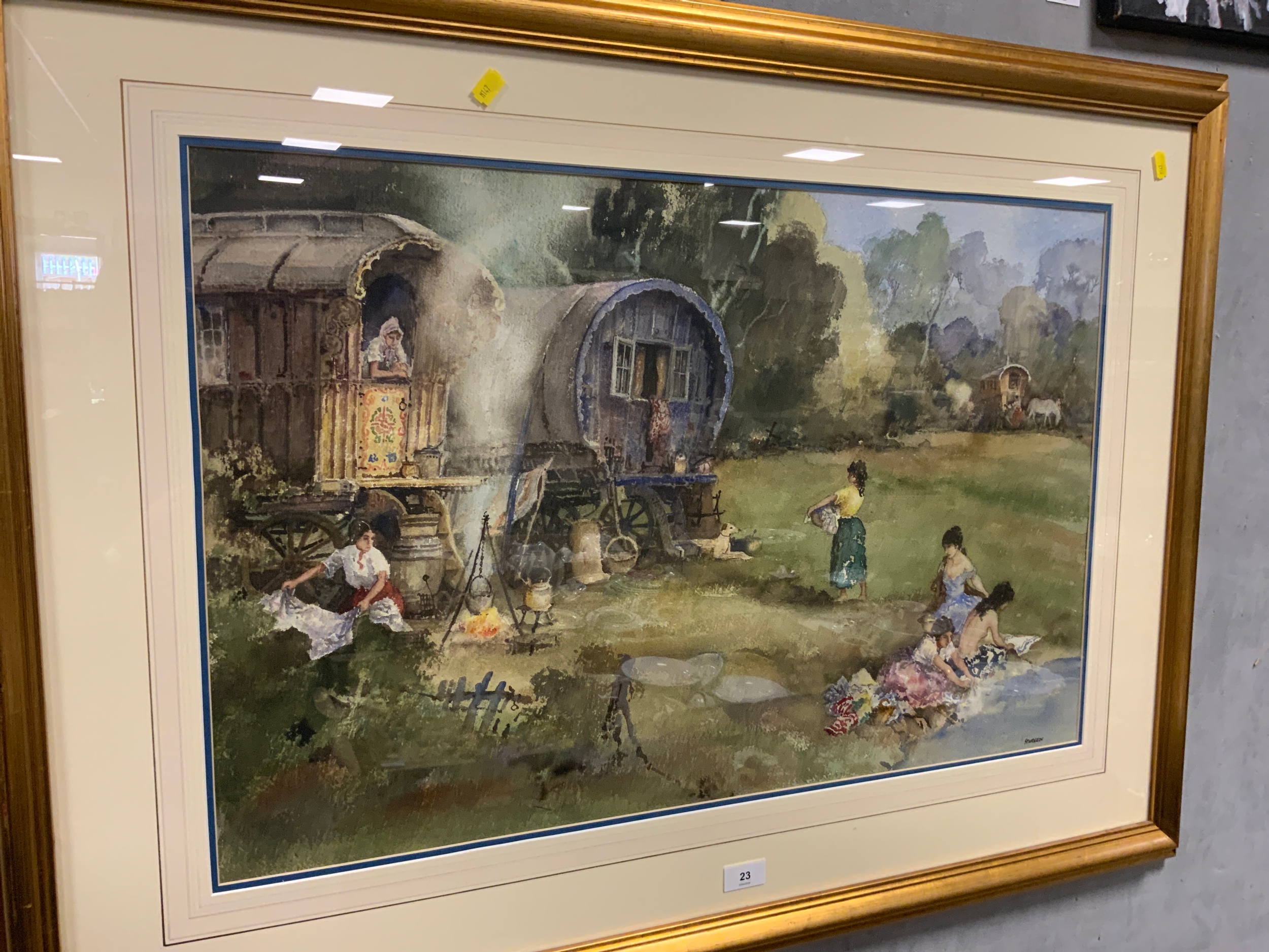 E R Sturgeon (1920-1999) ‘Gypsy Encampment’ watercolour 48.5 x 75 cm