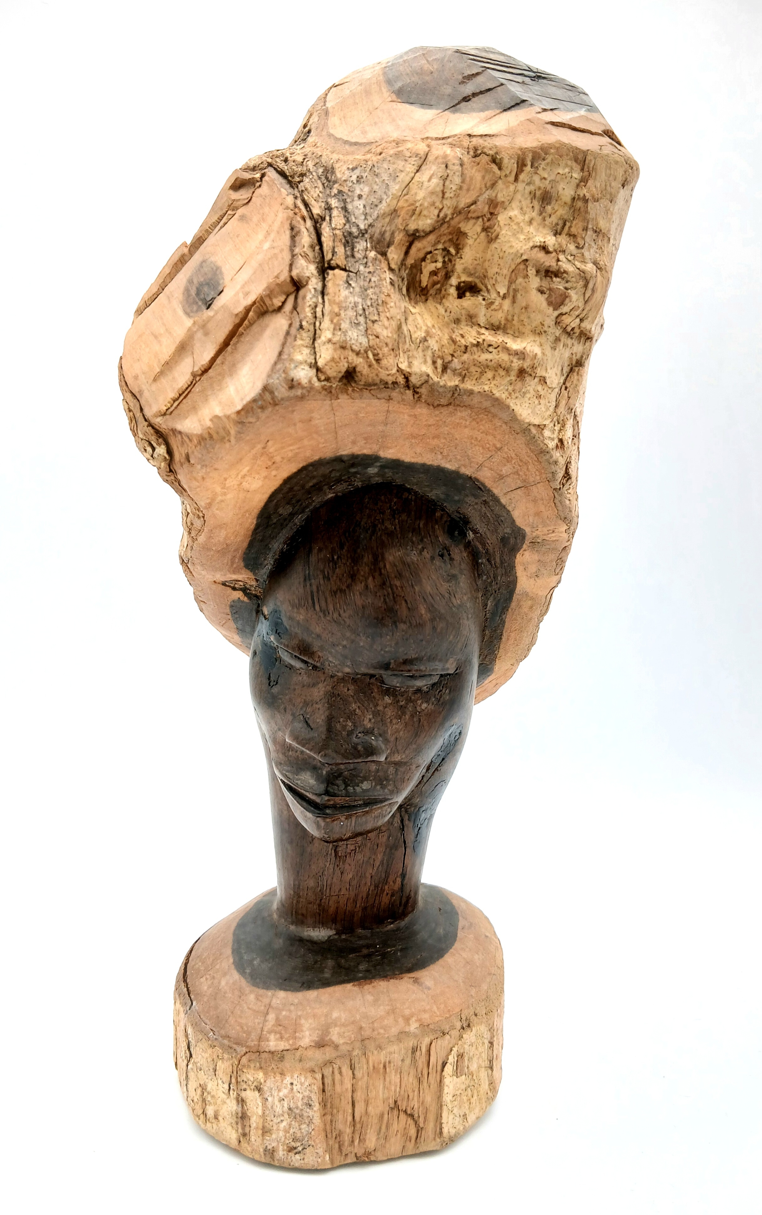 A vintage hand-carved Tribal wooden sculpture from a solid wood trunk. Height 28cm. Please see photos for details.