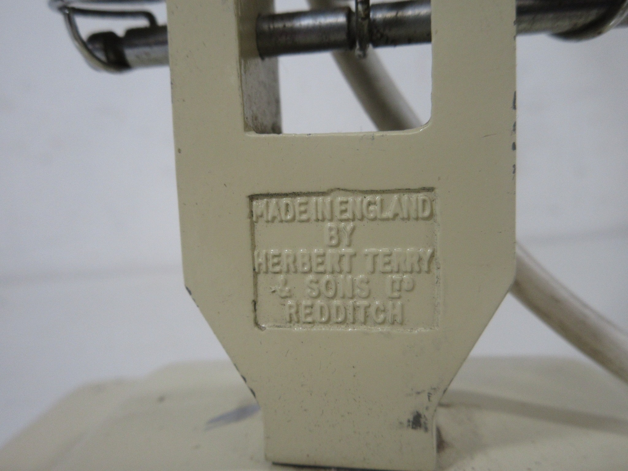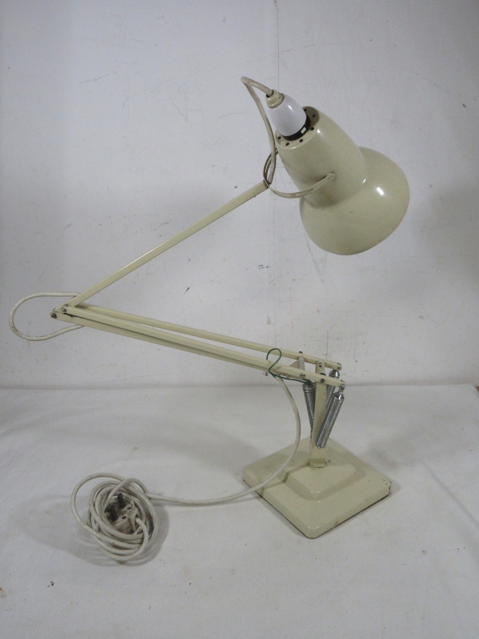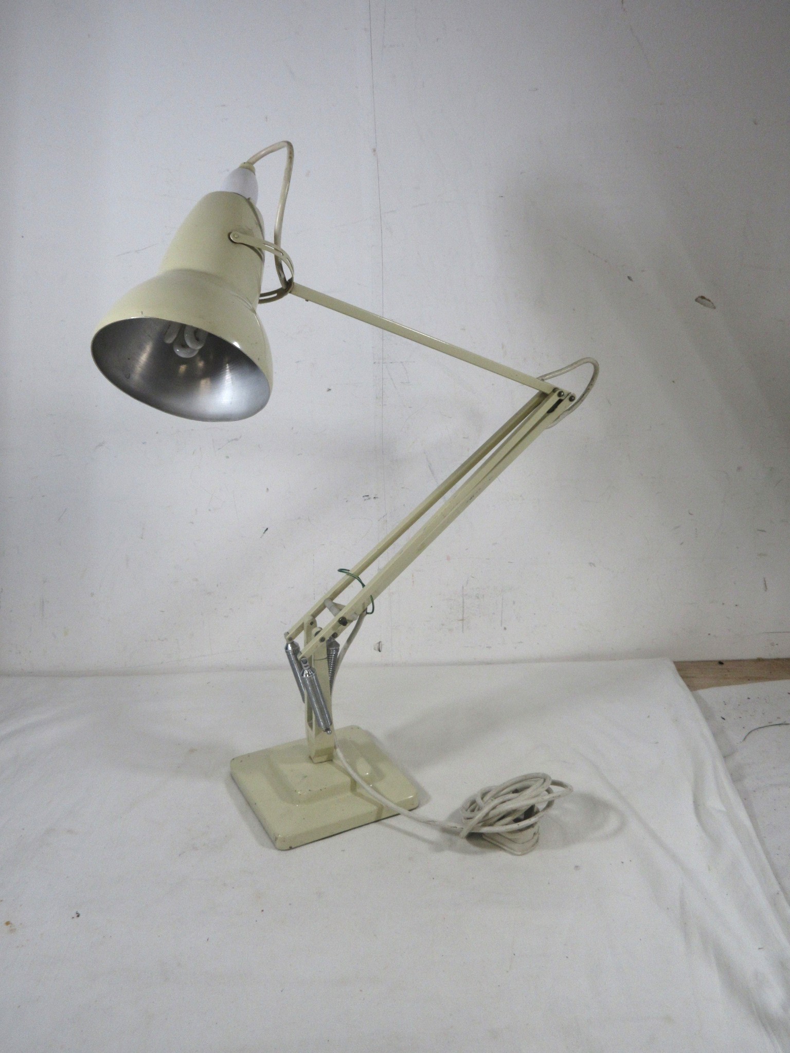 A vintage cream-coloured Herbert Terry anglepoise lamp with square-stepped base, in very good order indeed