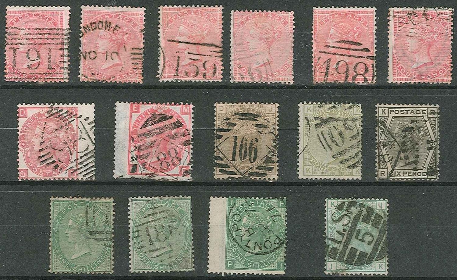 UK; 1855-83 small used seln. of surface-printed, cat. approx. £2,675. (15)