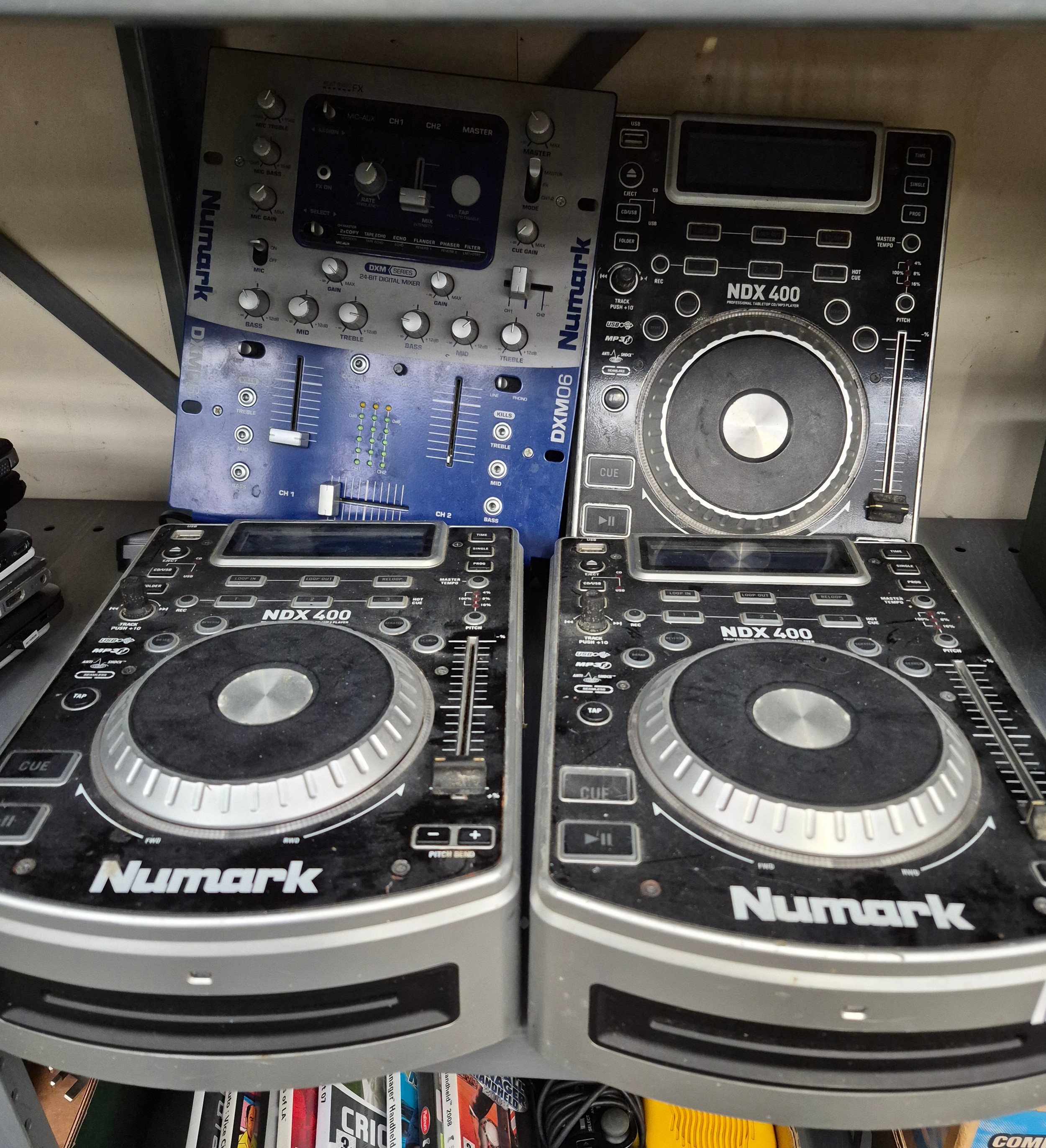 Quantity of Numark NDX 400 MP3 players, and a Numark DXM06 digital mixer