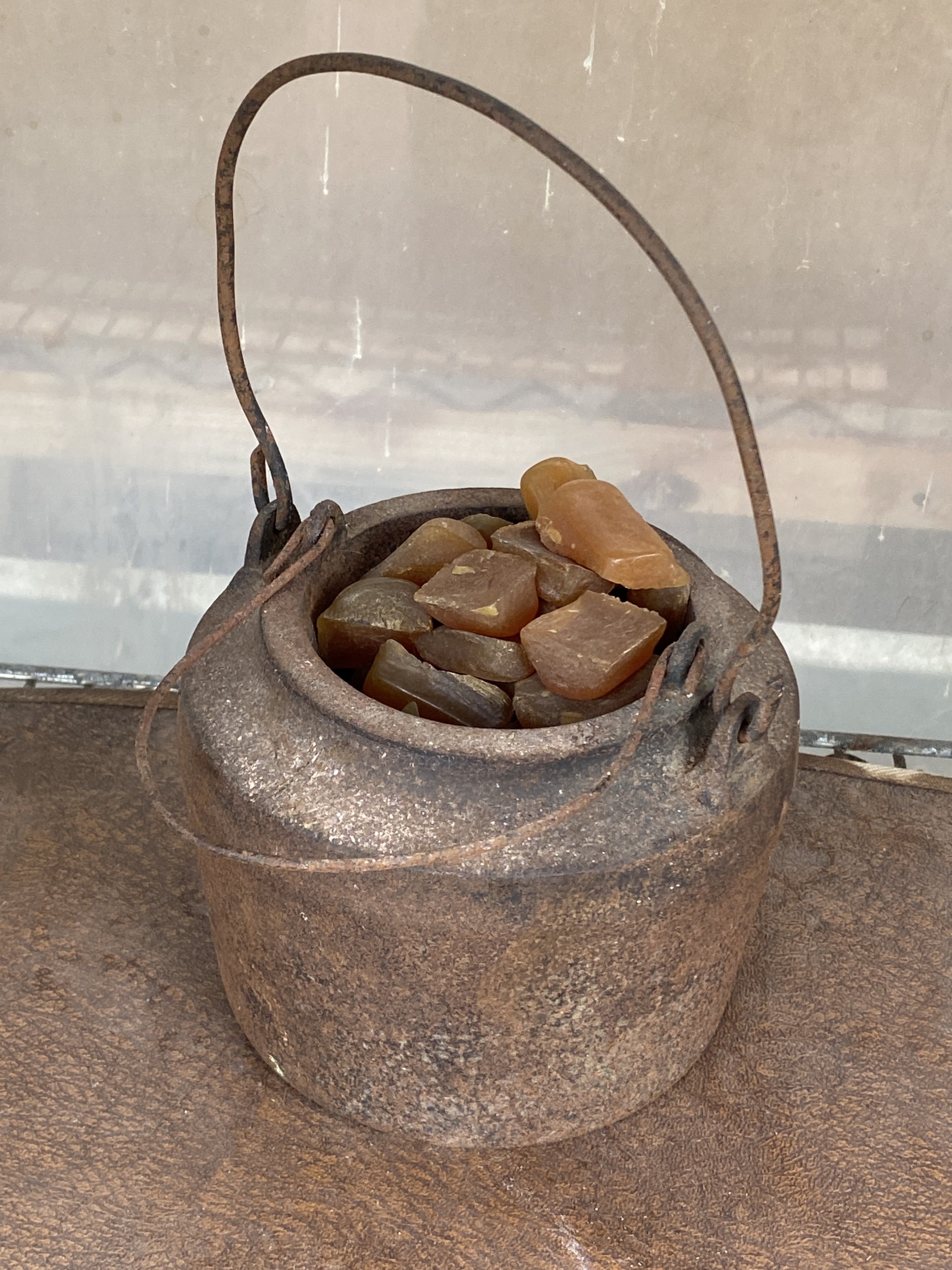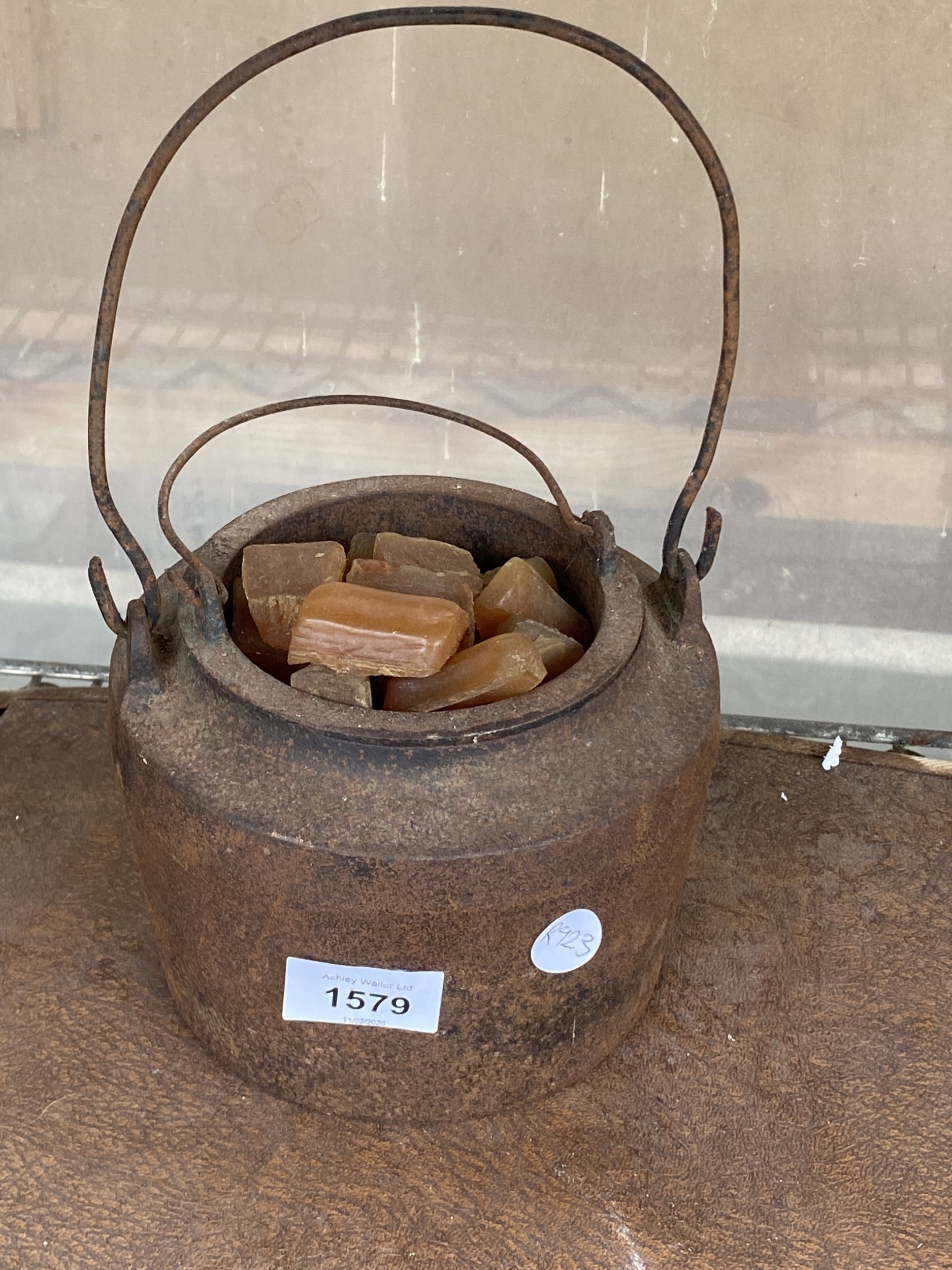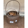 A SMALL CAST IRON COOKING POT