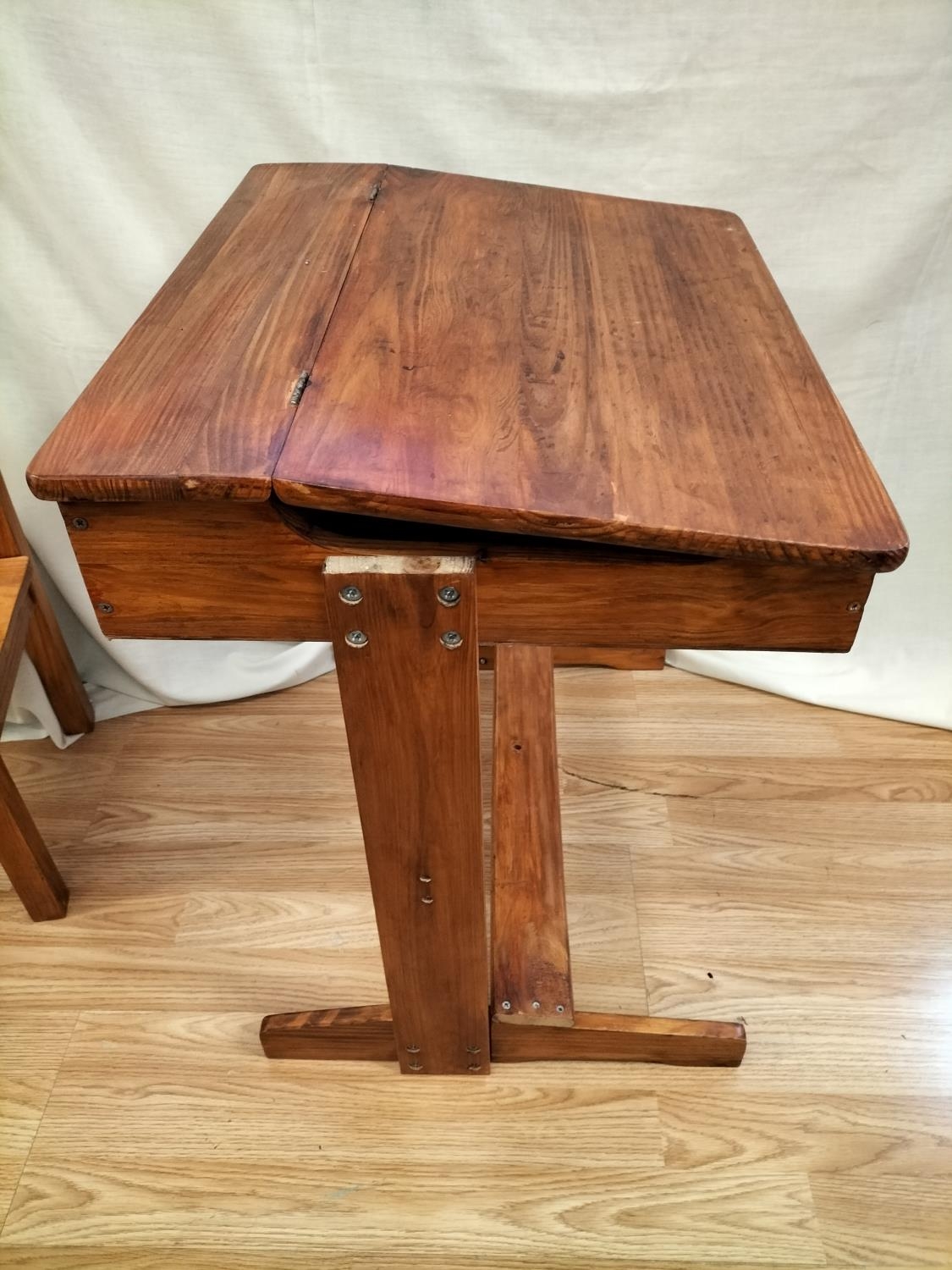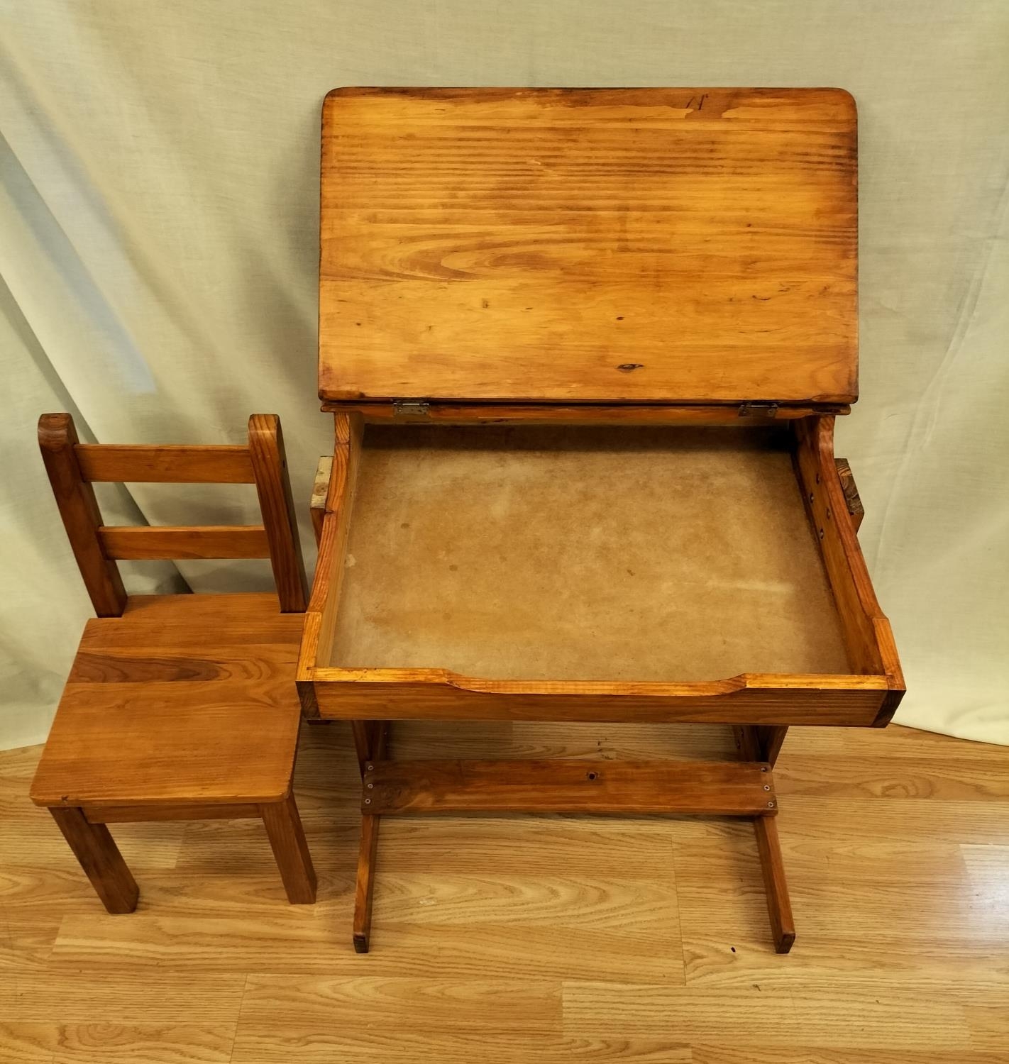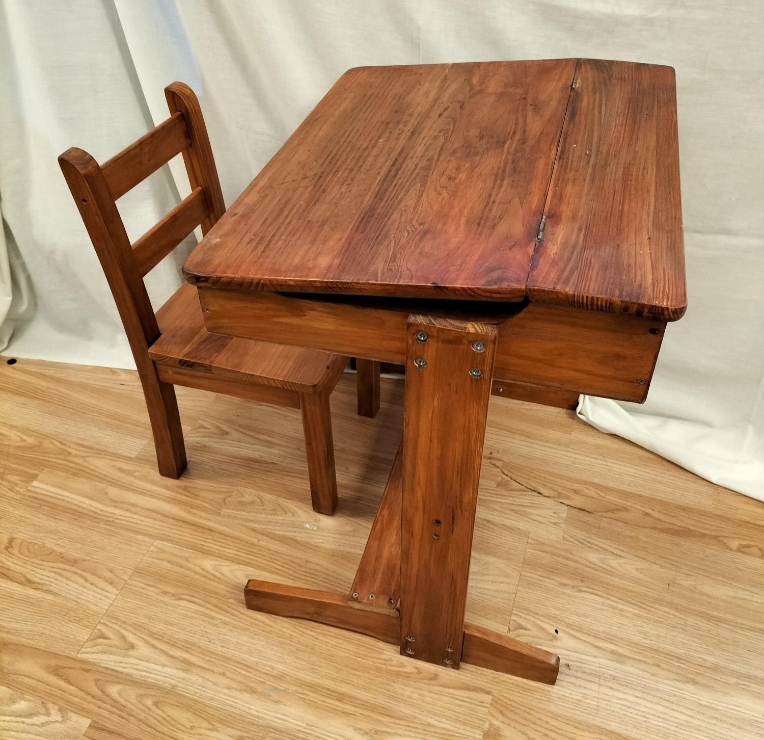Child's Wooden Desk with Hinged Lid (60cm High, 55cm x 45cm) plus Chair. Collection Only.