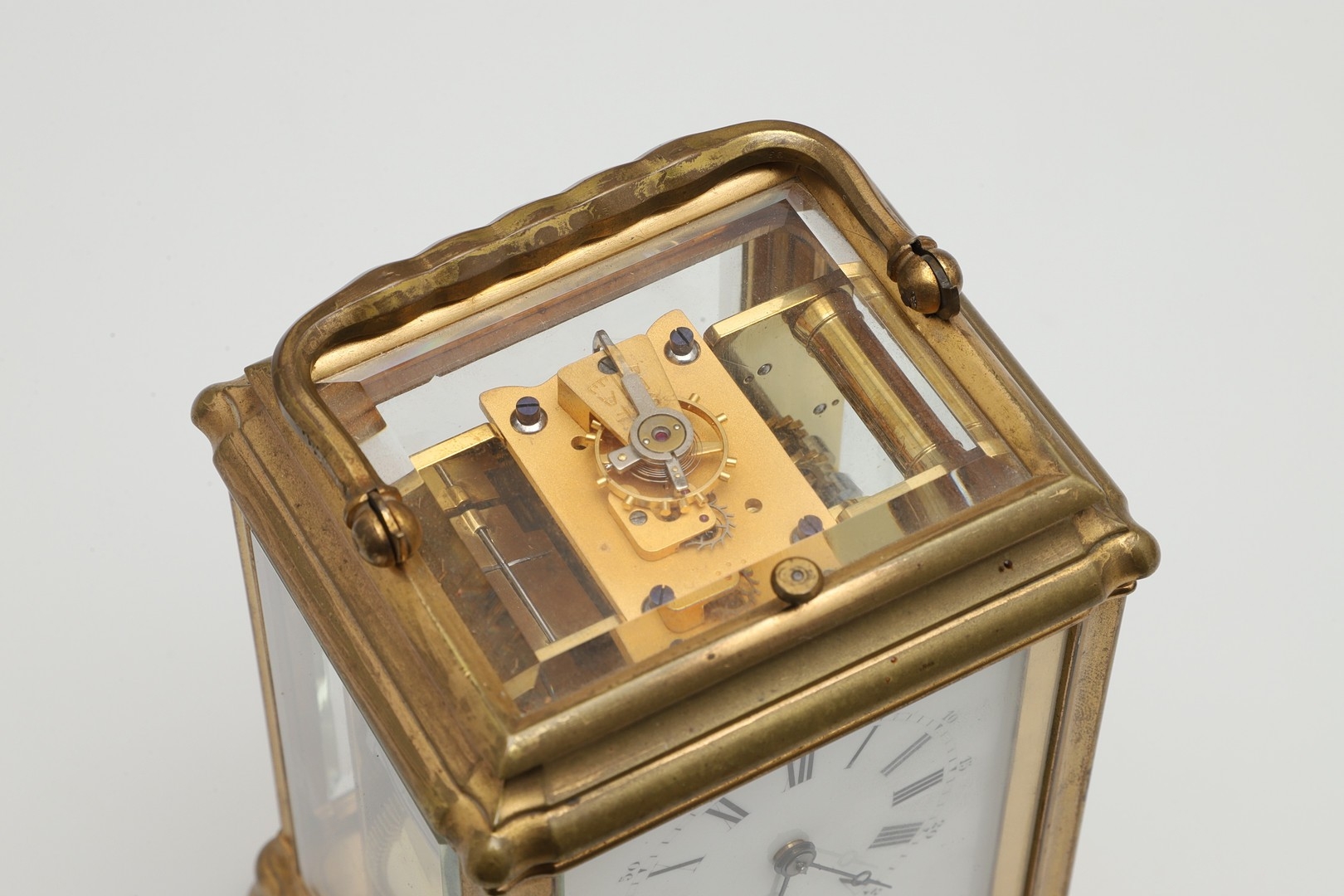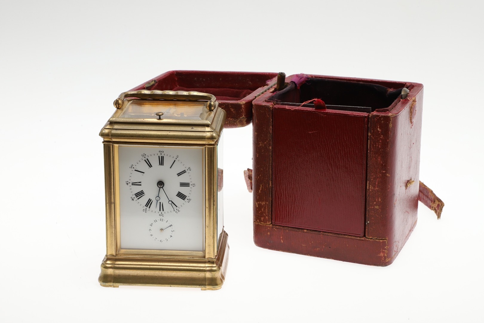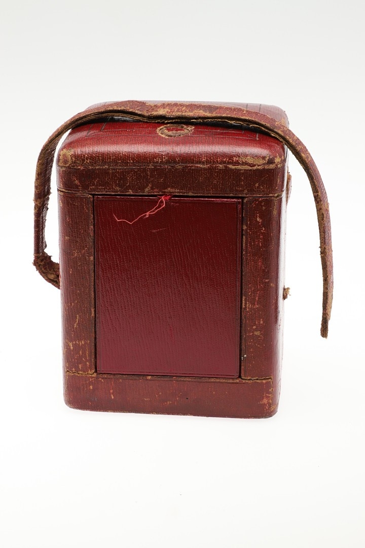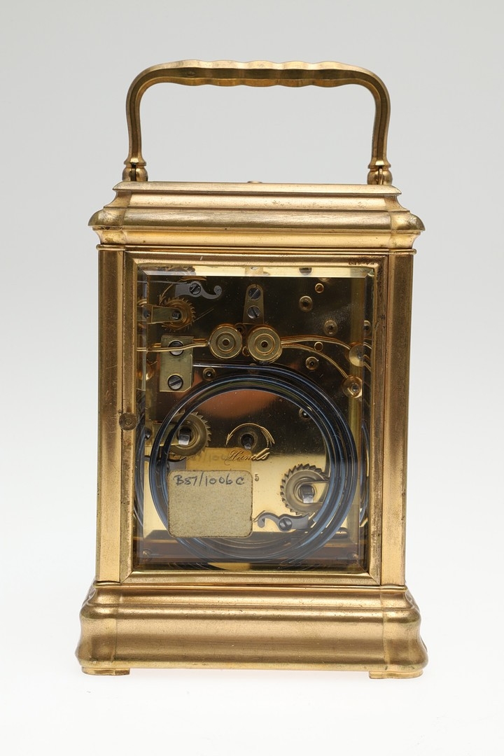 Light tarnish to case, no chips, currently running, winding and striking but does not strike the hours accurately. replaced balance wheel/escapement, wear to carry case including strap broken.