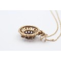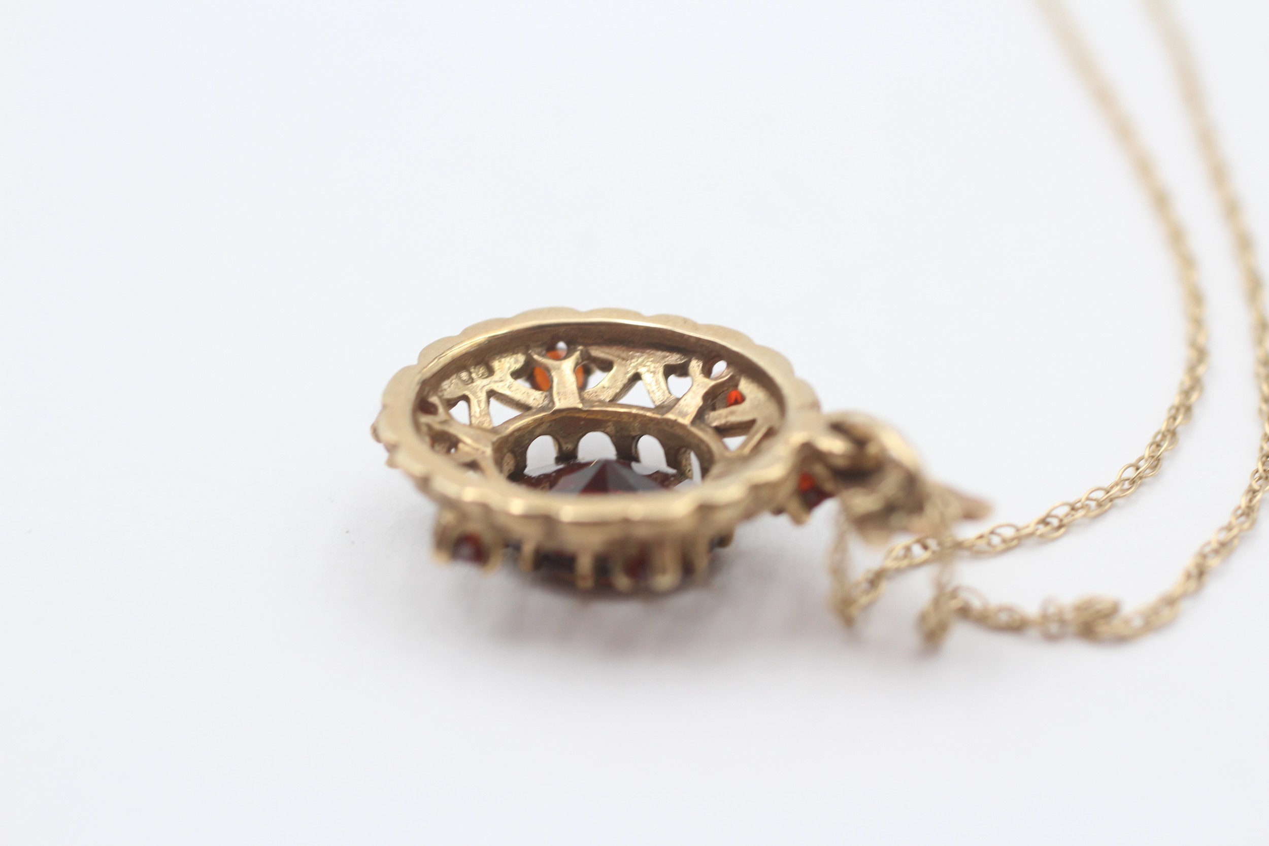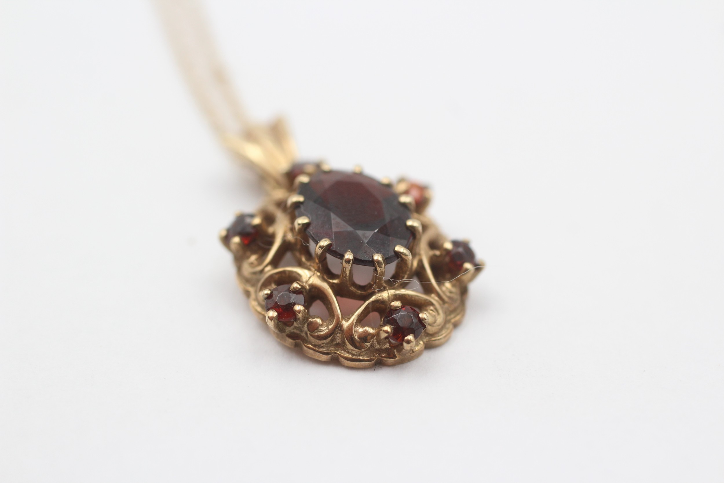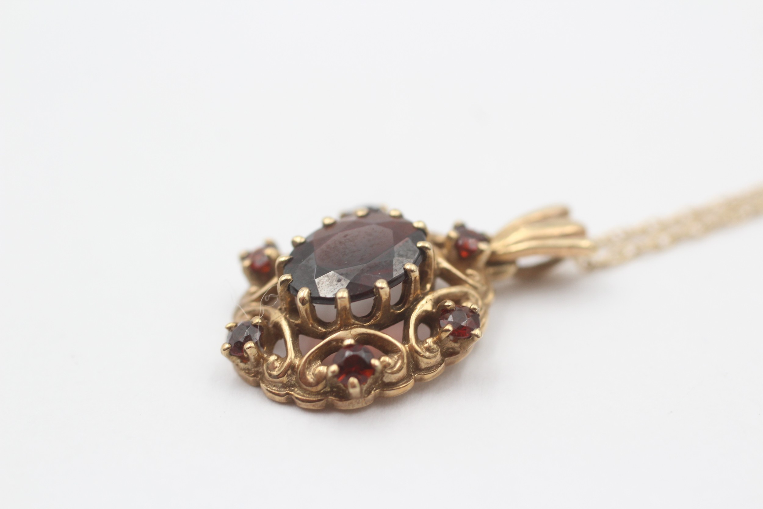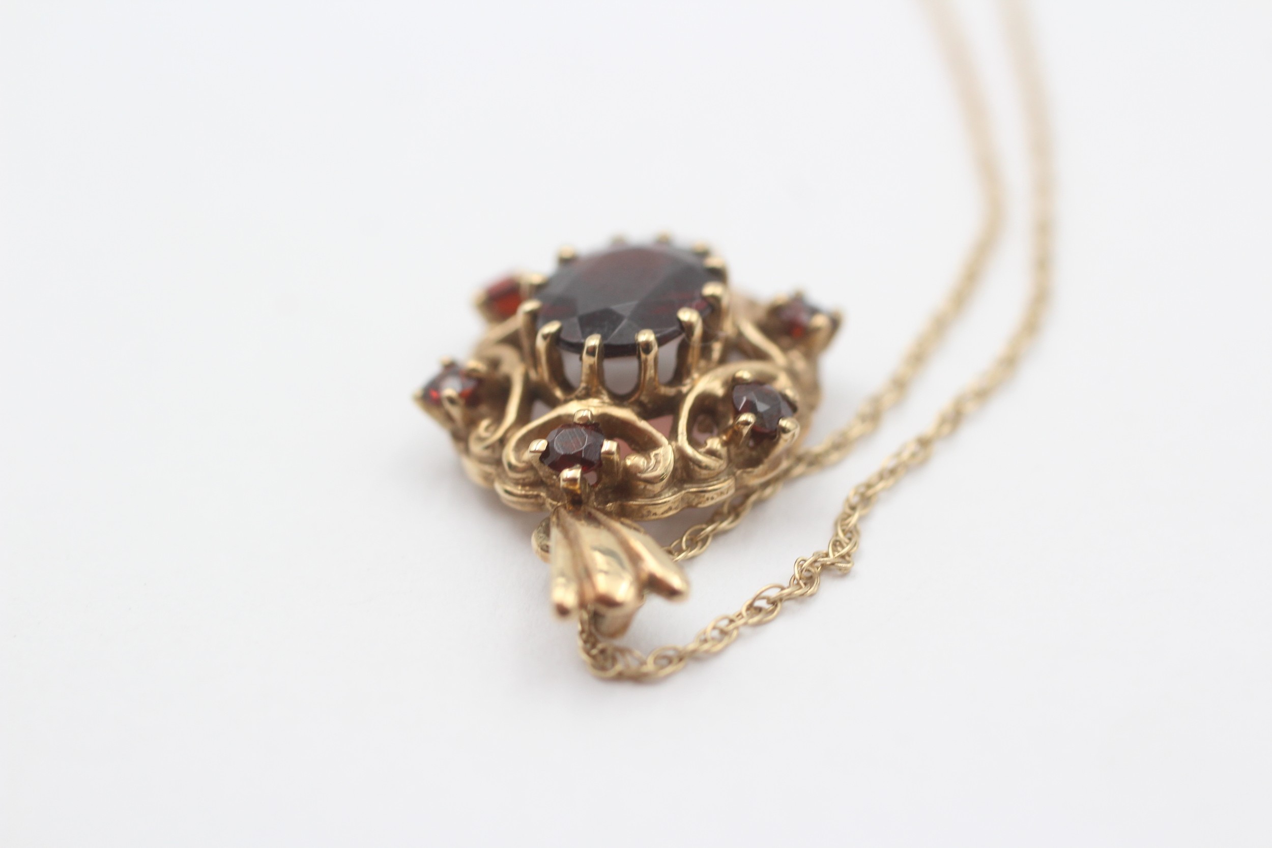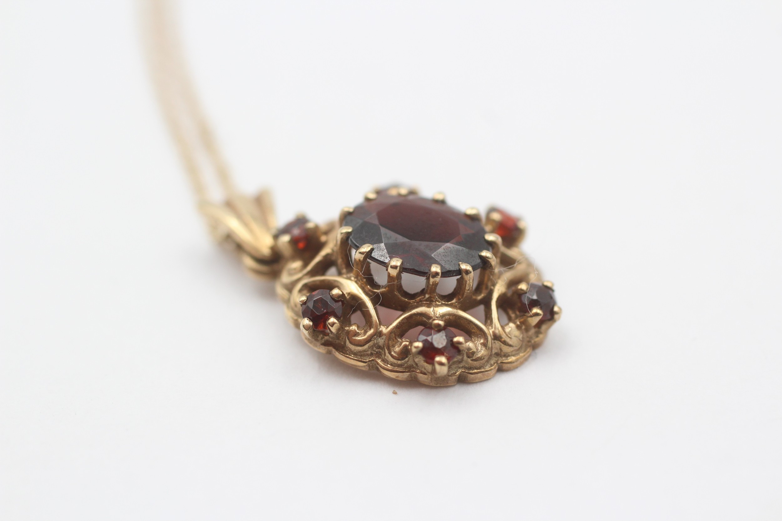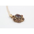 9ct Gold Garnet Ornate Oval Pendant Necklace (3.6g)