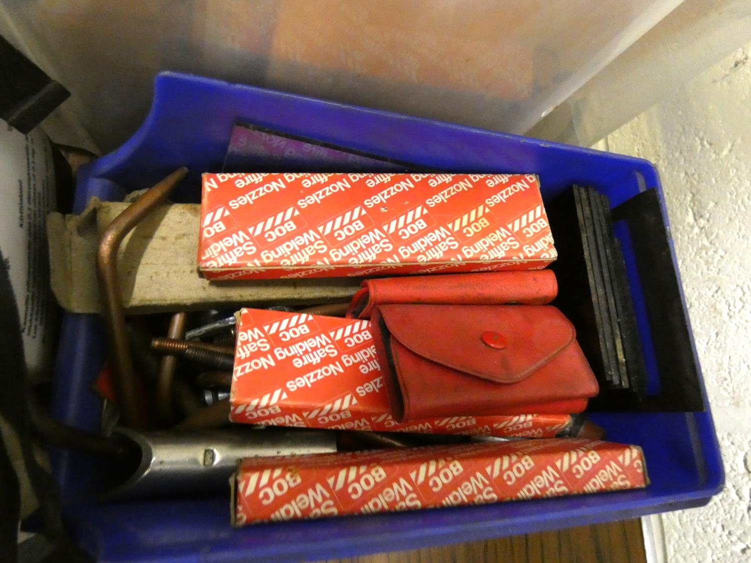 Large box of cutting torch and welding accessories.