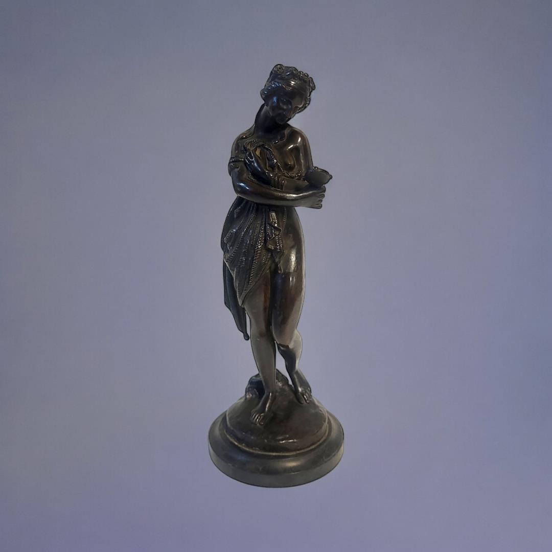 Classical form maiden with hand mirror, on black slate base.