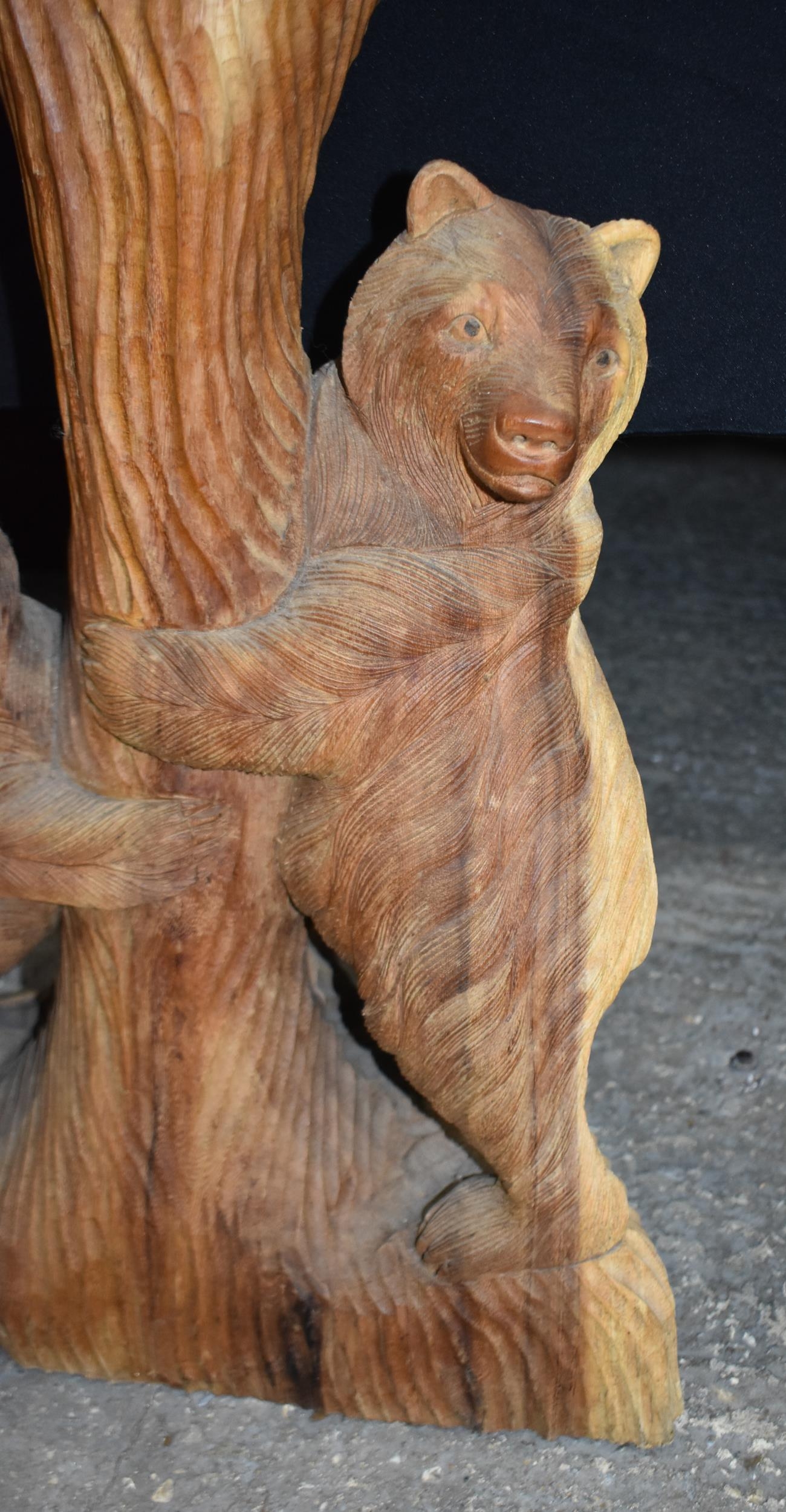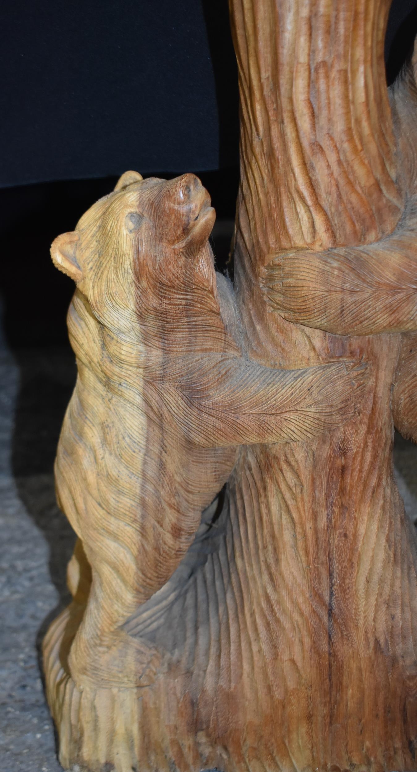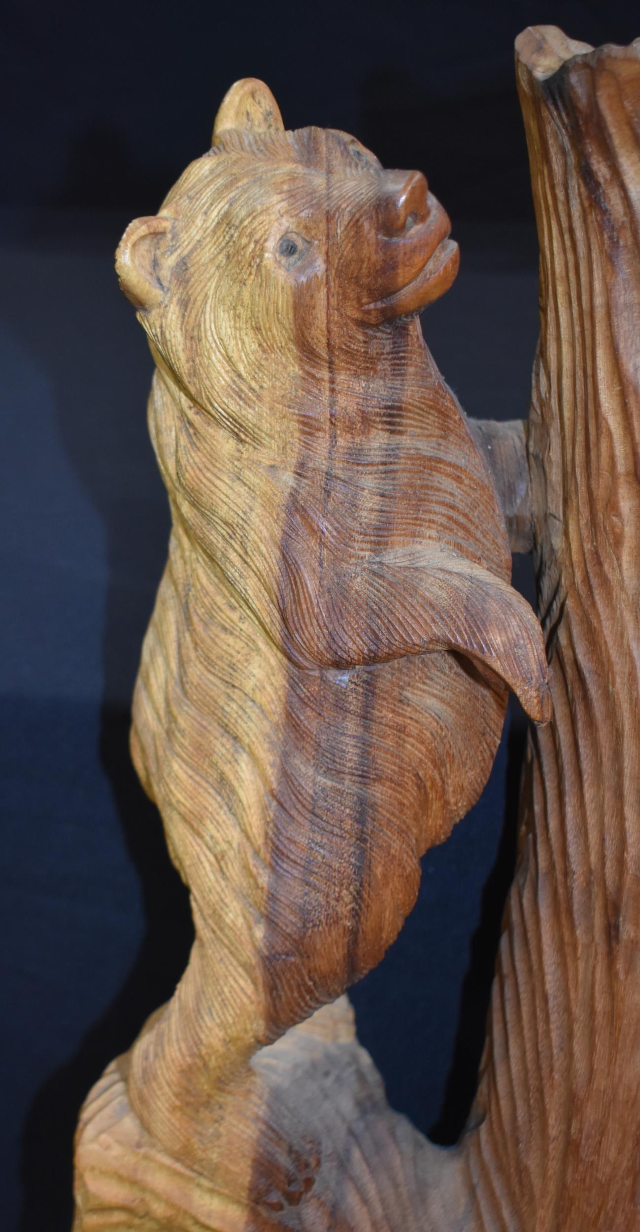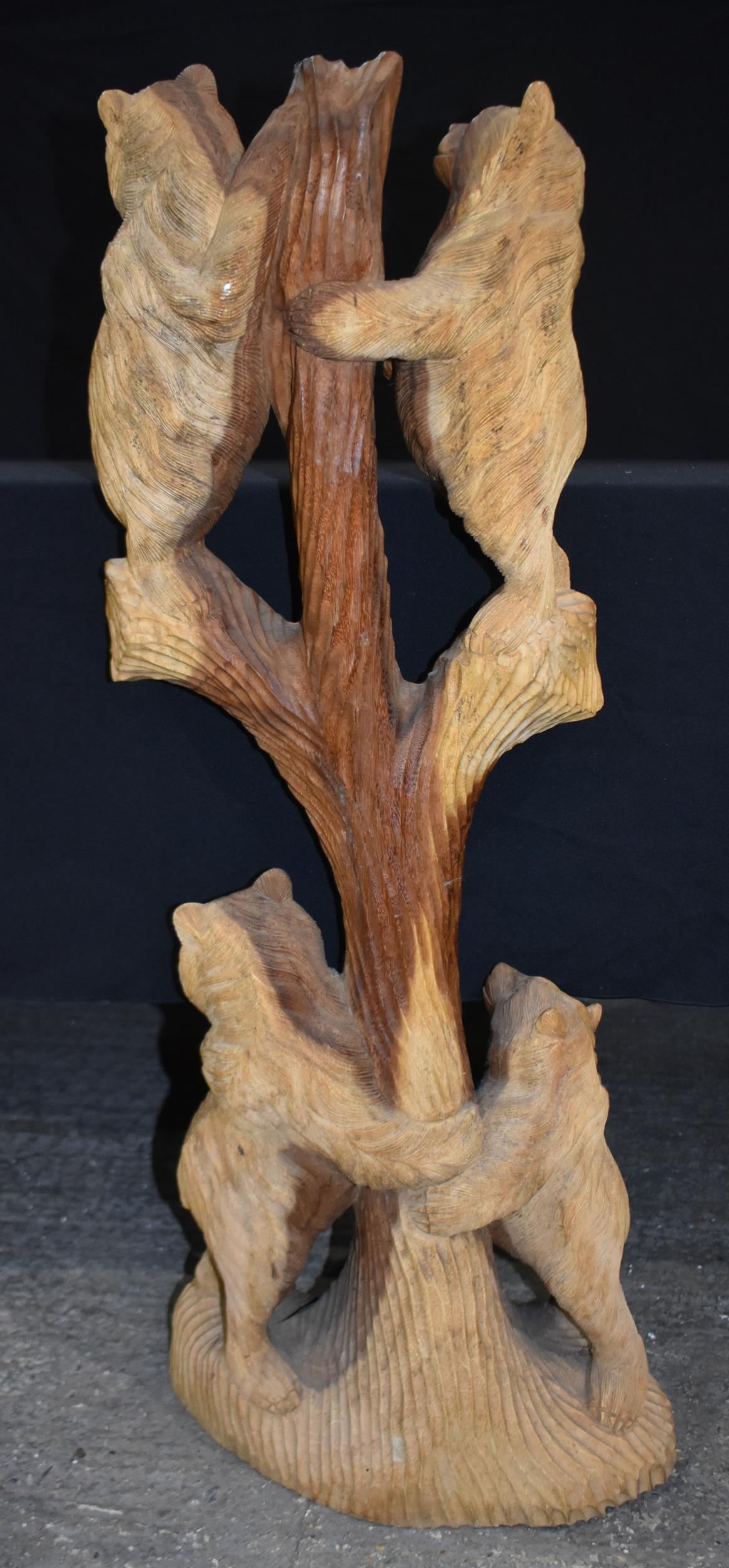 A large carved wood bear group 102cm