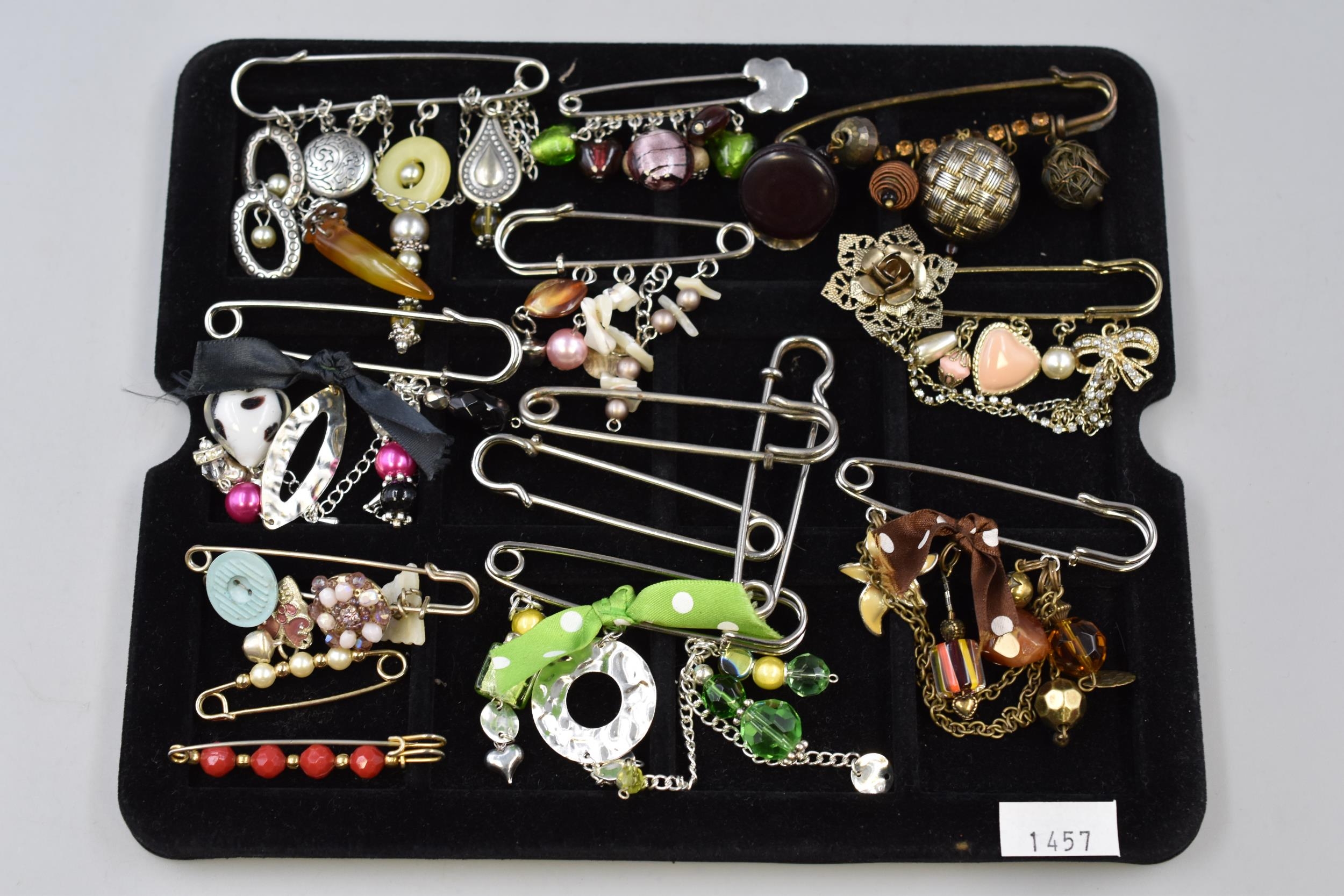 A Selection of Vintage Safety Pin Charm Brooches (Some Without Charms)