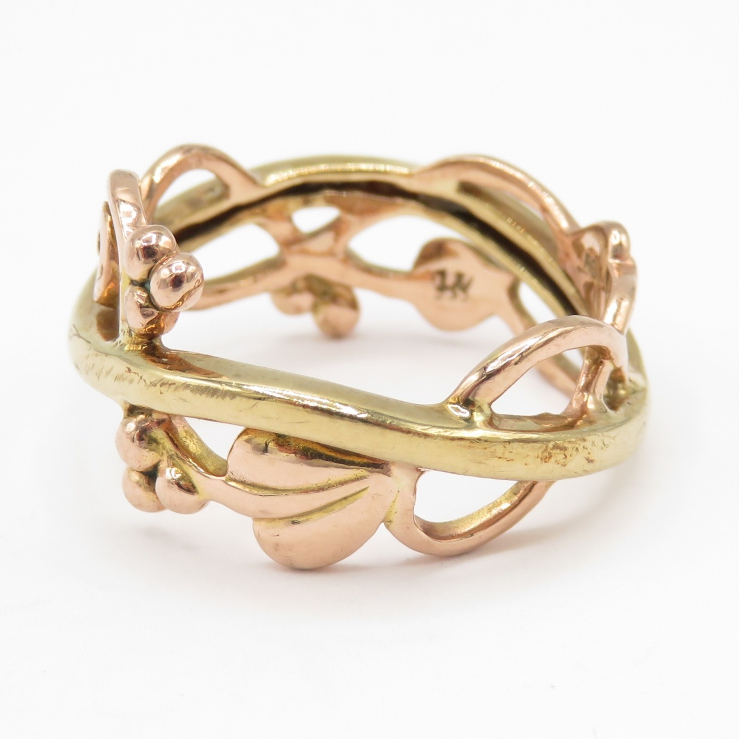 9ct gold clogau leaf design ring (4.6g) size Q