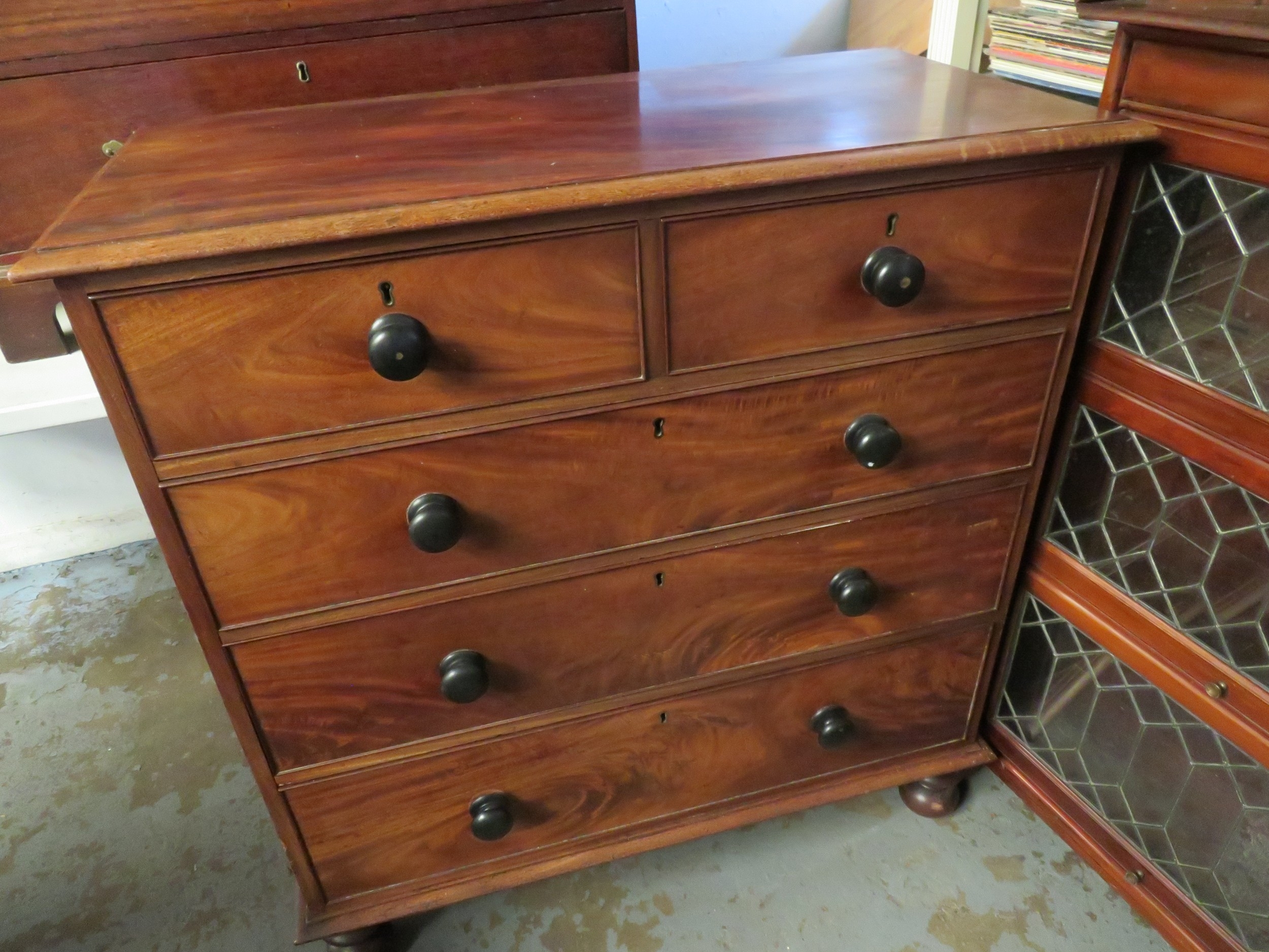 Victorian mahogany chest of two short and three long drawers on turned feet