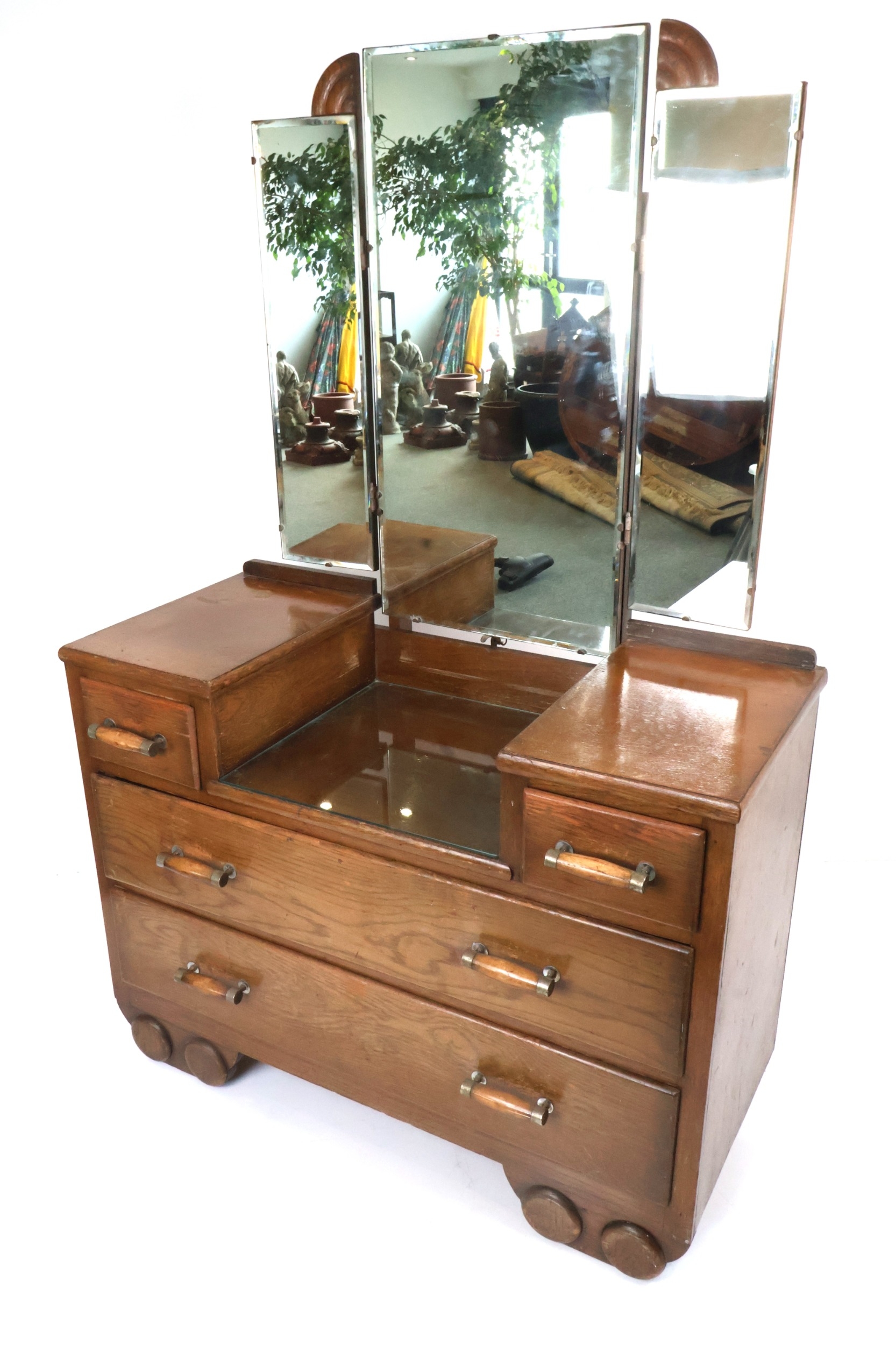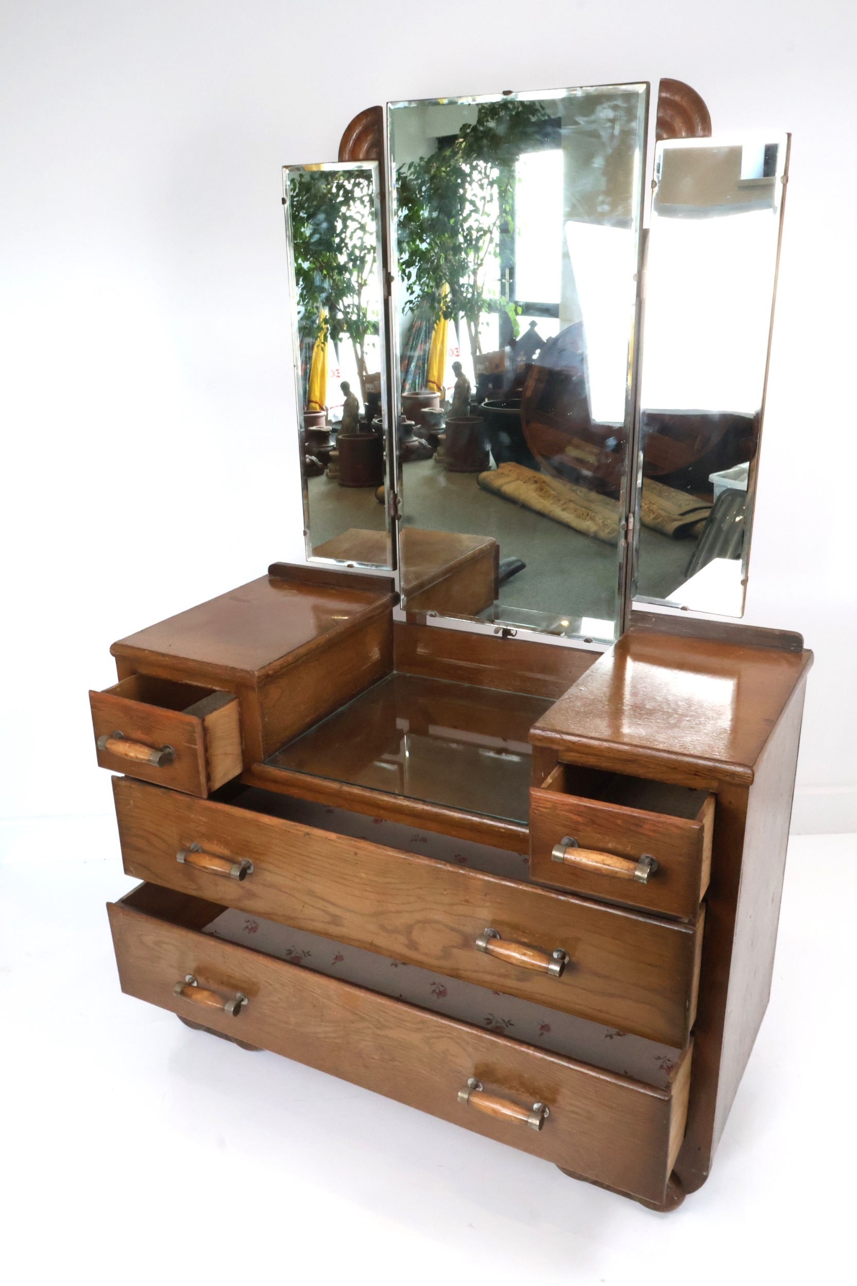 Art Deco Waterfall Style Dressing Table with Tri-Fold Mirror
