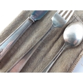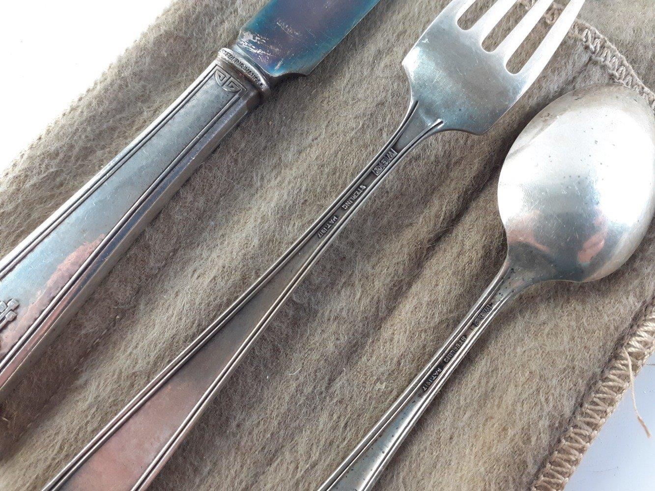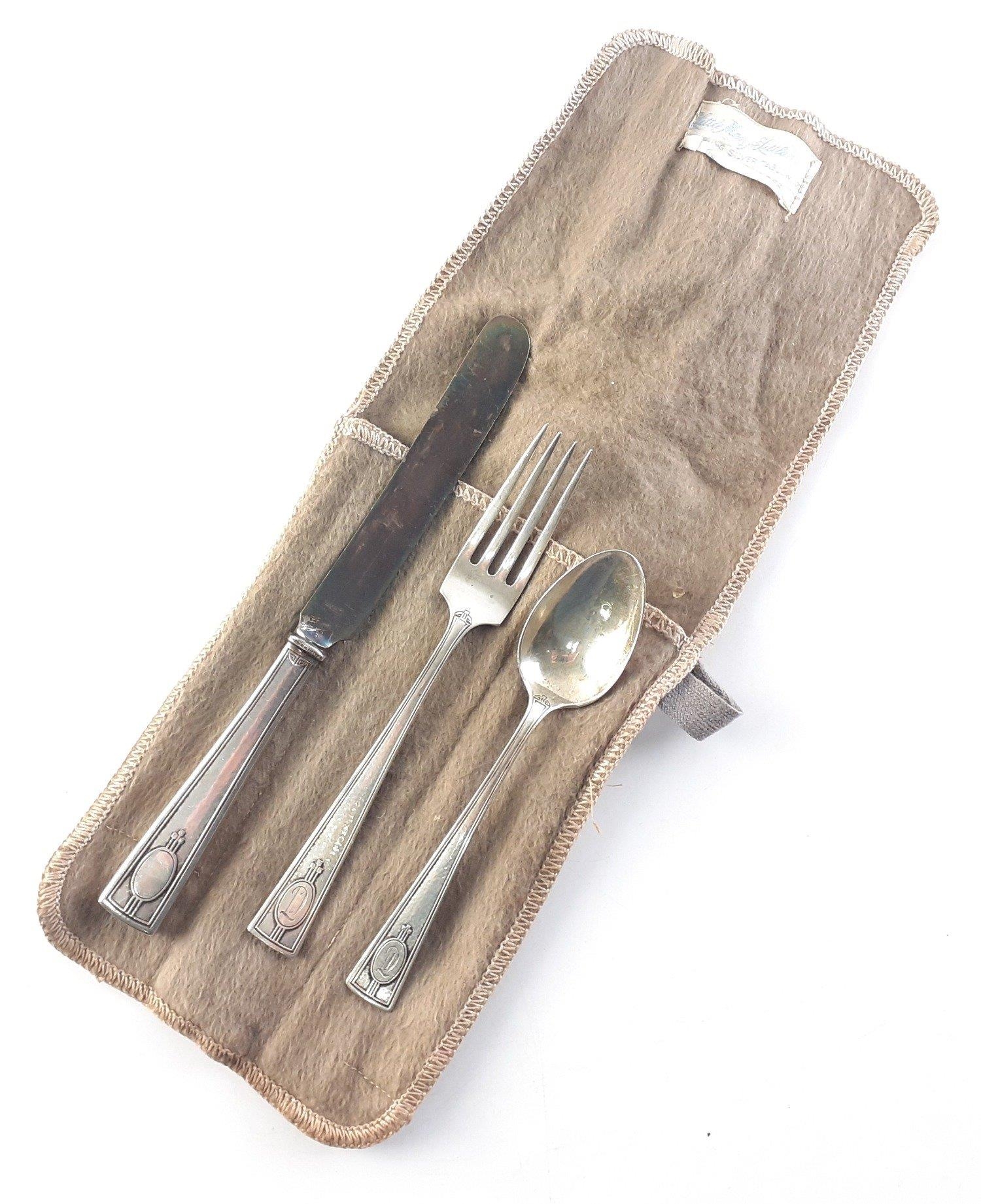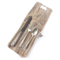 Sterling Silver marked knife, fork and teaspoon in soft case. Gross weight 75g