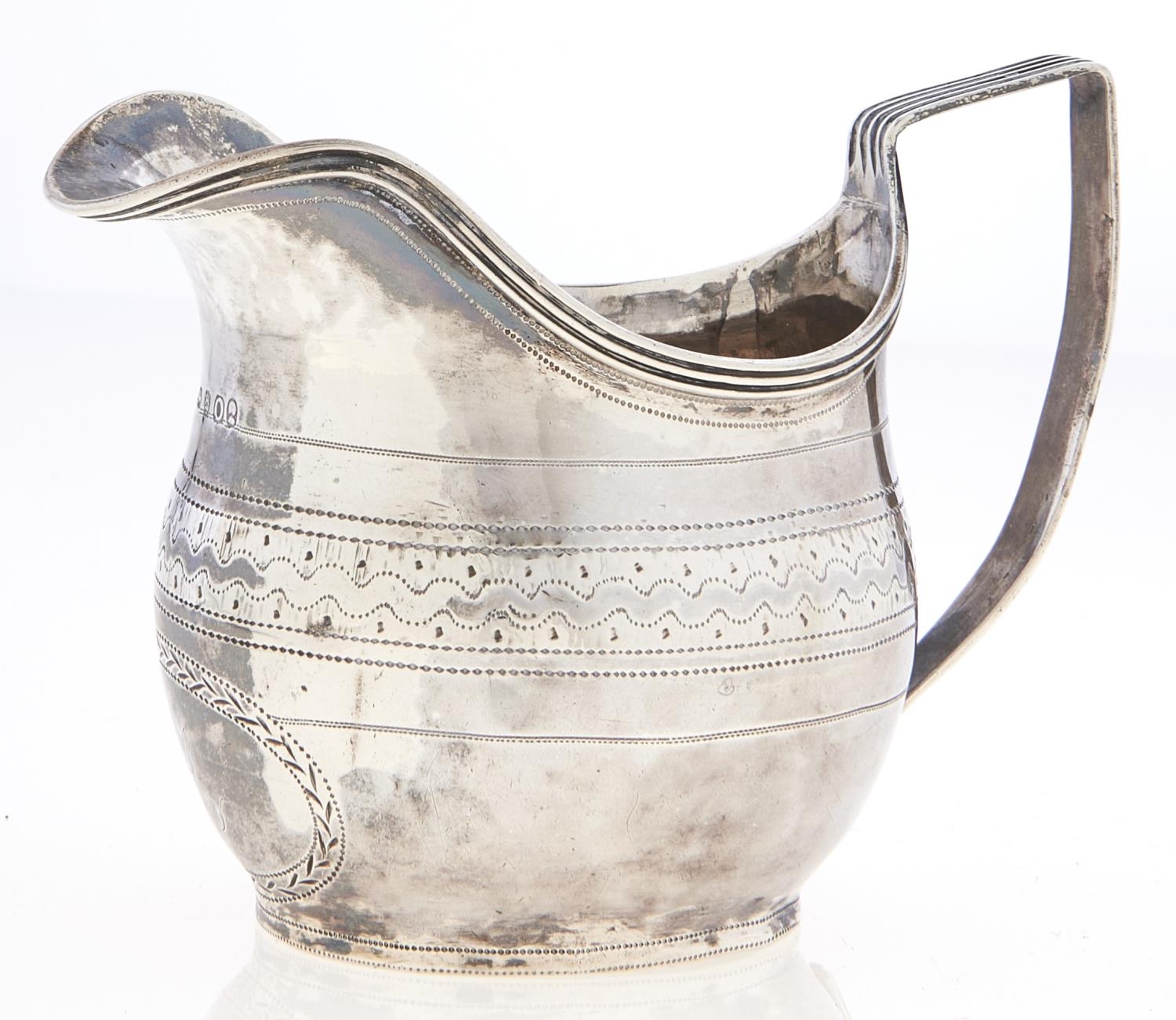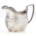 A George III silver cream jug, reeded handle and rim, initialled A, 85mm h, maker I M, probably John Merry, London 1809, 2ozs 14dwts