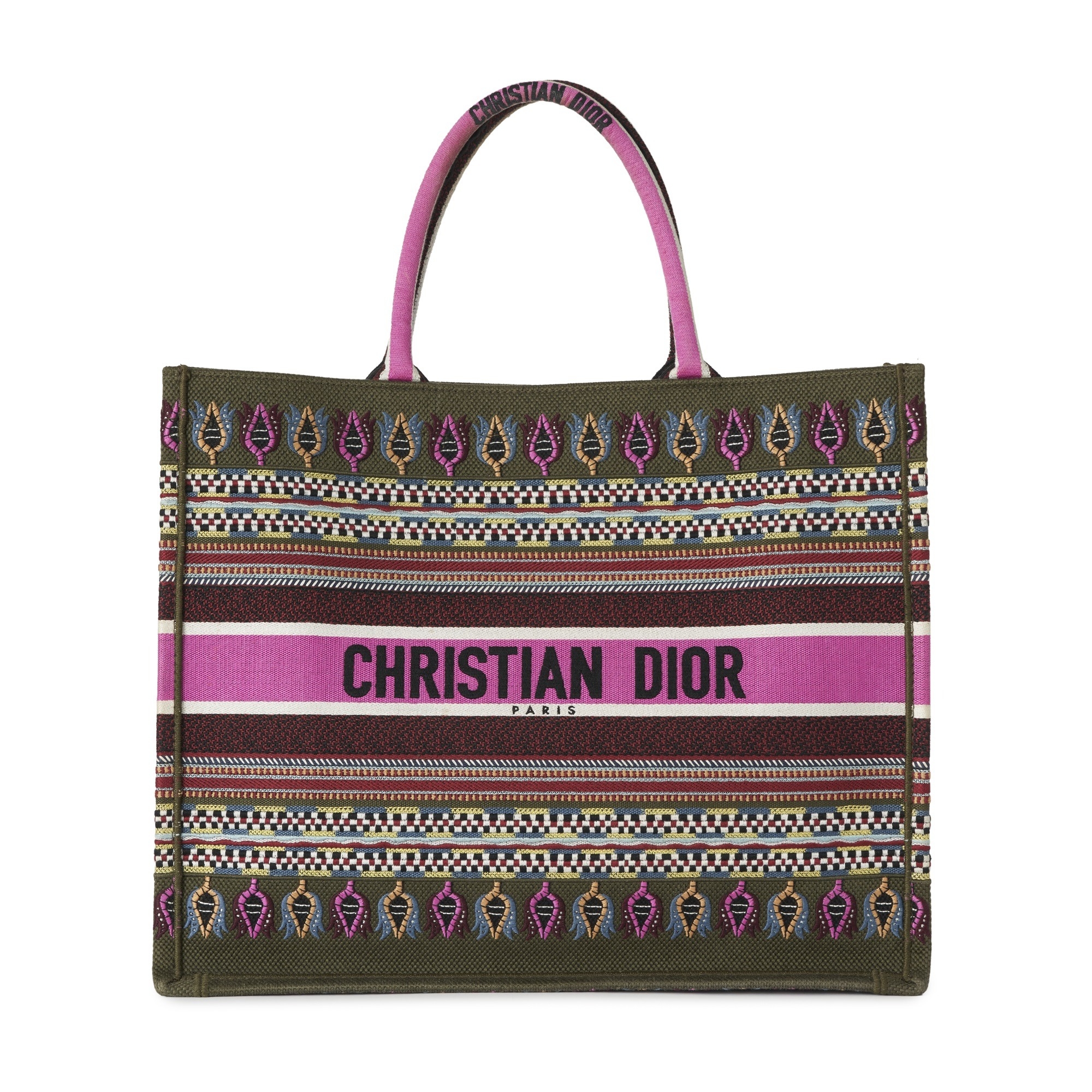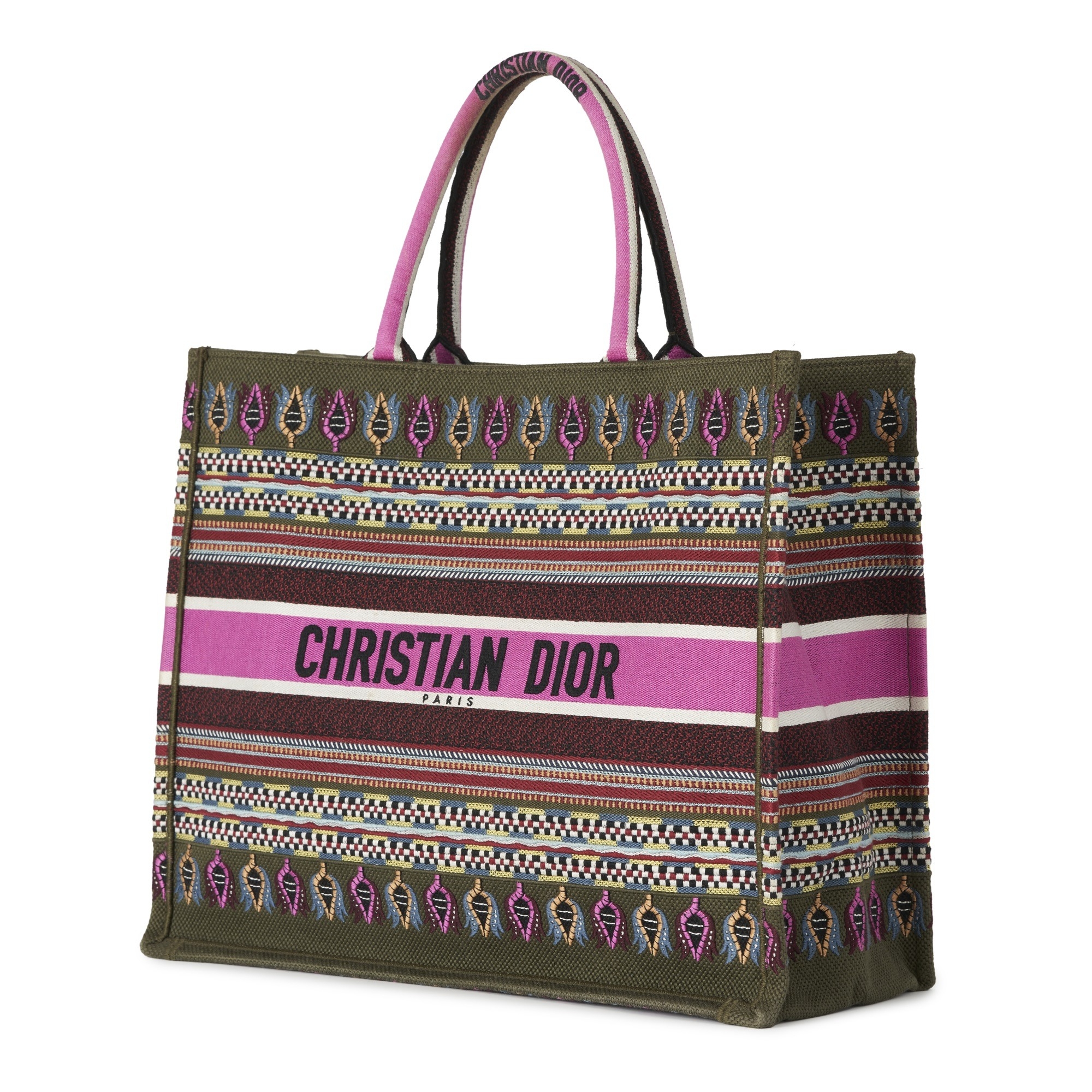 Christian Dior, a large Book Tote, crafted from embroidered multicoloured canvas, with rolled handles and an open top, measuring 18 by 34 by 42cm