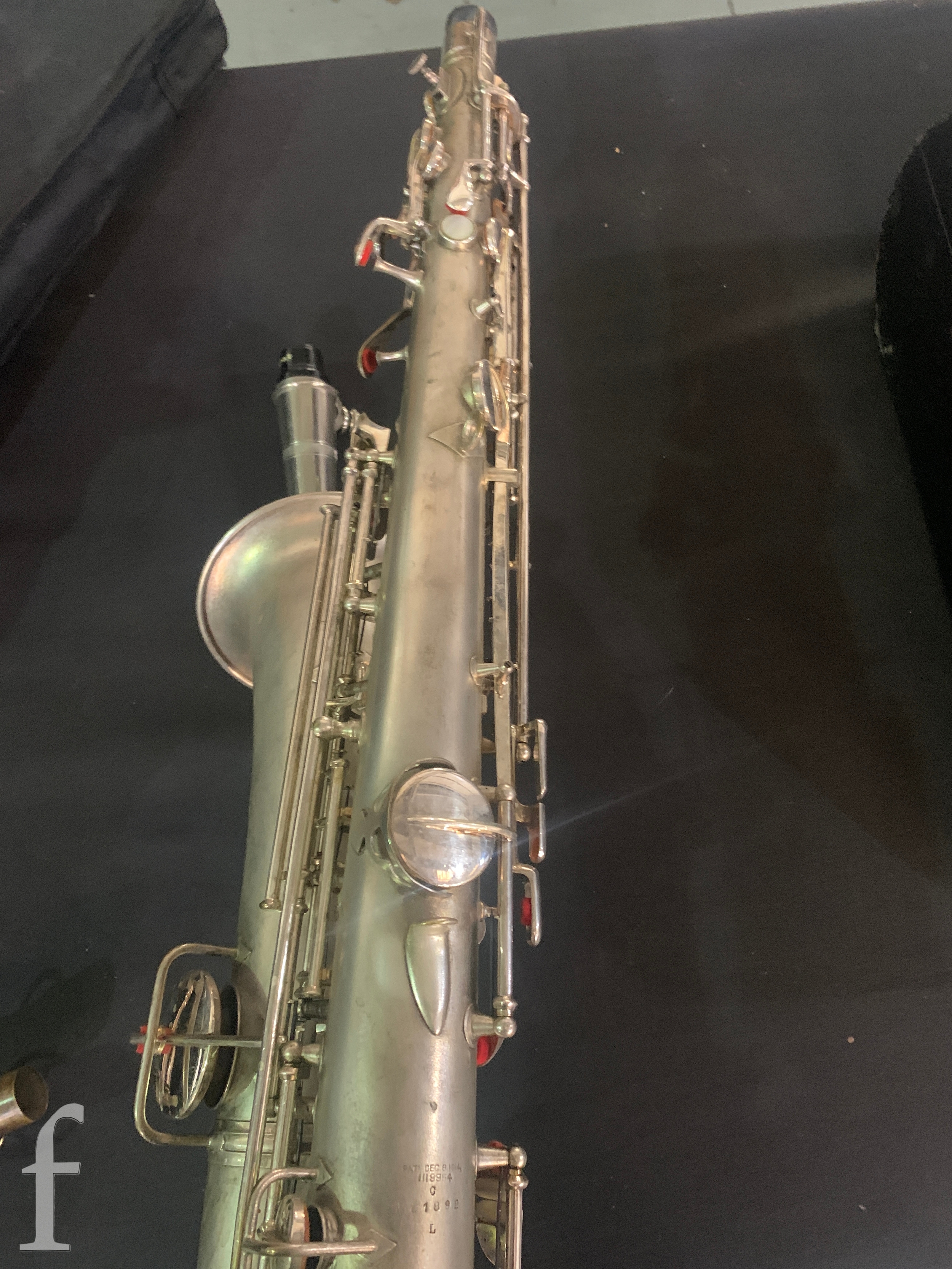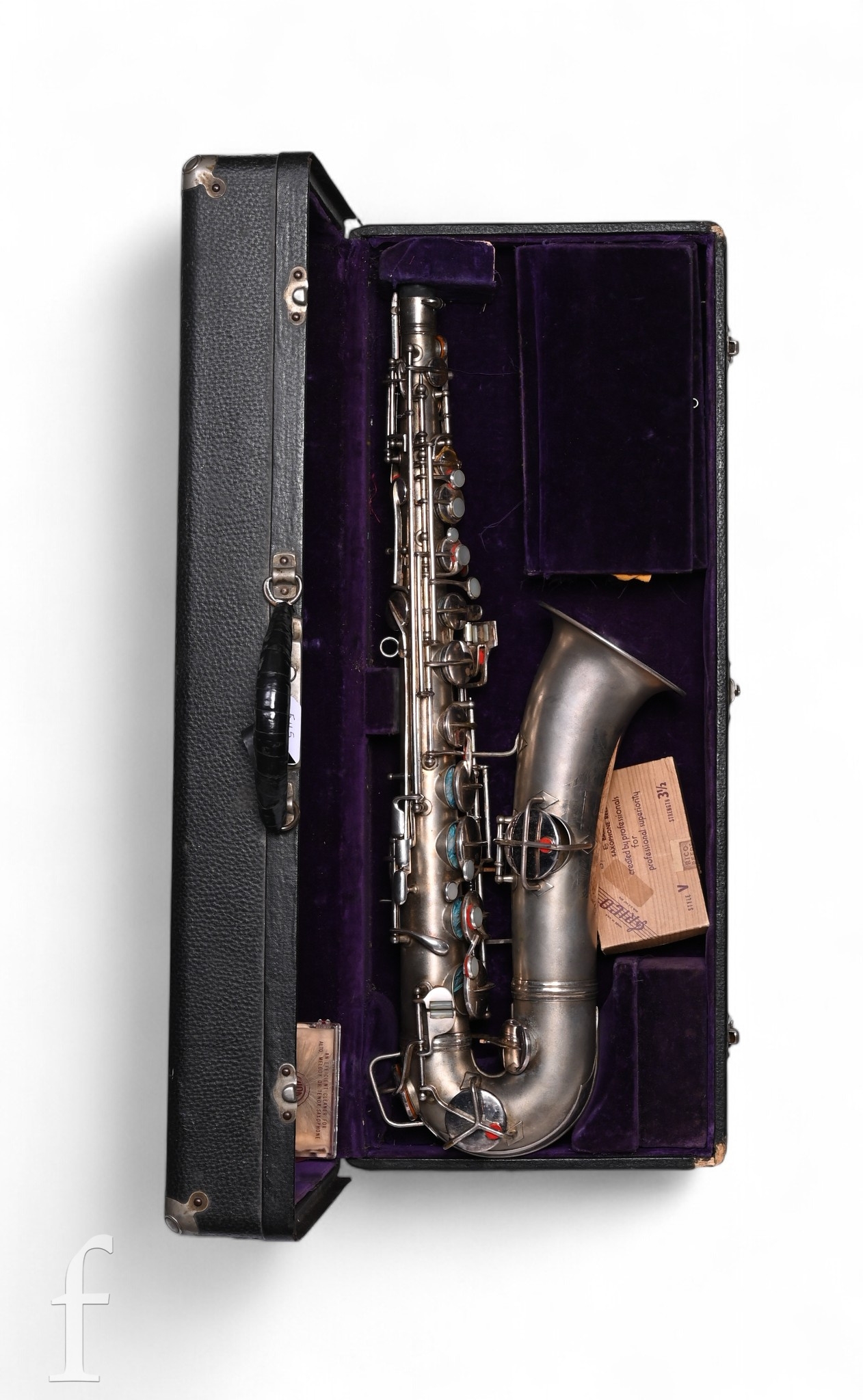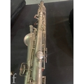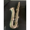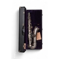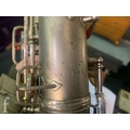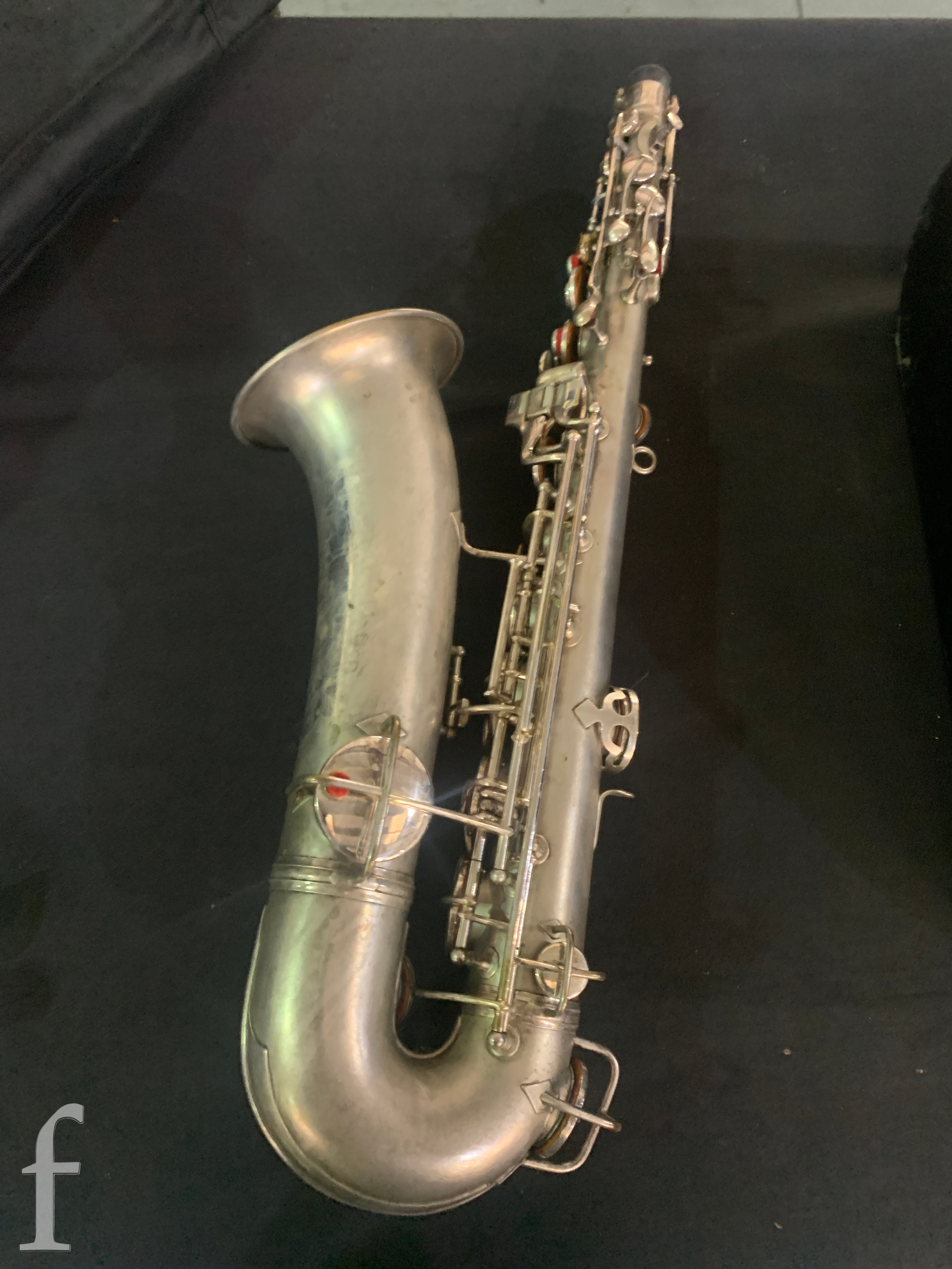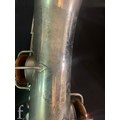 A 20th Century or earlier nickel plated saxophone No 111892, length 62cm, in fitted plush lined case.