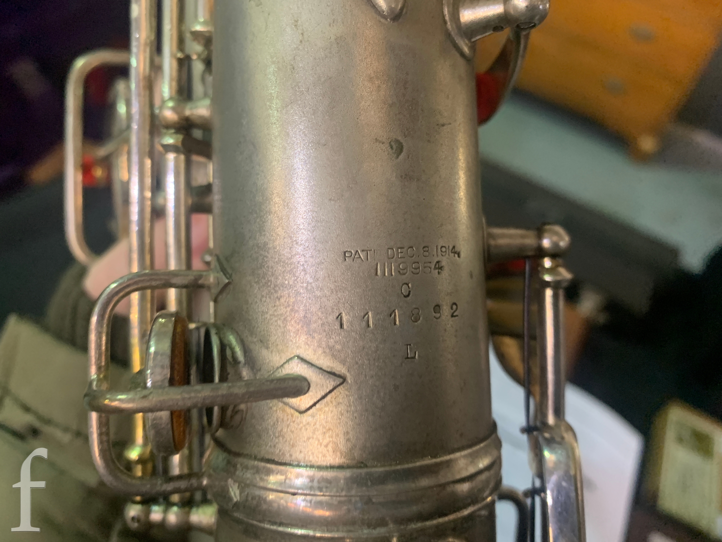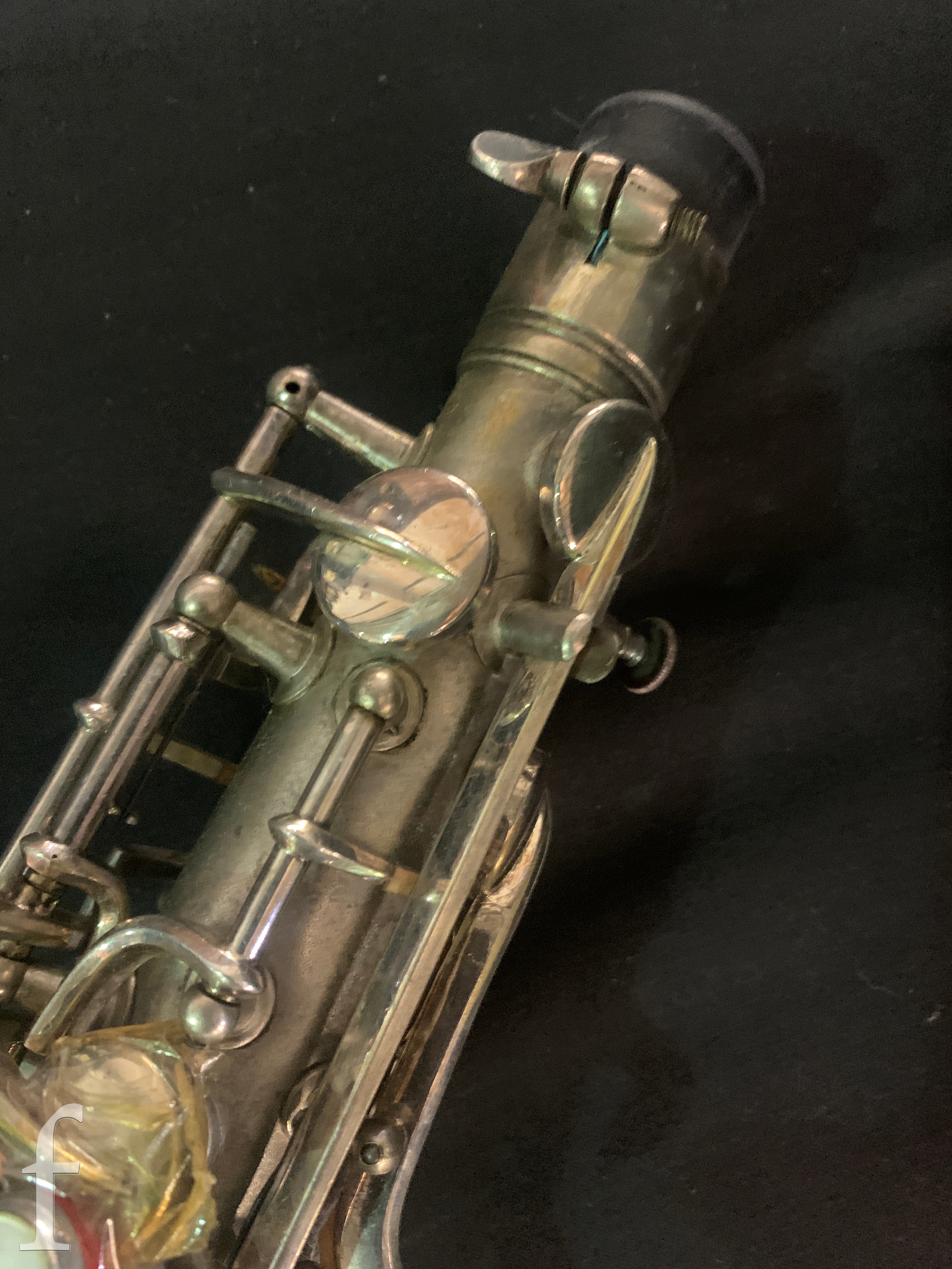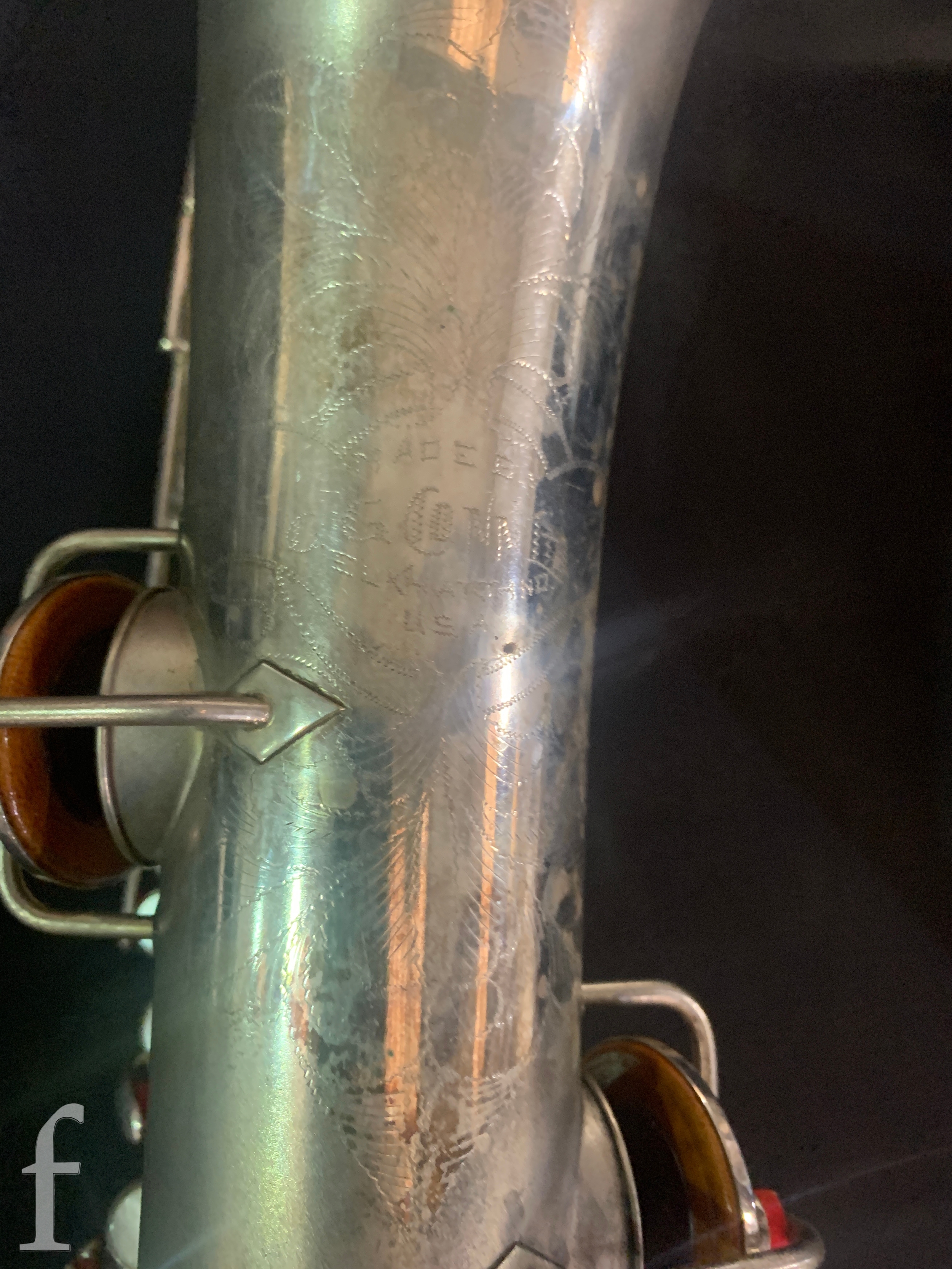 A 20th Century or earlier nickel plated saxophone No 111892, length 62cm, in fitted plush lined case.