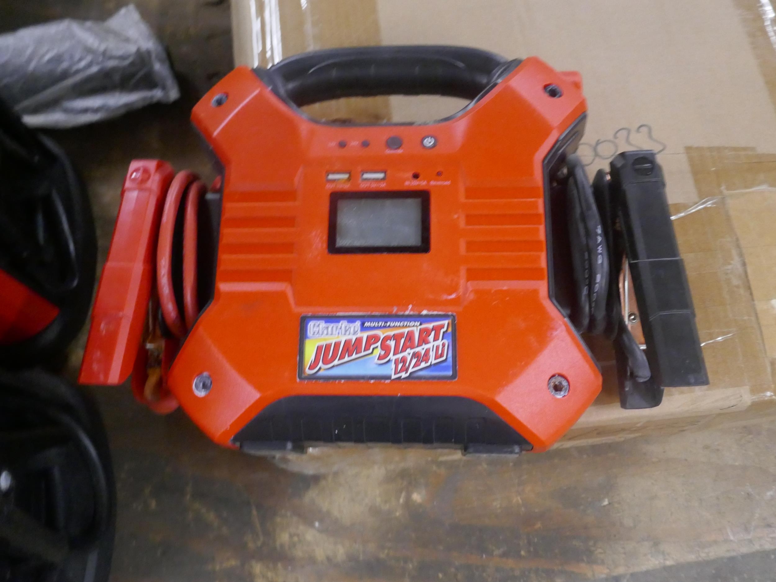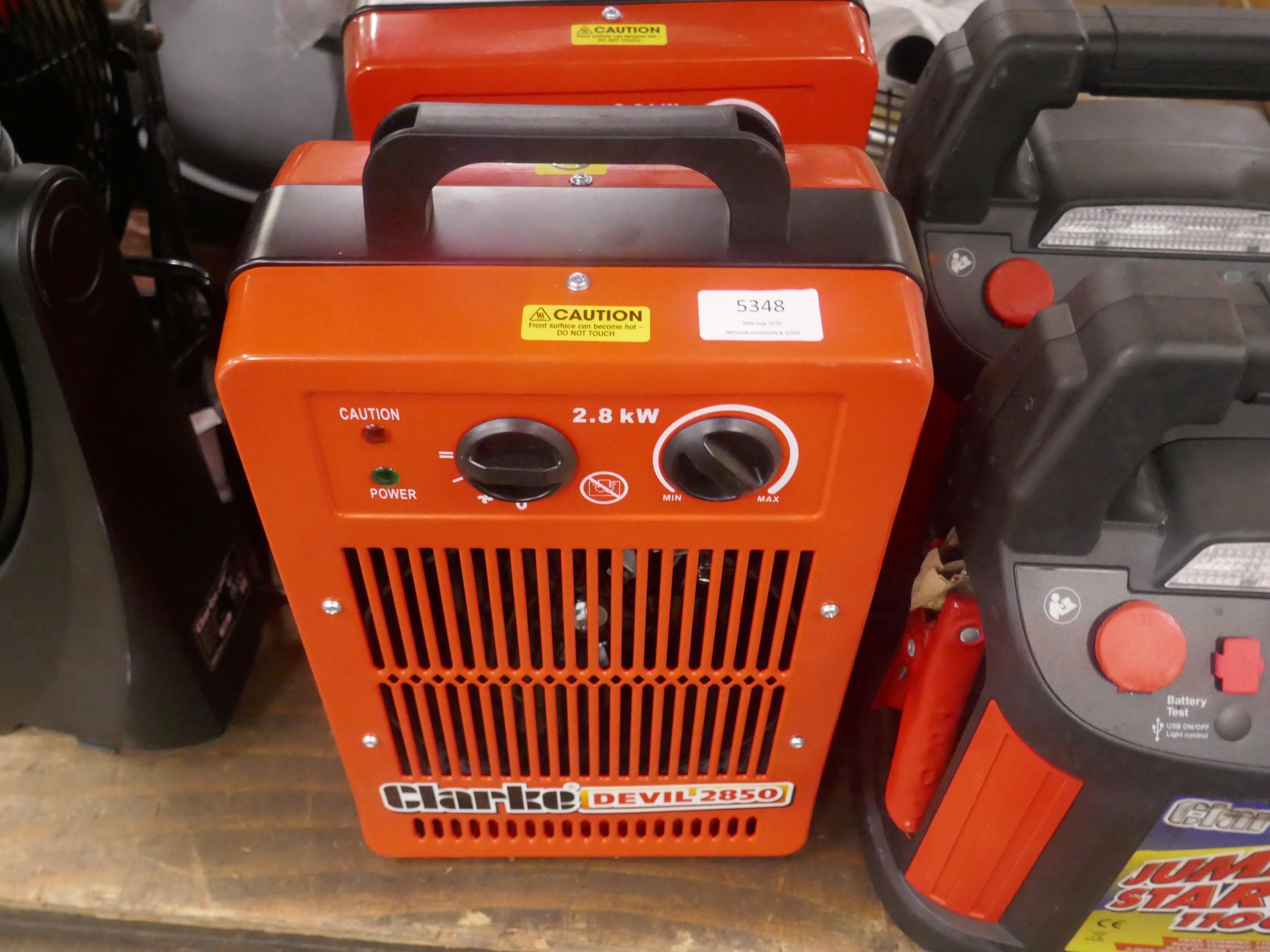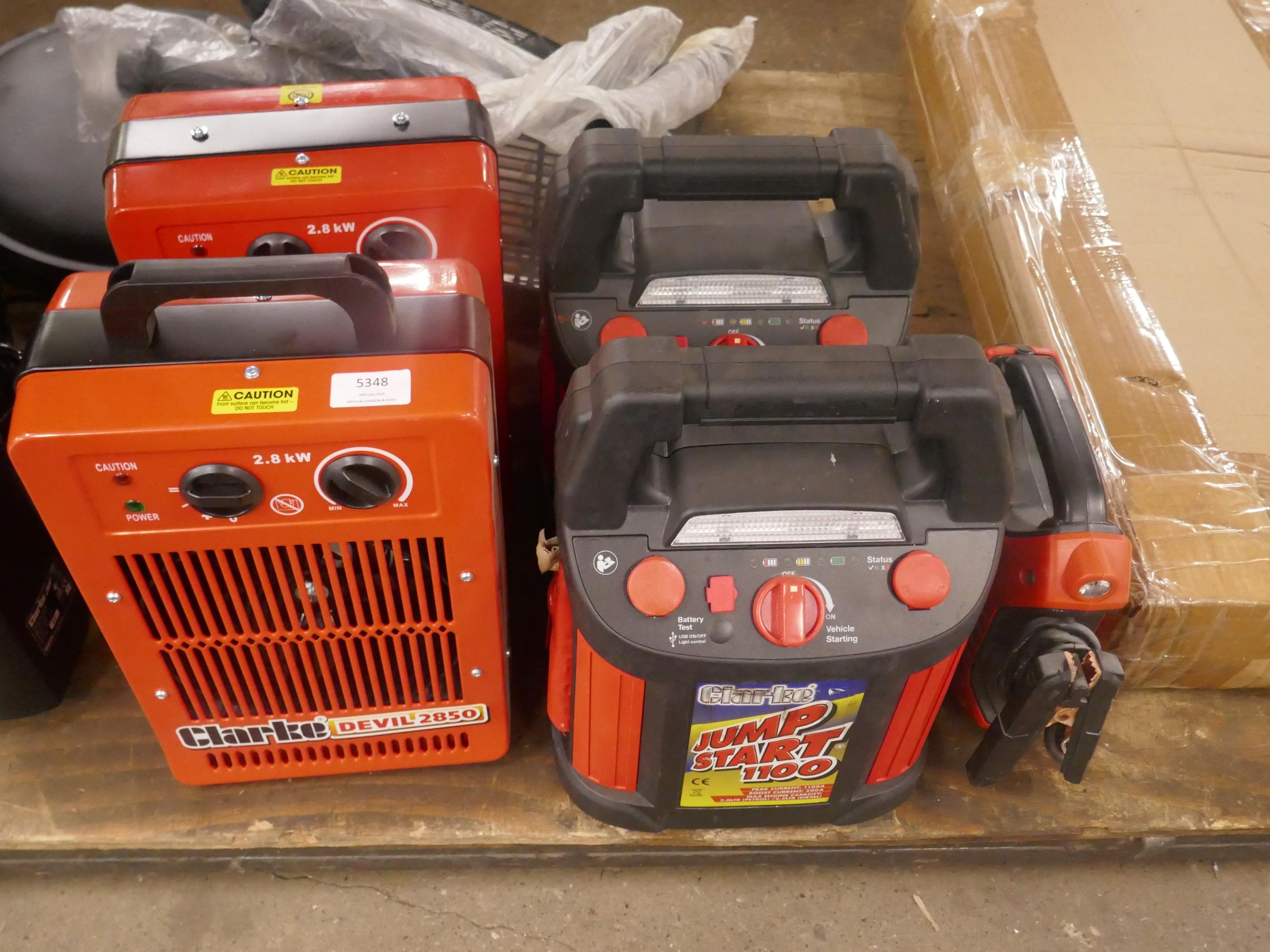 Two Clarke Devil 2850 2.8kW fan heaters, two Clarke jumpstart 1100 jump starters and a Clarke jumpstart 12/24 LI - SOLD AS SCRAP *This lot is subject to VAT