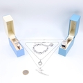Five Newbridge Silverware jewellery items including two bangle bracelets, an imitation pearl pendant and chain (40cm length), a further pendant and chain, along with a charm bracelet.