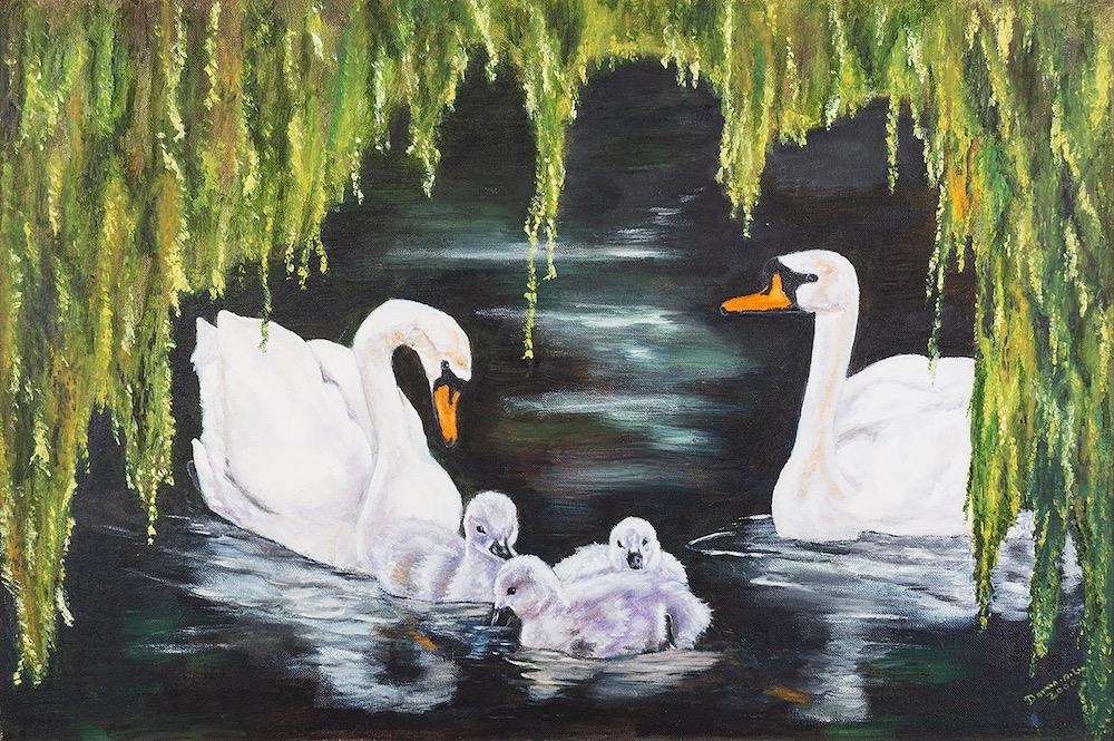 Doreen Lee (British, 20th Century) Swanning around in the Willow Oil on Canvas 59 x 50 cm Signed lower right