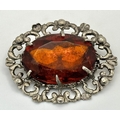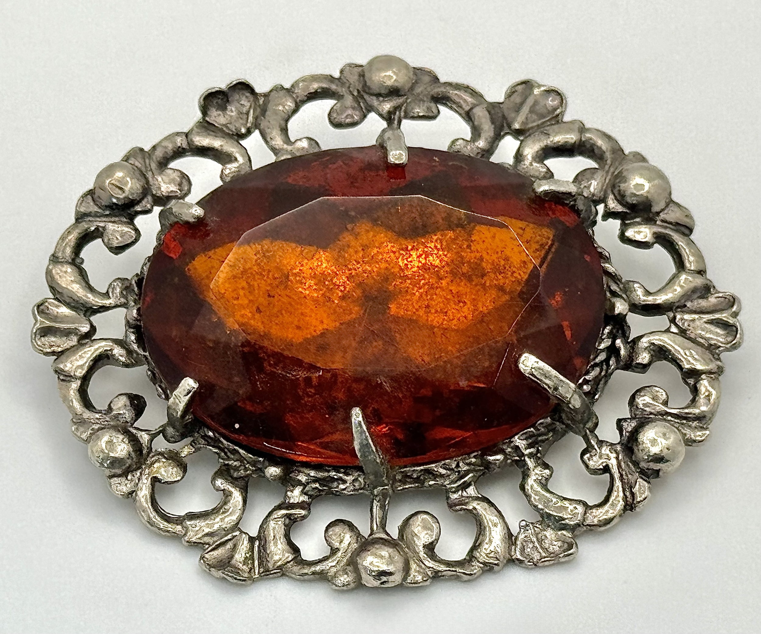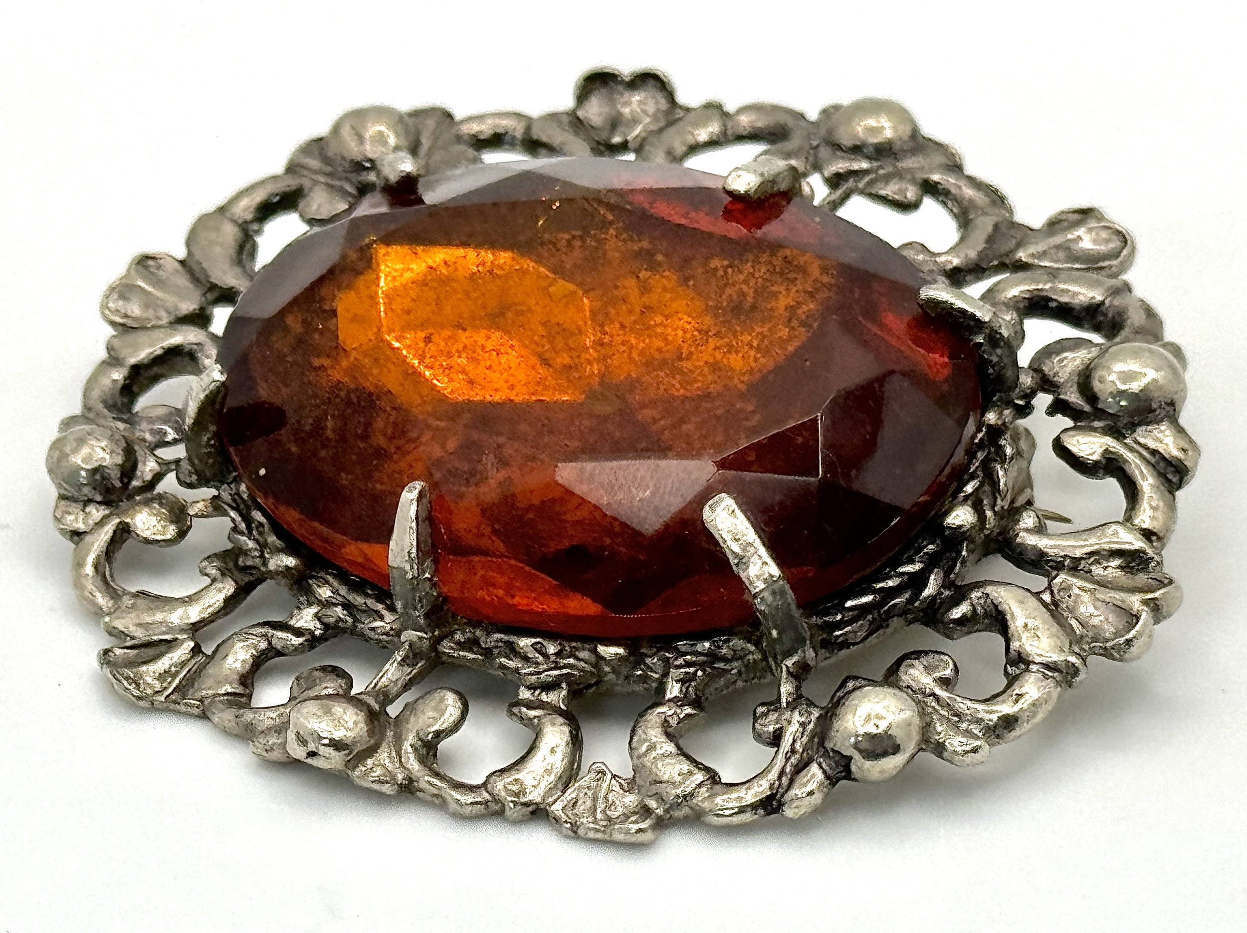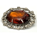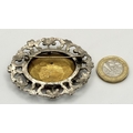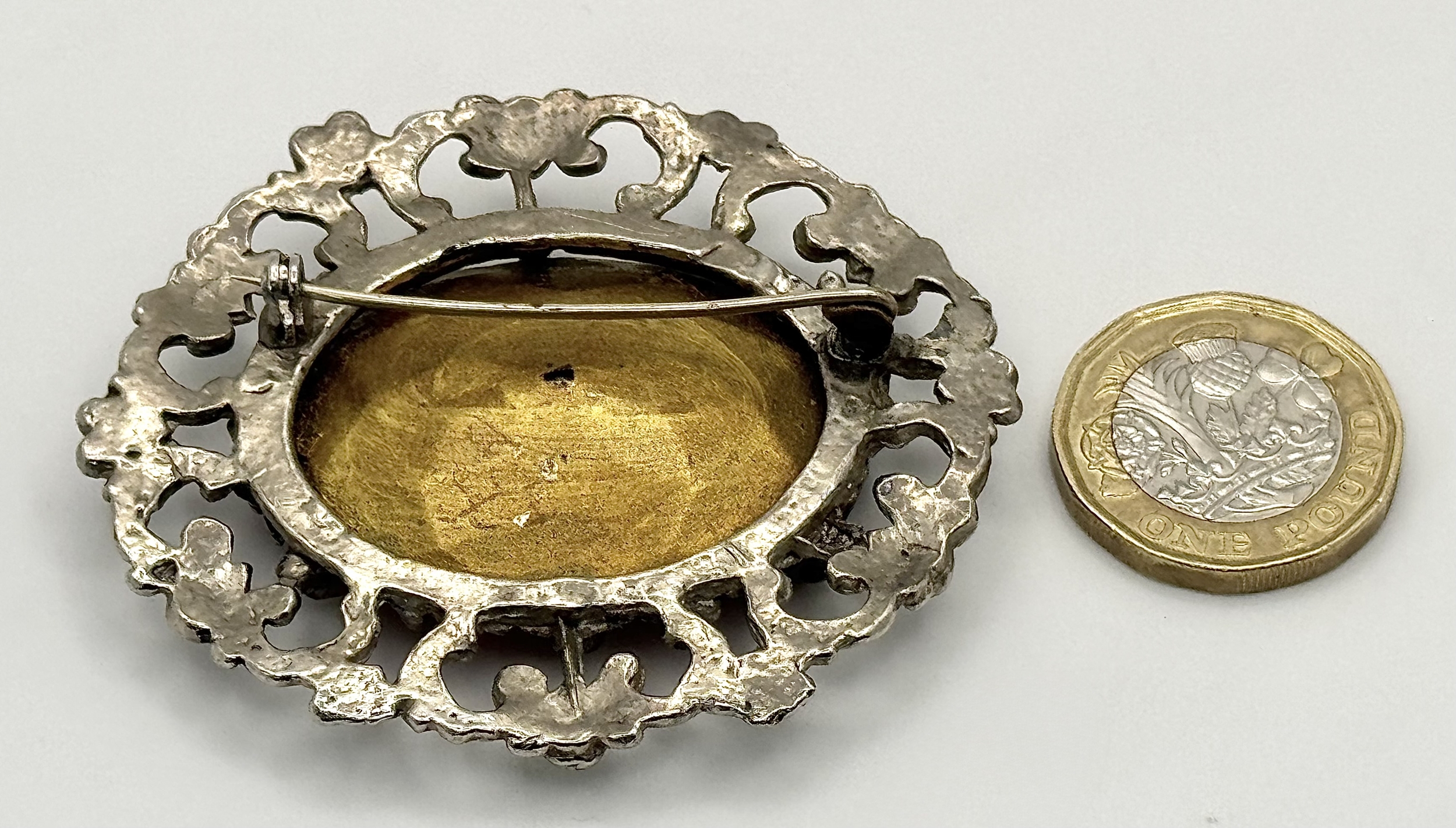 A vintage silver tone large oval brooch. Approx. 6cm x 5.5cm.