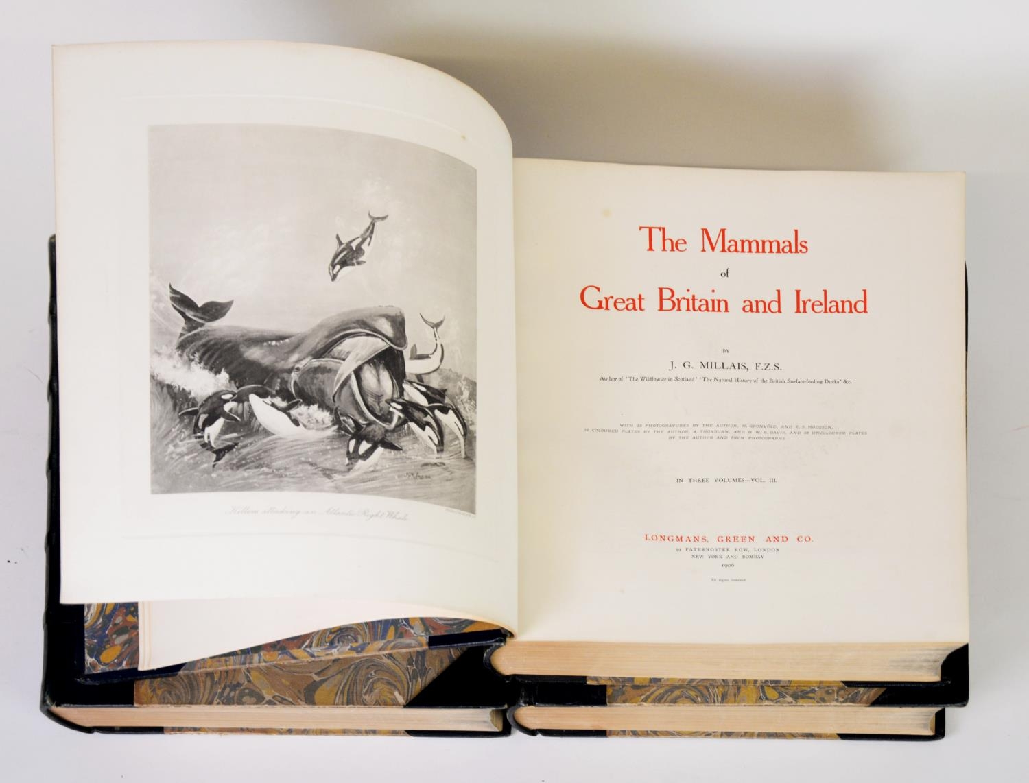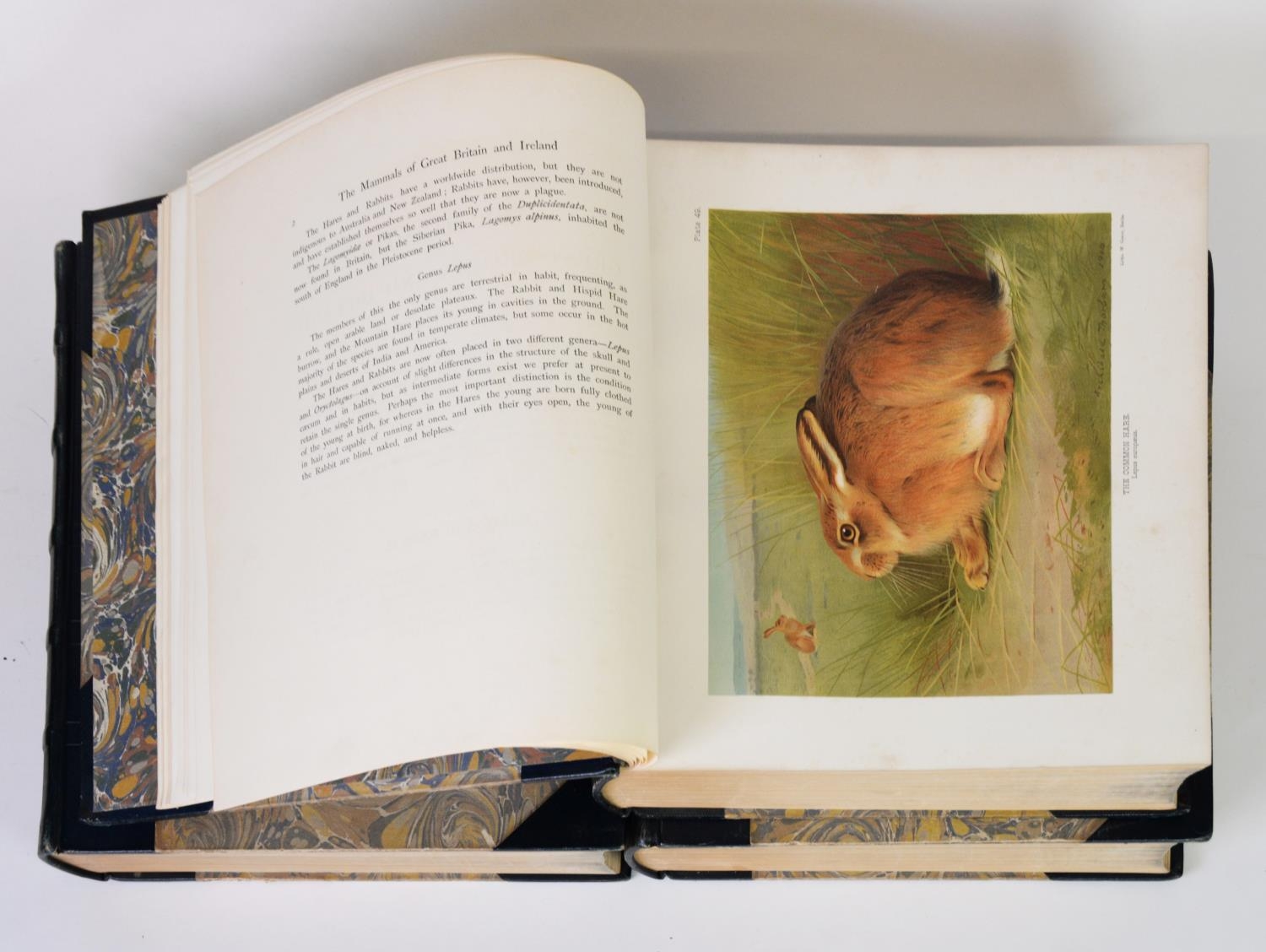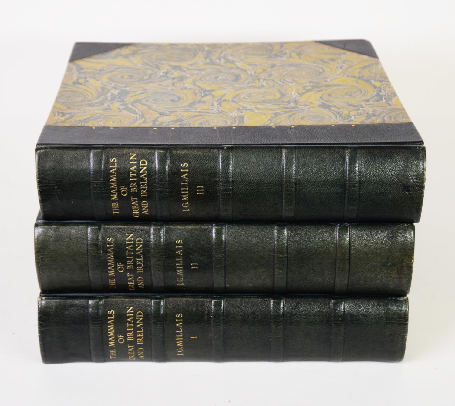 J G Millais - The Mammals of Great Britain and Ireland, 3 vol, pub Longmans Green & Co 1905, ltd ed 694/1025. Beautifully rebound in half leather, marbled boards, with matching endpapers
