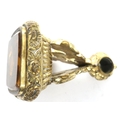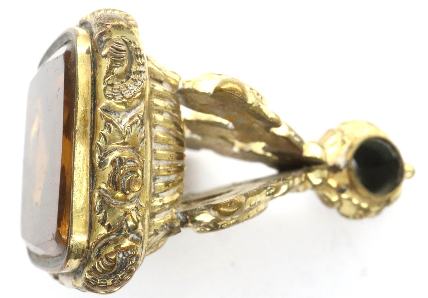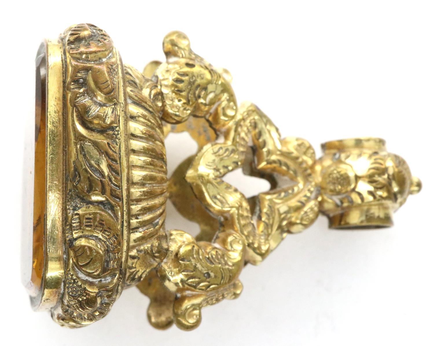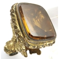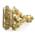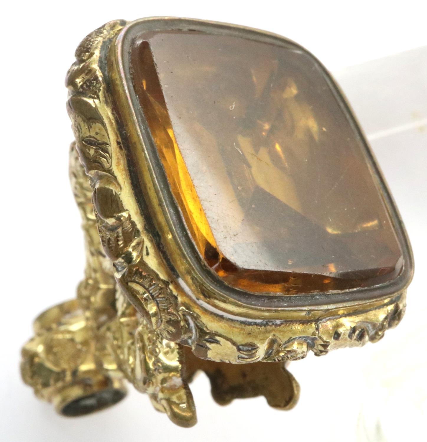 Gold plated heavy watch fob set with a large citrine, L: 40 mm. P&P Group 1 (£14+VAT for the first lot and £1+VAT for subsequent lots)