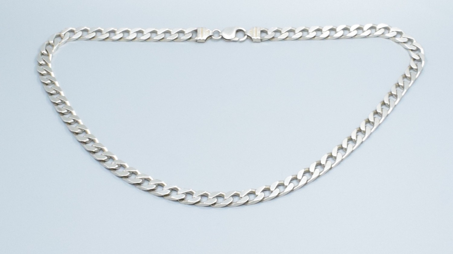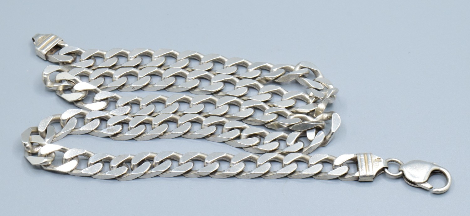 925 silver flat link neck chain with lobster claw catch 52cm long 8mm wide 65grams