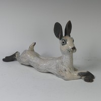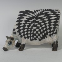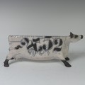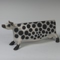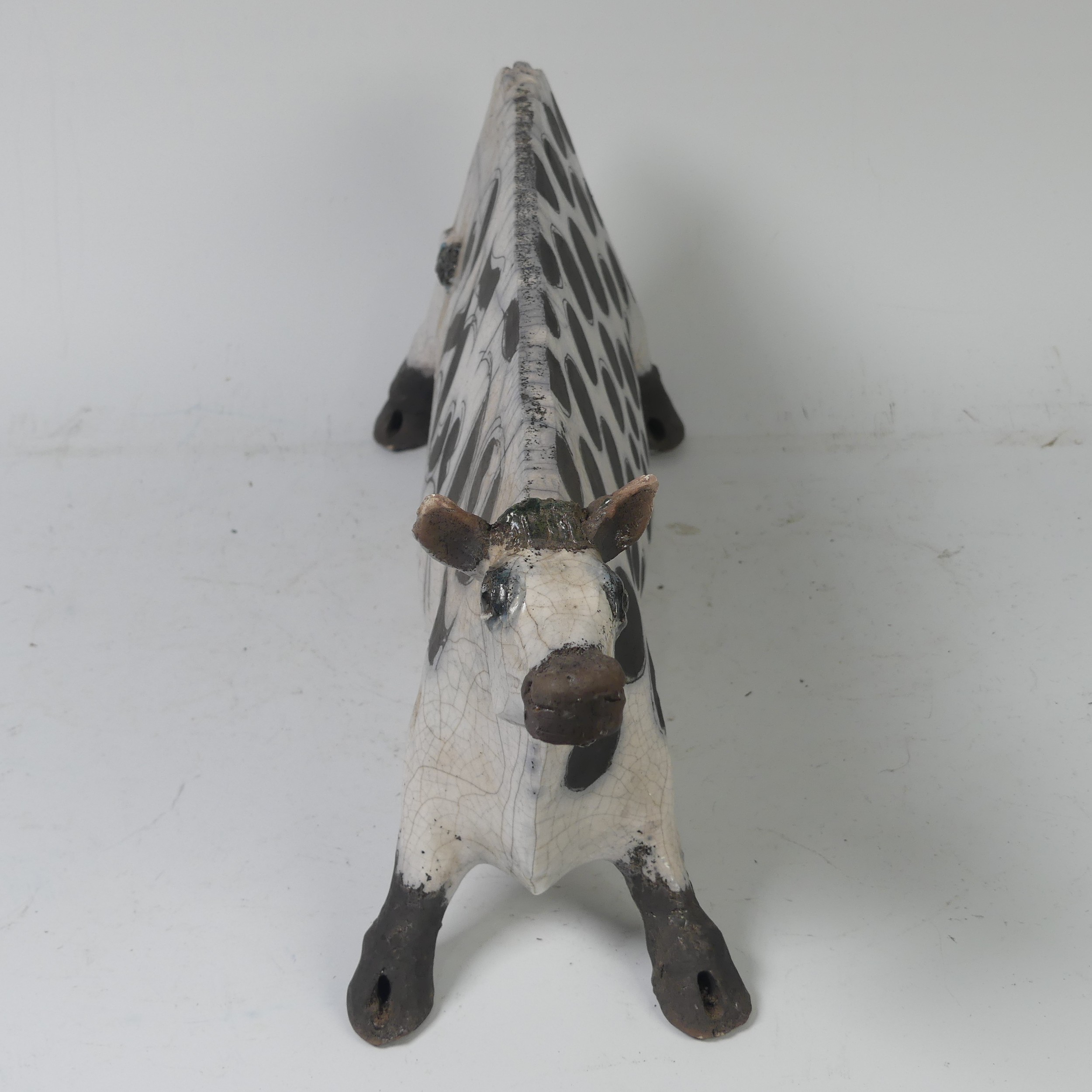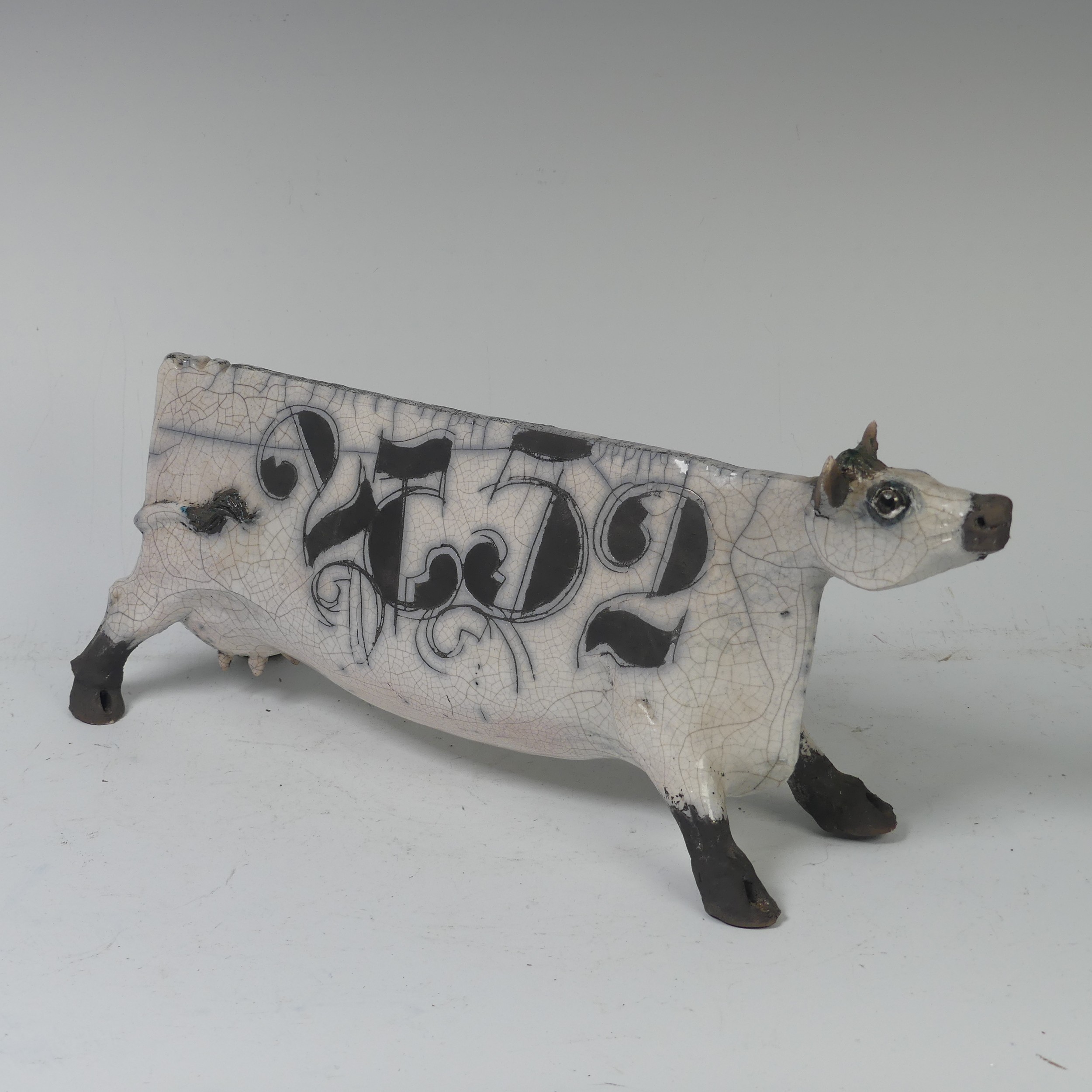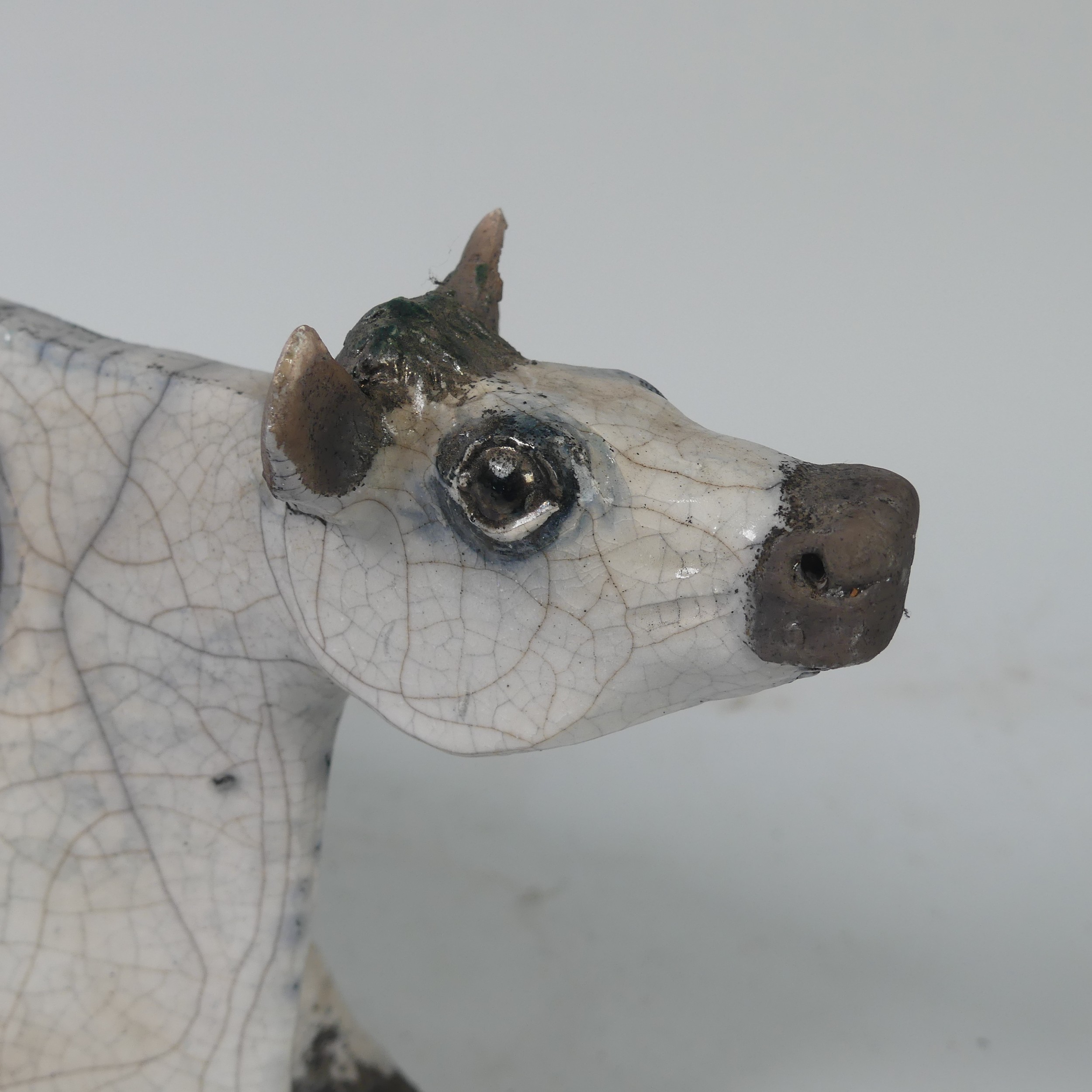 Lawson E. Rudge (b. 1936), a raku fired, studio pottery sculpture of a Cow, with crackle glaze, numbered ' 2552', 17cm high.