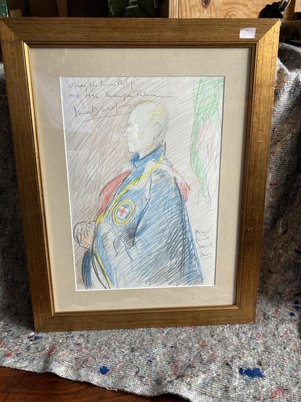 Norman Douglas Hutchinson (1932-2010): Mixed media on joined paper, pencil and pastel, Study for the Portrait of H.M. Queen Elizabeth, The Queen Mother and a Study for the Portrait of H.R.H. Prince Phillip Duke of Edinburgh, framed and glazed. 15½ins. x 9½ins. and 16ins. x 11½ins. (2)